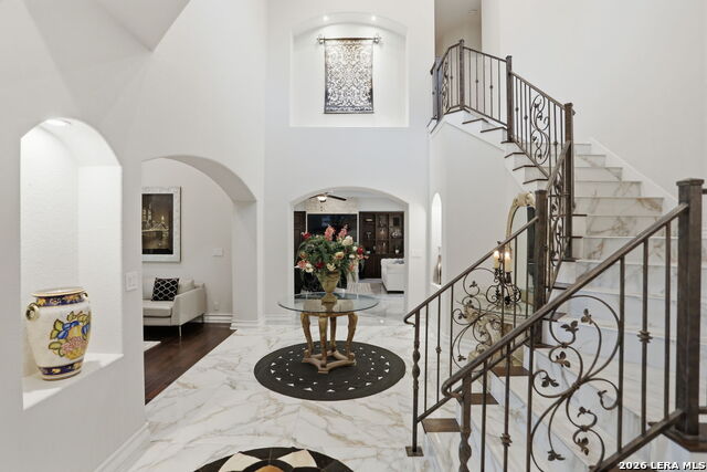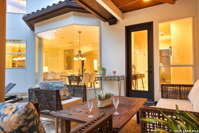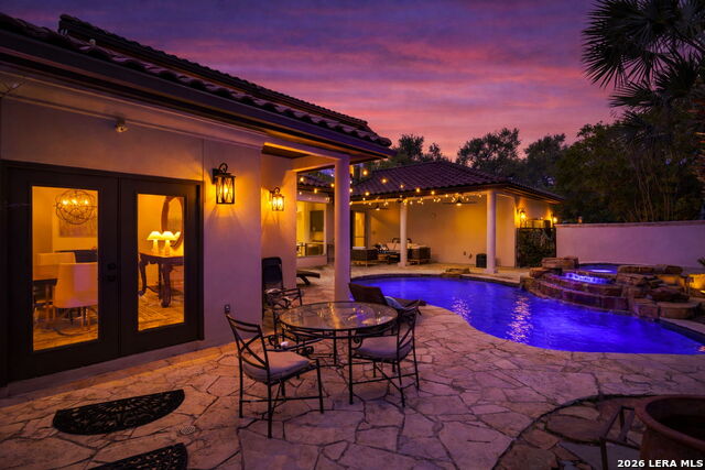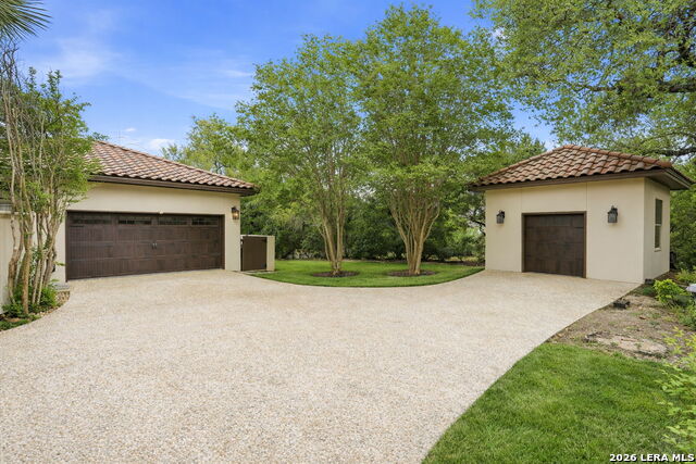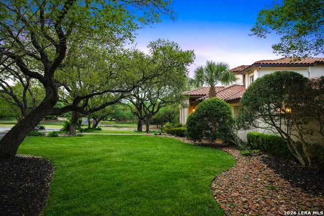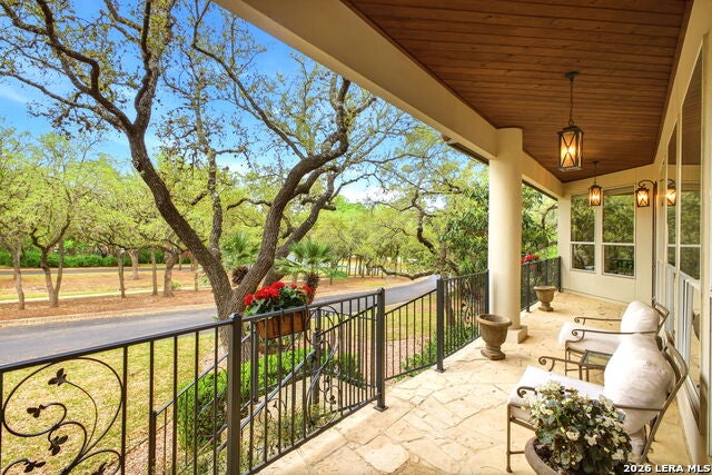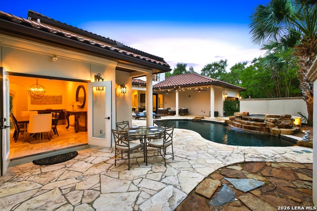 Welcome home to 1 Belcourt Place inside the Dominion! Enjoy over half an acre of mature trees and lush green space inside the highly sought after neighborhood. Host your friends at your pool equipped with the Outdoor projector and sound system entertainment package everyone will be talking about. Send your kiddos off to school with the bus route stopping right at your house. Walk out your front door and enjoy the holiday festivities on the greenbelt directly in front of your home. You even have your very own Golf Cart Garage! Seller has invested significantly in high-quality renovations throughout, including a fully updated chefs kitchen with quartz countertops, backsplash, farmhouse sink, premium faucet, new appliances, and induction cooktop with Sub-Zero refrigerator. Flooring and finishes have been upgraded across the home, creating a modern, move-in-ready luxury feel Home offers 4 bedrooms, 5 baths, Office, Three spacious living areas on the main level plus an additional upstairs living area, and a large formal dining room with direct access to the pool-perfect for large gatherings. The backyard is a private retreat with a stunning heated pool, spa, covered patio, and three palm trees-perfect for entertaining, Two balconies overlook a park, with walking access to scenic Dominion lakes and trails. Located in a highly desirable school zone. The spacious ground floor primary suite features a glamorous bathroom with dual vanities, dual closets, and a walk-through shower and soaking tub. Gorgeous hard wood flooring throughout the Master bedroom. The primary suite features a stunning wall of windows overlooking the serene park and mature trees, filling the space with natural light. Enjoy direct access to a spacious private balcony-perfect for morning coffee or unwinding in the evening surrounded by sunshine and the peaceful sounds of nature. The windows are enhanced with upgraded motorized shades, easily controlled at the touch of a button for added comfort and convenience. The breakfast area is highlighted by a dramatic wall of windows overlooking the private pool and palm trees, bringing in abundant natural light and a true indoor-outdoor living experience. This home is a rare find, ideally located directly across from a serene park, offering exceptional privacy with no homes immediately in front. The spacious main level features multiple living areas, creating an open and comfortable layout that feels both expansive and highly functional. A full bathroom with direct access from the pool area adds everyday convenience. The spacious main level features multiple living areas, creating an open and comfortable layout that feels both expansive and highly functional. This home is truly one of a kind!