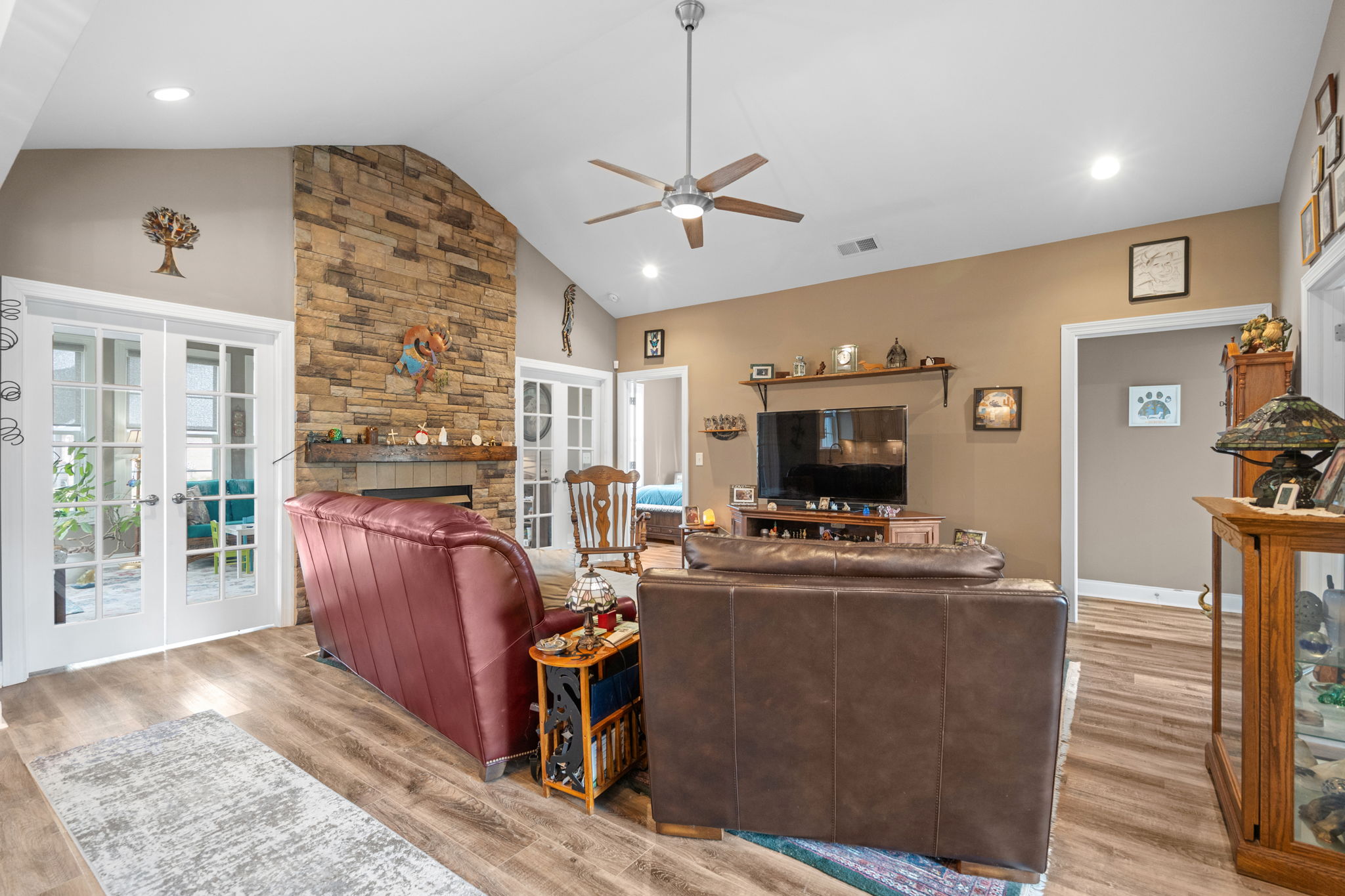 Turnkey and move-in ready! Welcome to this recently upgraded home offering the rare advantage of NO HOA. Step inside to discover a bright, open-concept layout highlighted by soaring vaulted ceilings, a cozy brick fireplace, beautiful earthy-toned interior paint, and beautiful wood flooring.