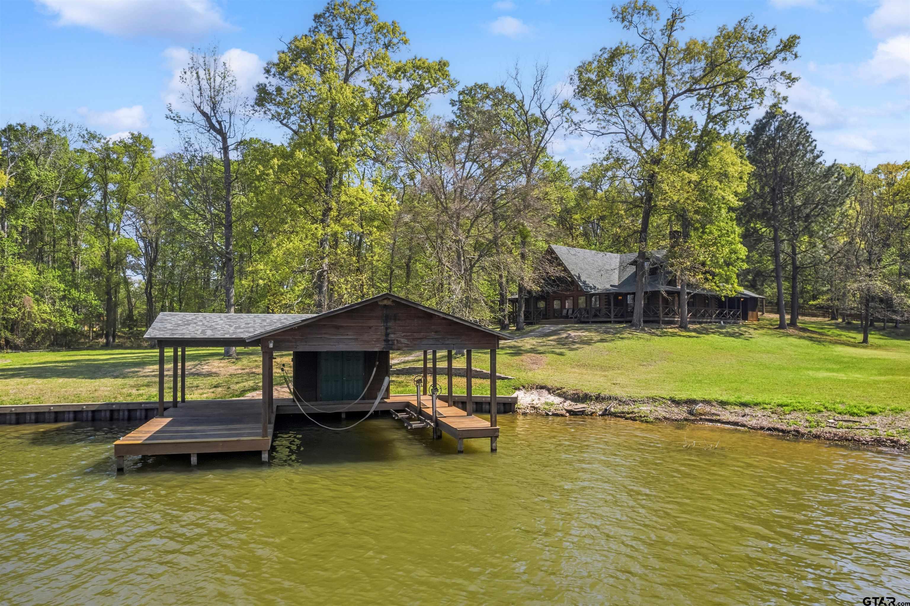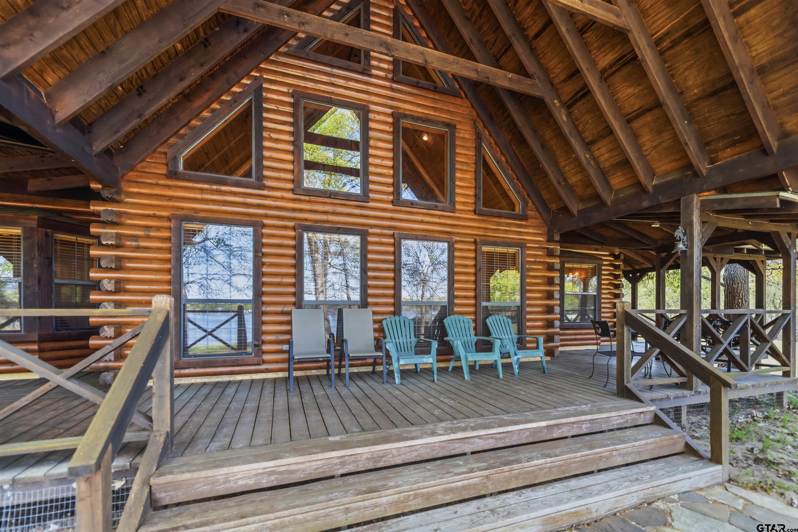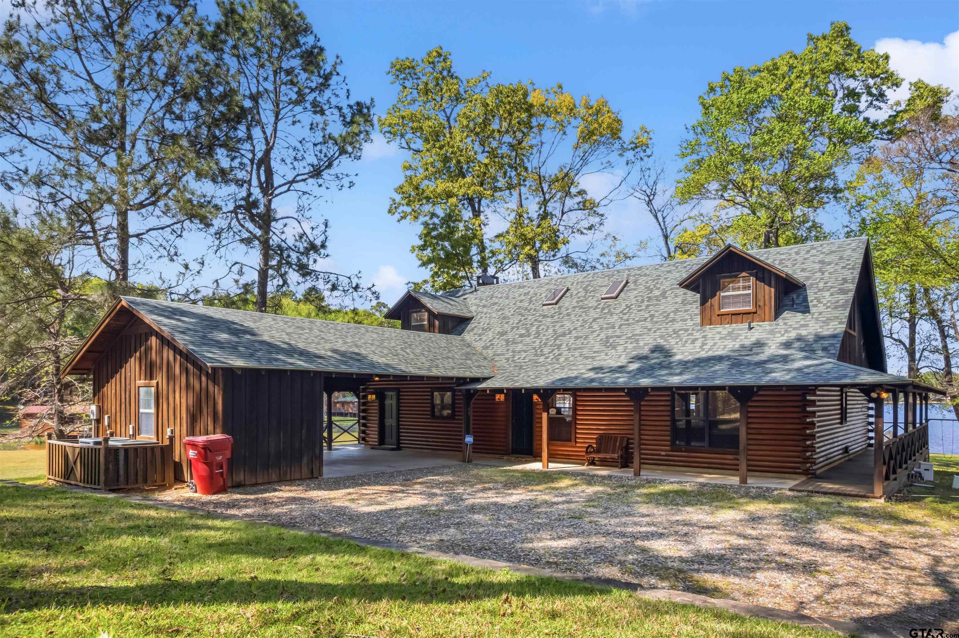 Welcome to your private, nearly three-acre haven nestled in the prestigious Panther Creek community on Lake Cypress Springs. This custom-built, full-scribe Satterwhite log home perfectly blends rustic elegance with modern luxury, all while offering an exceptional 550 feet (approx) of waterfront access on one of East Texass most desirable lakes. This 4 bedroom, 3.5 bath custom Log Home Design features hand-hewn logs, showcasing craftsmanship and providing a warm, inviting atmosphere. The interior is designed for comfort and entertaining; featuring a large open kitchen, a great room with a wall full of windows overlooking the lake, a large stone fireplace in a side nook, gorgeous natural stone flooring, and a back porch large enough to help you fully embrace the lake lifestyle with family and friends. Then when you need a little personal space, head upstairs to one of two split master bedroom en suites! Known for its pristine waters and family-friendly atmosphere, Lake Cypress Springs is the ideal location for boating, fishing, and enjoying the outdoors. And the Panther Creek subdivision, known for its beautiful homes, wooded serenity and quiet coves, is located directly across from the perfect neighbor -- hundreds of therapeudic wooded acres. Furthermore, its also located on the north side of the lake, which makes it more easily accessible. Situated on 4 lots, this property provides unmatched space so you have room for privacy, landscaping, and outdoor activities; truly a rare find on the lake. A place like this offers a unique opportunity to enjoy discovering the endless possibilities for customizing your perfect waterfront estate. Schedule your private showing today!