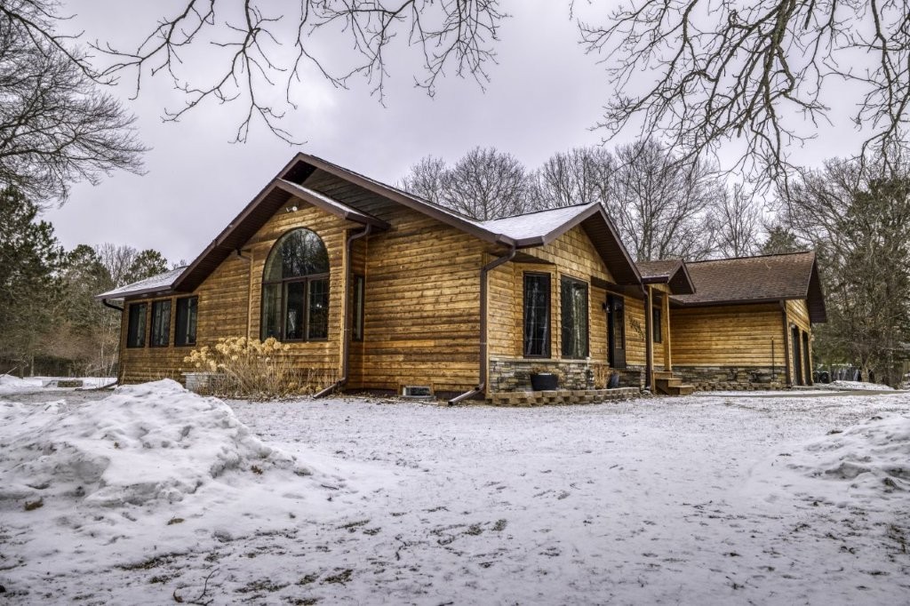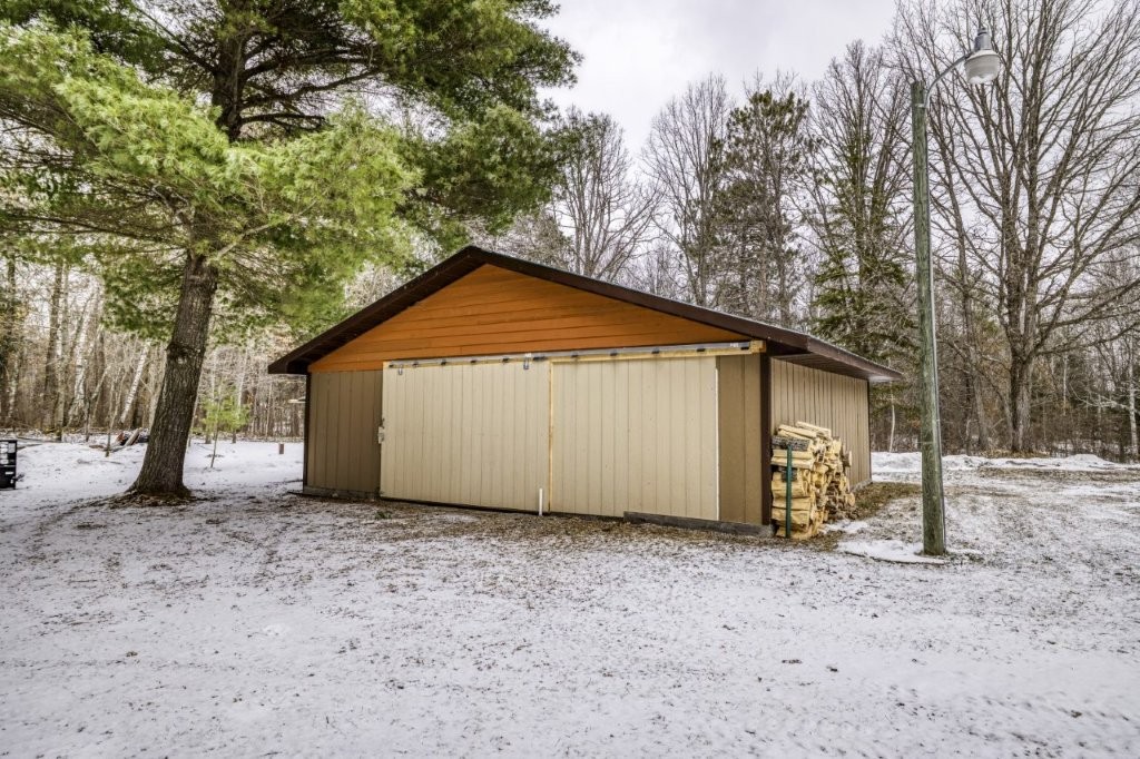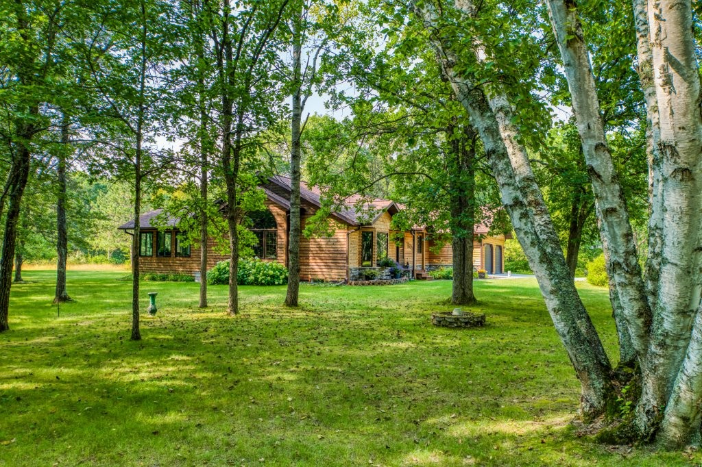 Situated on a beautiful one-acre lot, this property perfectly balances everyday comfort with unparalleled space for hobbies, storage, and more. From the moment you pull onto the sweeping wrap-around driveway, you’ll be struck by the home’s striking curb appeal and professional landscaping.Inside, the home offers a bright, open layout designed for easy living. The main level features a gourmet kitchen with an eat-in breakfast nook, a formal dining room, and a stunning living room anchored by a cozy fireplace and vaulted ceilings that flood the space with natural light. Enjoy the convenience of true single-story living with the primary suite and two additional generous bedrooms all located on the main floor.The walkout basement is an entertainer’s dream. Guests can relax at the built-in bar or spread out in the spacious second living room. This level also includes a private fourth bedroom and a third full bathroom, making it the perfect setup for a guest wing or multi-generational living.For the hobbyist or car enthusiast, the garage space is a true wow factor. In addition to the attached garage, the property boasts two oversized three-bay detached garages (30x50 each!) including an extra-high door specifically designed for boat or RV storage. Whether you’re managing a car collection, a massive workshop, or outdoor toys, the possibilities here are endless.Spend your mornings sipping coffee on the front porch, afternoons BBQing on the back deck overlooking the courtyard, or evenings enjoying the quiet nature of the wooded rear lot. This one-of-a-kind retreat is move-in ready and sure to impress!