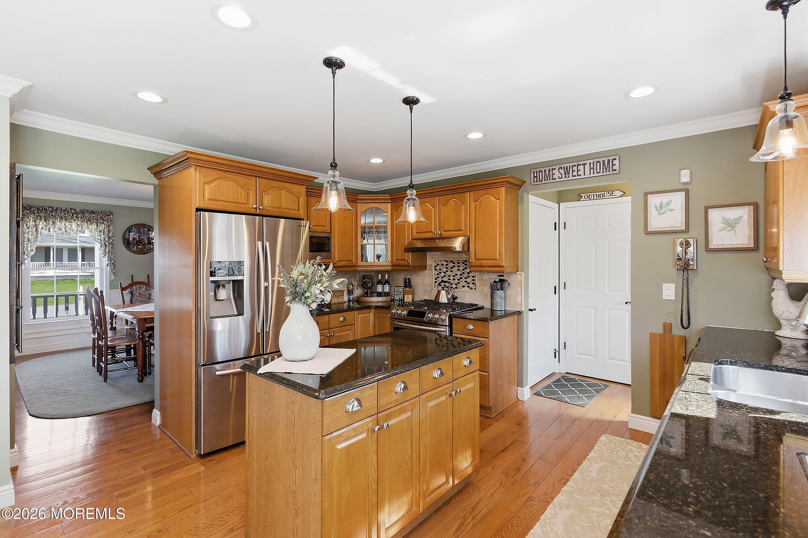 Step into the ultimate in style with this striking, meticulously maintained 2015 ranch. Upon entering, you are immediately welcomed into a spacious open-concept design that flows perfectly for modern living. The custom kitchen is perfect for entertaining, featuring a large island, two-toned cabinetry, and a pantry for effortless hosting.