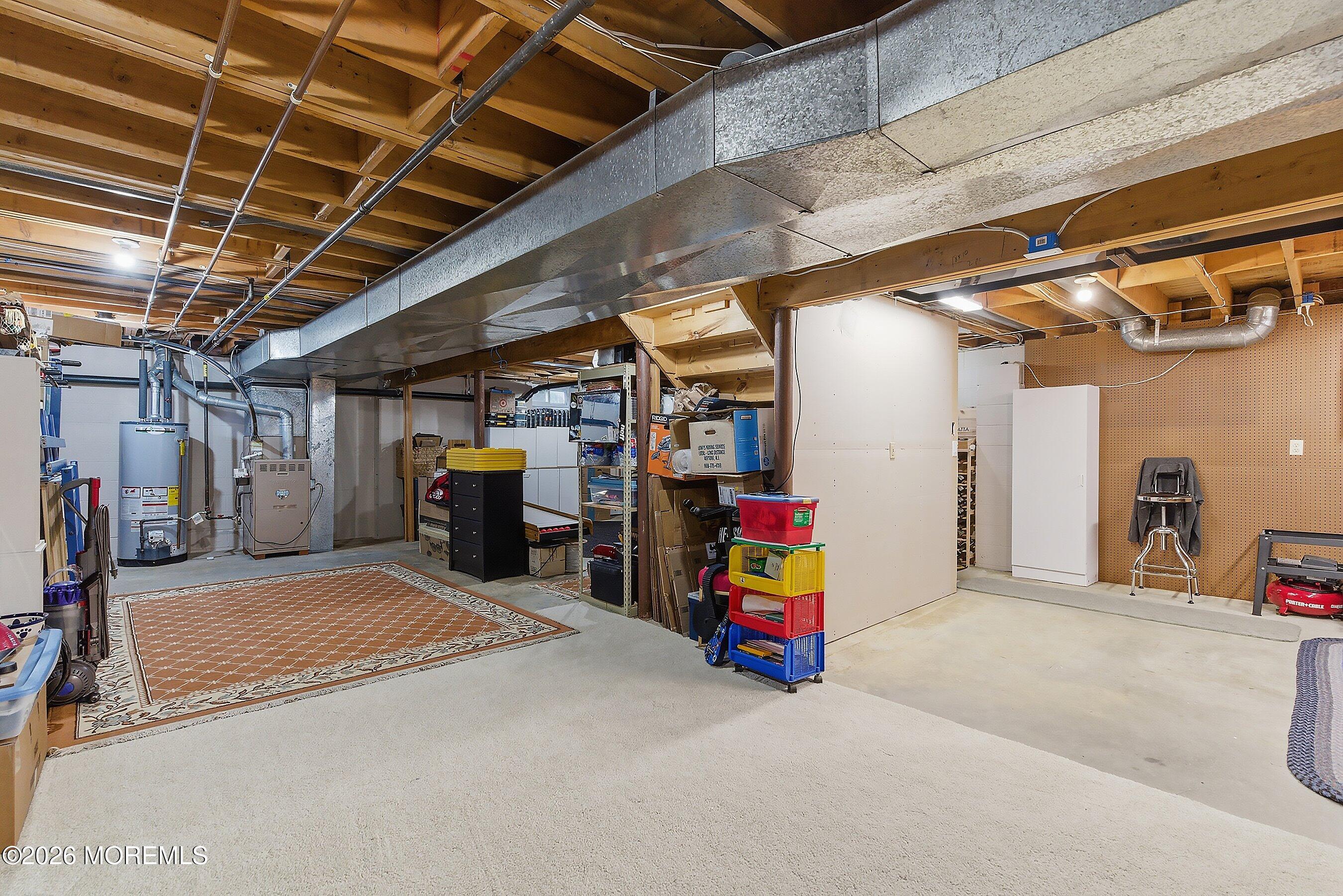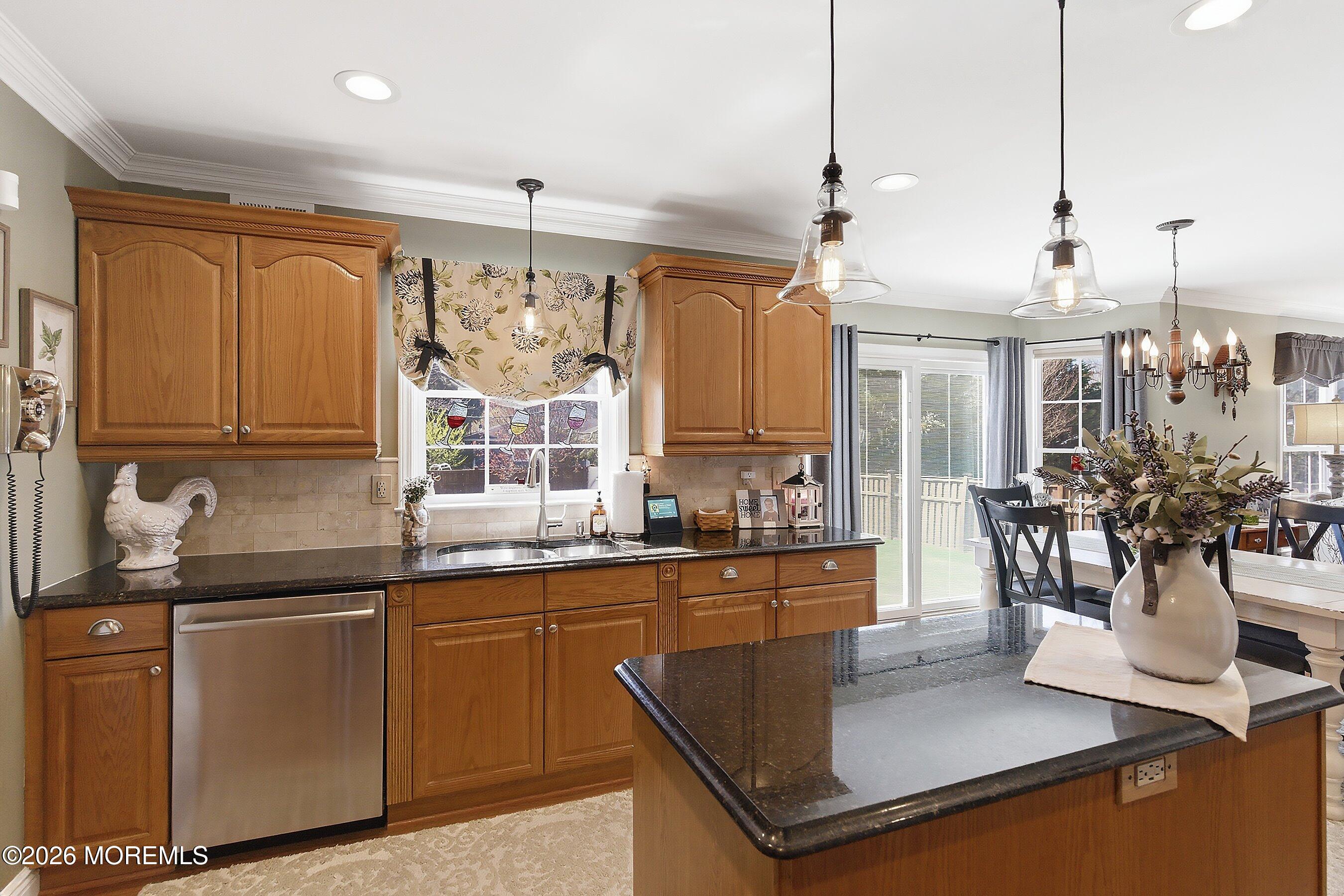 Step into the ultimate in style with this striking, meticulously maintained 2015 ranch. Upon entering, you are immediately welcomed into a spacious open-concept design that flows perfectly for modern living. The custom kitchen is perfect for entertaining, featuring a large island, two-toned cabinetry, and a pantry for effortless hosting. The primary suite offers a 10' tray ceiling and dual-sink bath, while spacious bedrooms and oversized closets provide exceptional storage. The finished lower level offers fantastic space for recreation complete with a wet bar, a versatile den or home office, and a large dedicated storage area for all your extras. Located just steps from a park and minutes from shopping, this home includes a 3.5-car garage and a manicured yard with a composite deck.