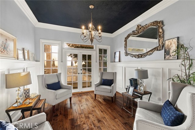 Completely reimagined and meticulously remodeled, this exceptional residence in the highly sought-after Rancho Cielo community of Trabuco Canyon blends luxury, comfort, and modern efficiency. Featuring 5 bedrooms, 3.5 bathrooms, approximately 3,728 square feet, plus a large bonus room and a private library/retreat off the primary suite, this home is designed for both everyday living and entertaining.A custom solid wood front door welcomes you into a beautifully upgraded interior with hardwood flooring, wainscoting, crown molding, plantation shutters, and a striking wrought iron staircase. The chef's kitchen showcases custom double-stacked alder cabinetry, granite countertops, a large center island, Sub-Zero refrigerator/freezer, Bosch dishwasher, six-burner gas cooktop, double ovens with warming drawer, Shaw's fireclay farmhouse sink, under-cabinet lighting, and a butler's pantry. An extended slider creates seamless indoor-outdoor flow.Modern upgrades include solar, new HVAC and ducting, dual-pane windows, NEST climate control, Simply Safe security, built-in speakers, recessed lighting, and ceiling fans throughout. The primary suite offers a fireplace, spa-inspired bath with dual-head shower, and a private balcony with glass panels to capture sweeping views. Additional fireplaces in the dining and family rooms add warmth and charm.The backyard is a true retreat with a custom-tiled pool, paver decking, built-in BBQ island, and covered patio with shiplap ceiling, lighting, fans, outdoor TV, and drop-down shades. Professionally landscaped with synthetic turf, olive tree, lighting, glass fencing, and smart irrigation.Ideally located near Santa Margarita Lake, top-rated schools, scenic trails, and golf, this home offers incredible sunset views with ocean glimpses on clear days and views toward the Palos Verdes hills.