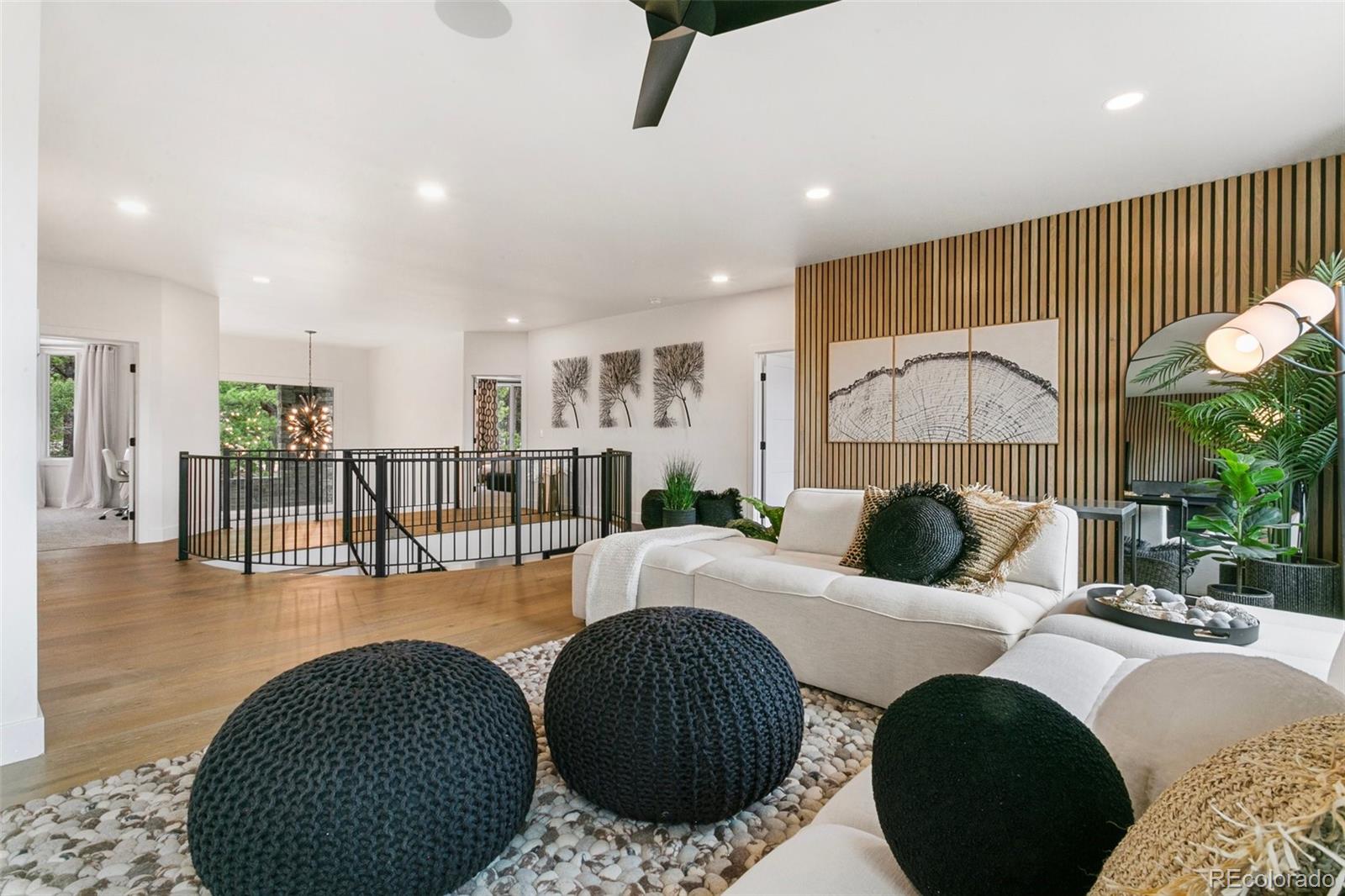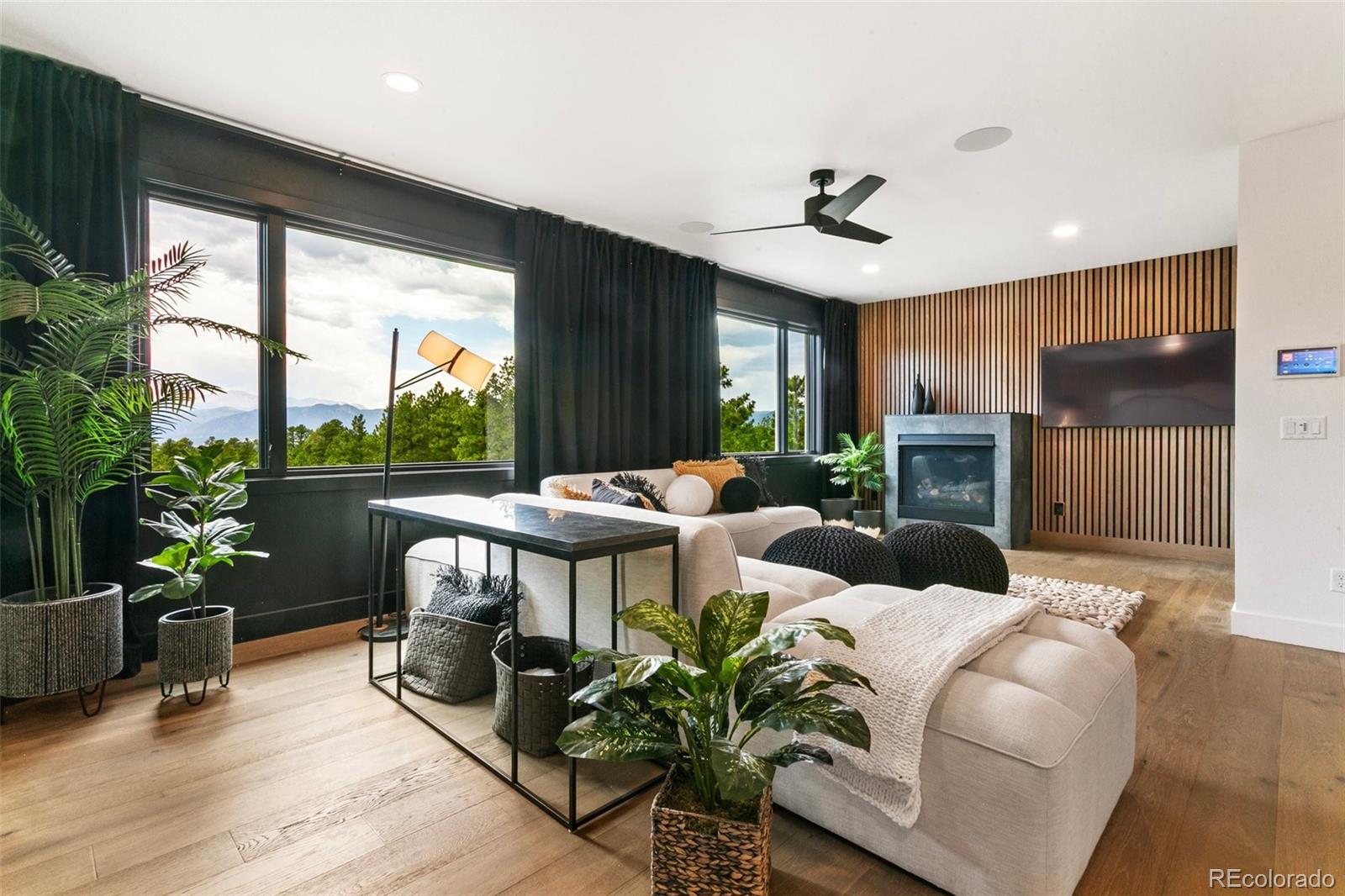 AUCTION - Property is being offered via online auction. Now being offered fully furnished. Professionally reimagined and designed by award-winning Tiffany Homes, this exceptional residence is set on 2.5 private acres w/ mature pines, the property features unobstructed vistas of Pikes Peak offering privacy & tranquility. Minutes from Hwy 83, I-25, Flying Horse Golf Club, Powers Corridor shopping, & dining. Wide-plank European white oak flooring flows throughout most of the main level, staircase, & upper family room. Ideal for entertaining, the formal dining room accommodates 12 guests. The chefs kitchen features 3 sinks, 3 dishwashers, 3 ovens, 2 built-in refrigerators, built-in freezer, 2-level island w/ gas or electric cooktop options, & a walk-behind scullery for prep, storage, or catering. A 12 pass-through window opens to the spacious, covered deck. The great room showcases a fireplace, floating wood hearth, & 16 sliding glass door, creating seamless indoor-outdoor living. The main-level primary suite offers a private sitting area, spa-like bath, and expansive 10 x 17 walk-in closet. A library/study, owners entry mudroom, powder bath, & laundry room complete the main level. Upstairs includes a junior ensuite, family room w/ fireplace & half bath, plus 2 bedrooms connected by a Jack-and-Jill bath w/ private vanities. The walk-out lower level features a glass-encased wine cellar, full bar, theater with 150 screen and seating for 11, auto lounge & recreation area w/ glass garage door, 2 ensuite bedrooms, powder room, and storage. Enjoy spectacular views from the lower-level patio. A detached 35 x 35 RV garage/shop with 9 x 9 and 12 x 12 doors completes this extraordinary property.