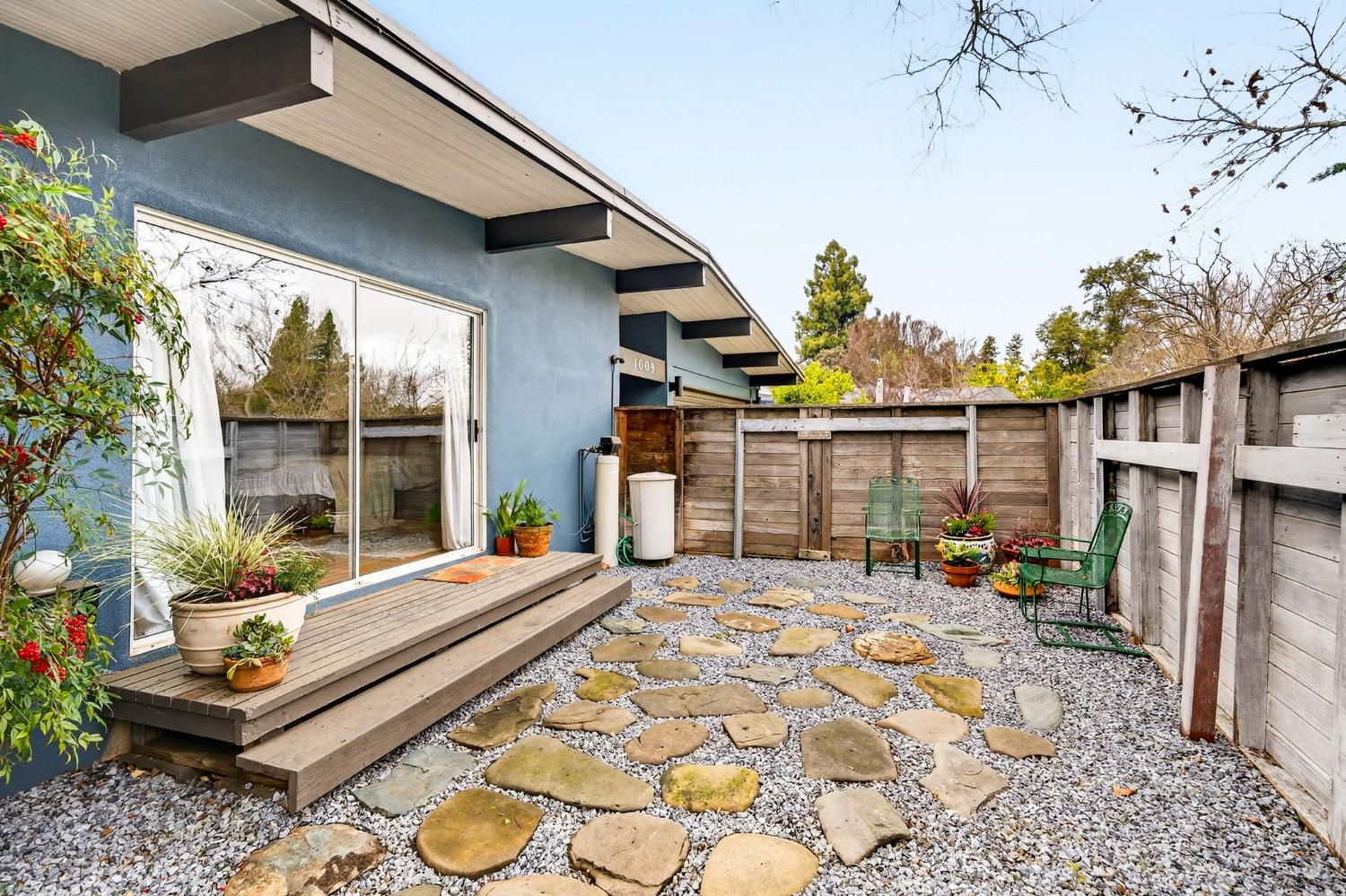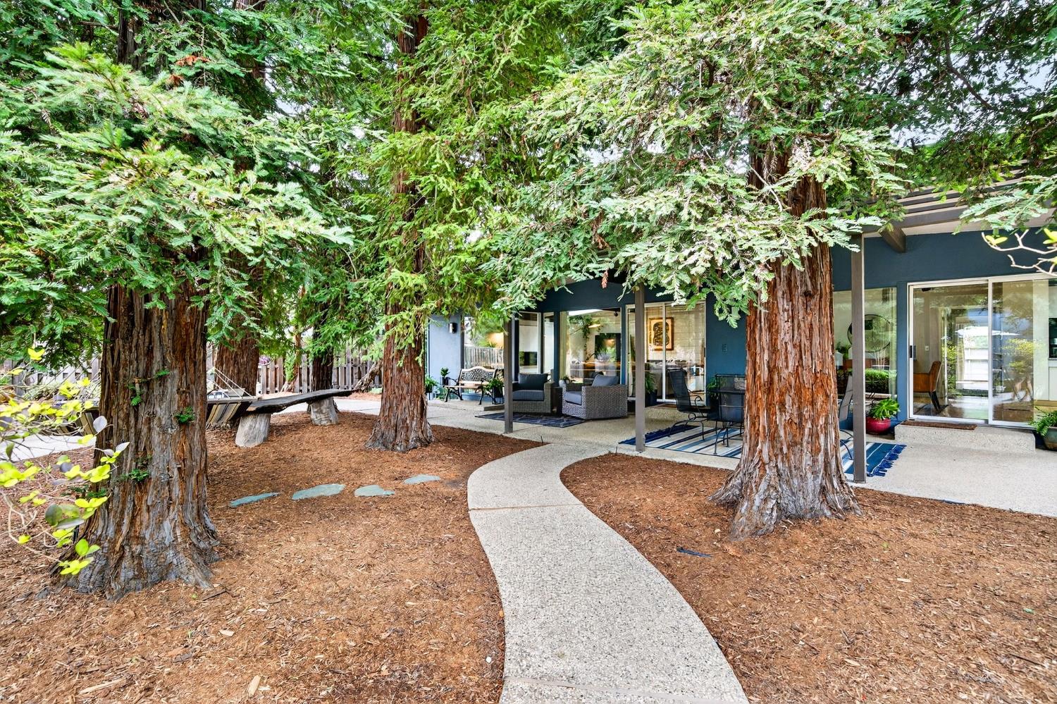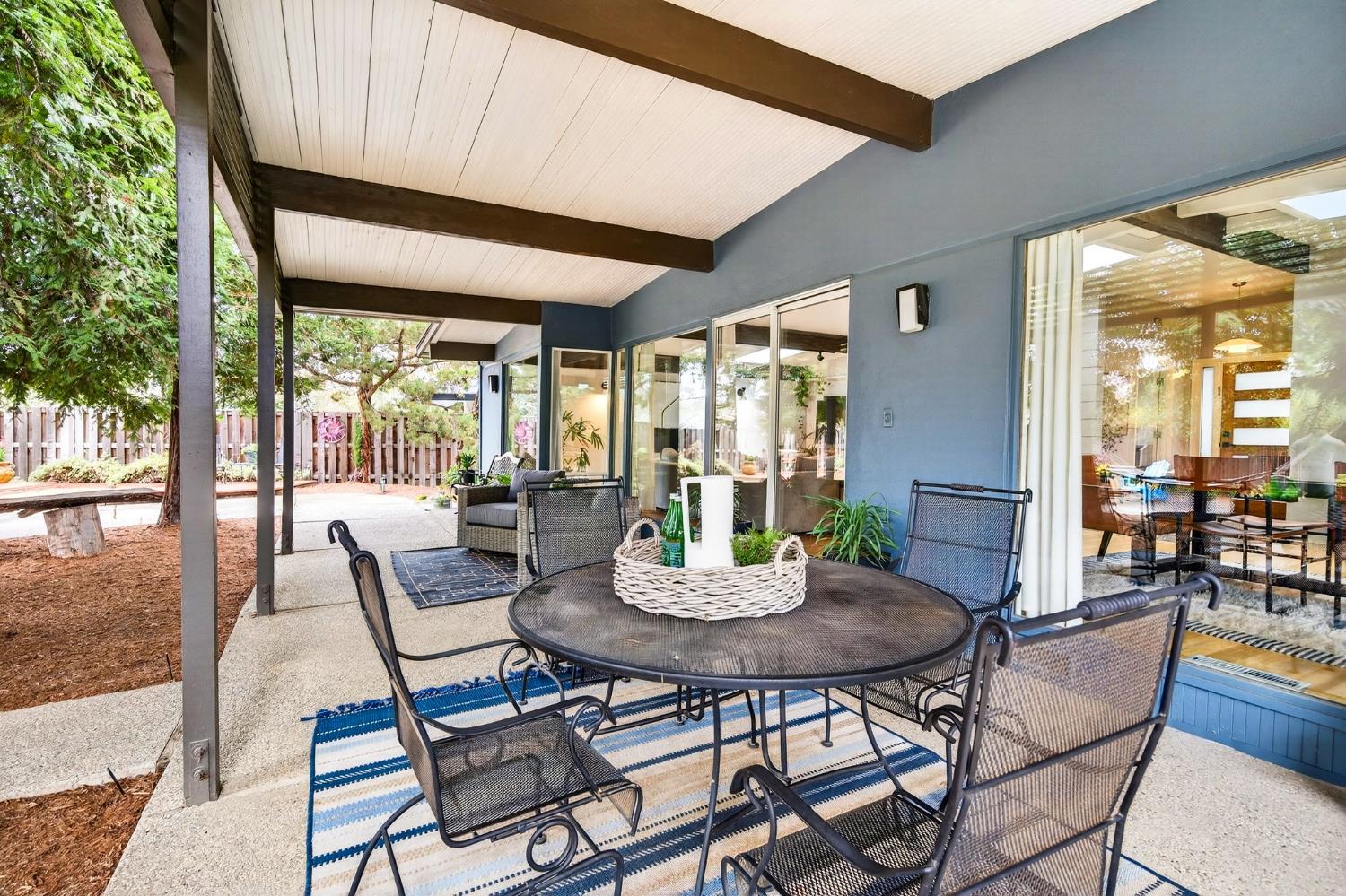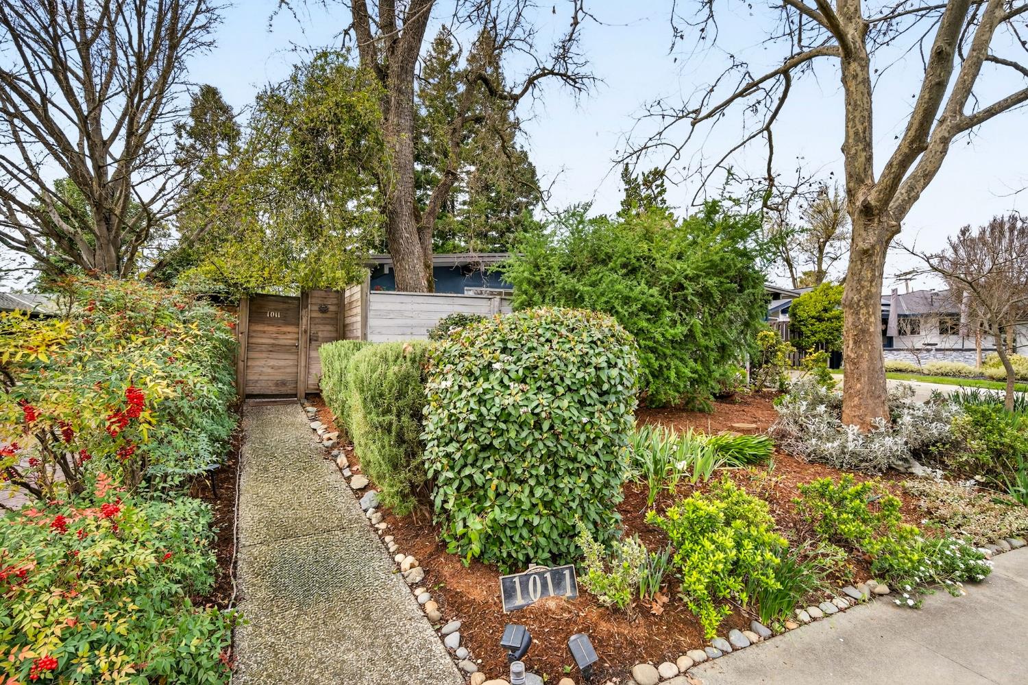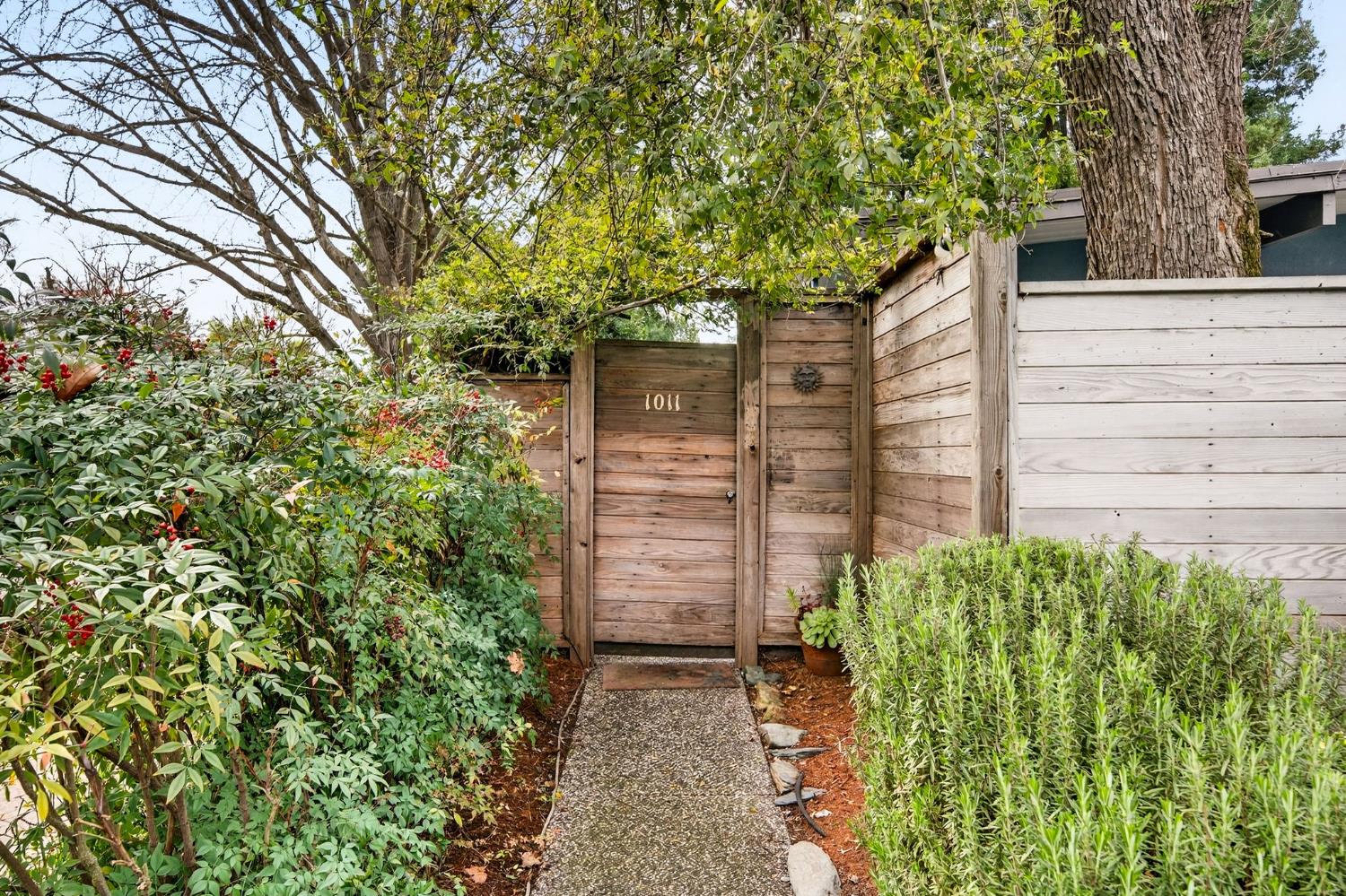 Mid-Century Modern Dream Home with Guest Cottage/ADU on a Cul-de-Sac Tucked at the end of a peaceful cul-de-sac in one of Central Davis best-kept secrets, this stunning Streng home on Ovejas offers iconic design, privacy, and exceptional walkability to Downtown Davis and UC Davis. Set on a beautifully landscaped lot, a separate guest cottage rests at the back of a redwood-filled yard, creating a serene and private retreat. The tranquil garden setting features mature trees, a shaded hammock, and a cozy covered patio ideal for al fresco dining and year-round entertaining. Inside, walls of glass create a seamless indoor-outdoor connection and bathe the home in natural light. Hardwood floors, open beam ceilings, and the signature Mid-Century Modern aesthetic make this residence both timeless and inviting. The private one-bedroom guest cottage includes a full kitchen, living area, bedroom, and bath perfect for extended family, guests, rental income, or a private office/small business space. With a strong seven-year track record as a highly rated Airbnb, the property has averaged approximately 42,000 annually over the past three years. Per appraiser measurements, the main home (1009 Ovejas) offers 1,996 sq ft, and the ADU (1011 Ovejas) adds 414 sq ft, for a total of 2,410 sq ft. All of this in a premier location just moments from Downtown Davis, UC Davis, parks, bike paths, and everything that makes Davis so desirable. A rare opportunity to own architectural character, generous living space, income potential, and an unbeatable setting this is truly a must-see.