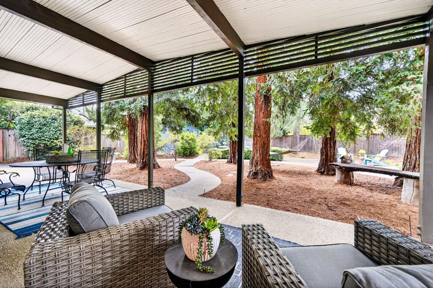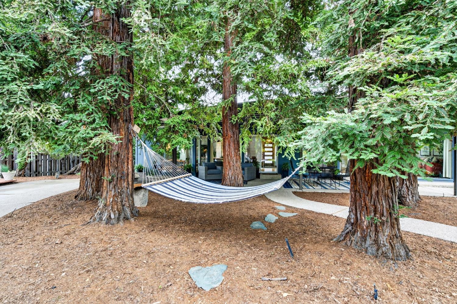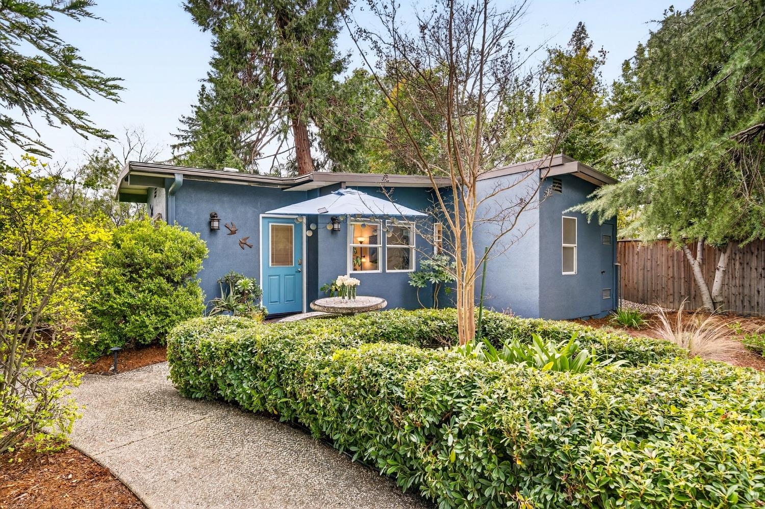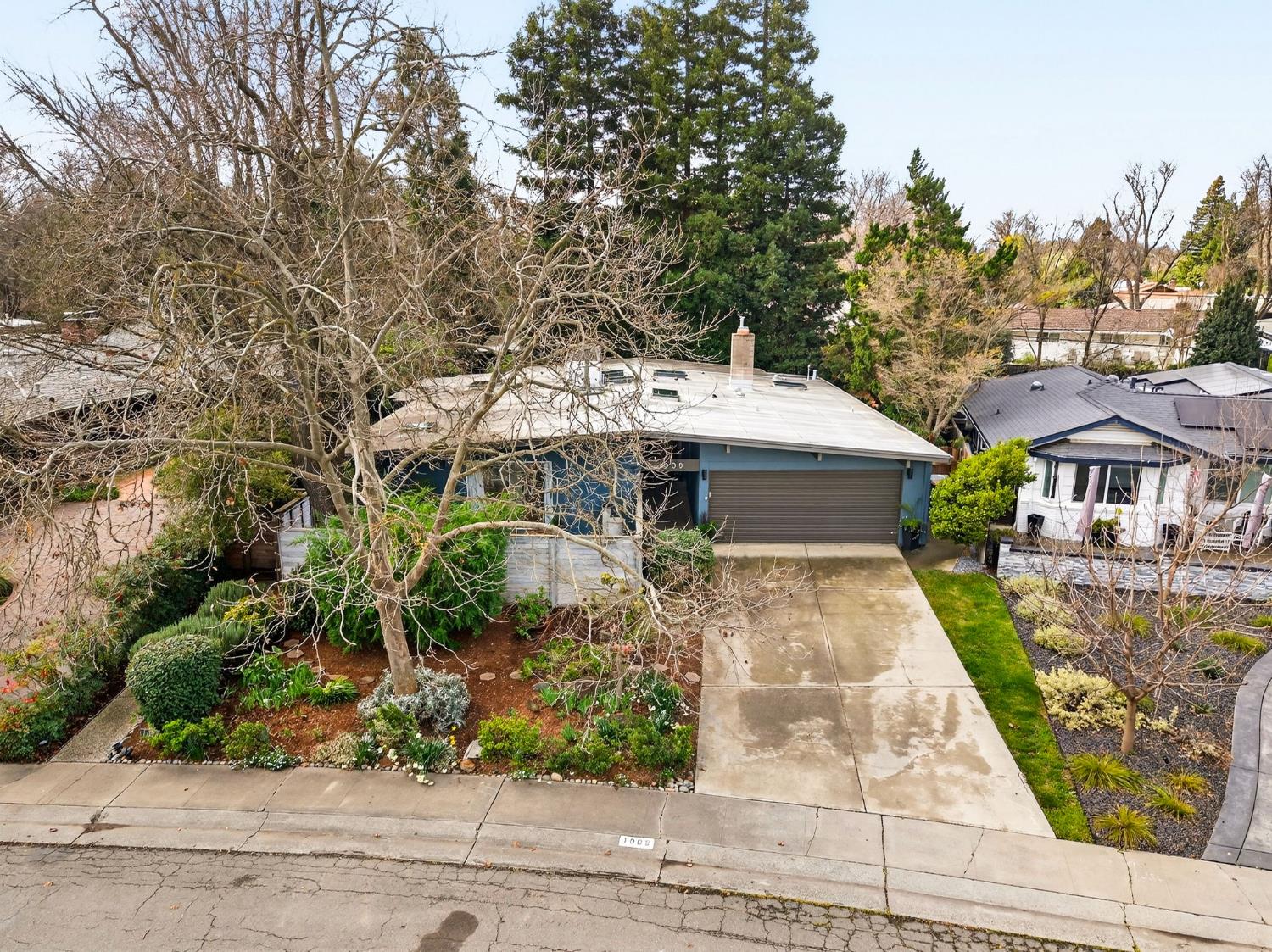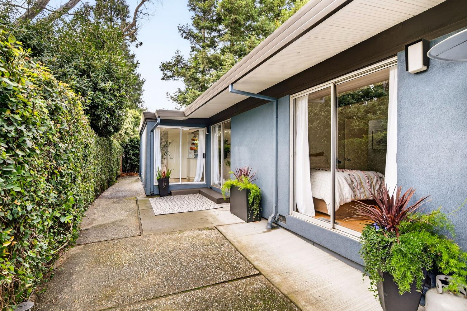 Mid-Century Modern Dream Home with Guest Cottage/ADU on a Cul-de-Sac Tucked at the end of a peaceful cul-de-sac in one of Central Davis best-kept secrets, this stunning Streng home on Ovejas offers iconic design, privacy, and exceptional walkability to Downtown Davis and UC Davis. Set on a beautifully landscaped lot, a separate guest cottage rests at the back of a redwood-filled yard, creating a serene and private retreat. The tranquil garden setting features mature trees, a shaded hammock, and a cozy covered patio ideal for al fresco dining and year-round entertaining. Inside, walls of glass create a seamless indoor-outdoor connection and bathe the home in natural light. Hardwood floors, open beam ceilings, and the signature Mid-Century Modern aesthetic make this residence both timeless and inviting. The private one-bedroom guest cottage includes a full kitchen, living area, bedroom, and bath perfect for extended family, guests, rental income, or a private office/small business space. With a strong seven-year track record as a highly rated Airbnb, the property has averaged approximately 42,000 annually over the past three years. Per appraiser measurements, the main home (1009 Ovejas) offers 1,996 sq ft, and the ADU (1011 Ovejas) adds 414 sq ft, for a total of 2,410 sq ft. All of this in a premier location just moments from Downtown Davis, UC Davis, parks, bike paths, and everything that makes Davis so desirable. A rare opportunity to own architectural character, generous living space, income potential, and an unbeatable setting this is truly a must-see.