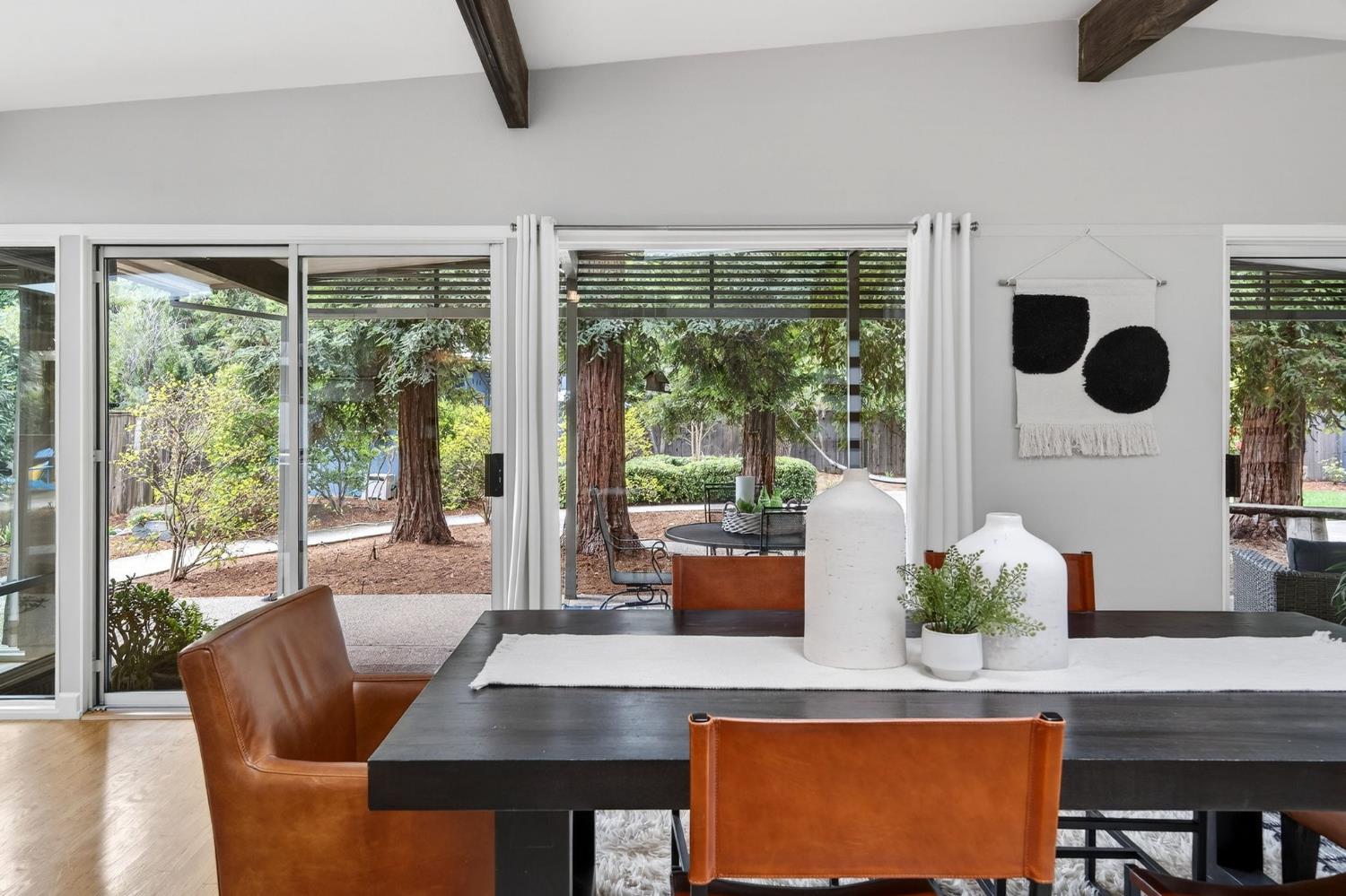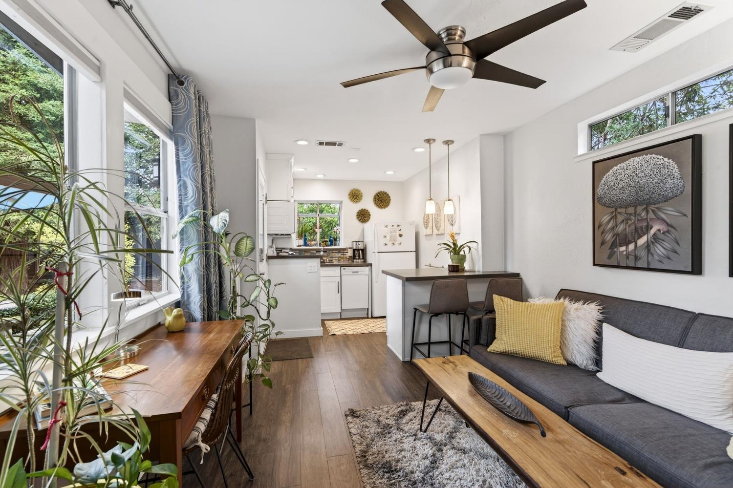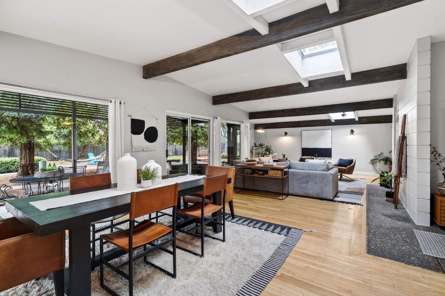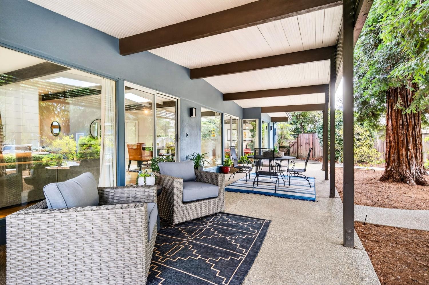 Mid-Century Modern Dream Home with Guest Cottage/ADU on a Cul-de-Sac Tucked at the end of a peaceful cul-de-sac in one of Central Davis best-kept secrets, this stunning Streng home on Ovejas offers iconic design, privacy, and exceptional walkability to Downtown Davis and UC Davis. Set on a beautifully landscaped lot, a separate guest cottage rests at the back of a redwood-filled yard, creating a serene and private retreat. The tranquil garden setting features mature trees, a shaded hammock, and a cozy covered patio ideal for al fresco dining and year-round entertaining. Inside, walls of glass create a seamless indoor-outdoor connection and bathe the home in natural light. Hardwood floors, open beam ceilings, and the signature Mid-Century Modern aesthetic make this residence both timeless and inviting. The private one-bedroom guest cottage includes a full kitchen, living area, bedroom, and bath perfect for extended family, guests, rental income, or a private office/small business space. With a strong seven-year track record as a highly rated Airbnb, the property has averaged approximately 42,000 annually over the past three years. Per appraiser measurements, the main home (1009 Ovejas) offers 1,996 sq ft, and the ADU (1011 Ovejas) adds 414 sq ft, for a total of 2,410 sq ft. All of this in a premier location just moments from Downtown Davis, UC Davis, parks, bike paths, and everything that makes Davis so desirable. A rare opportunity to own architectural character, generous living space, income potential, and an unbeatable setting this is truly a must-see.
