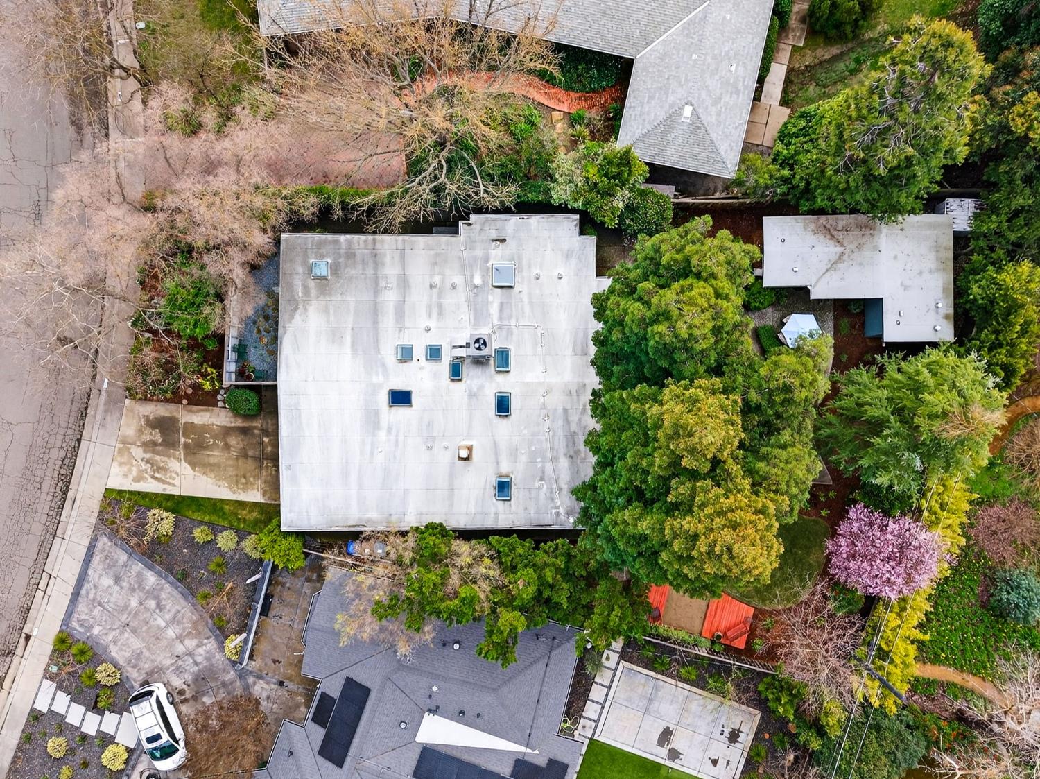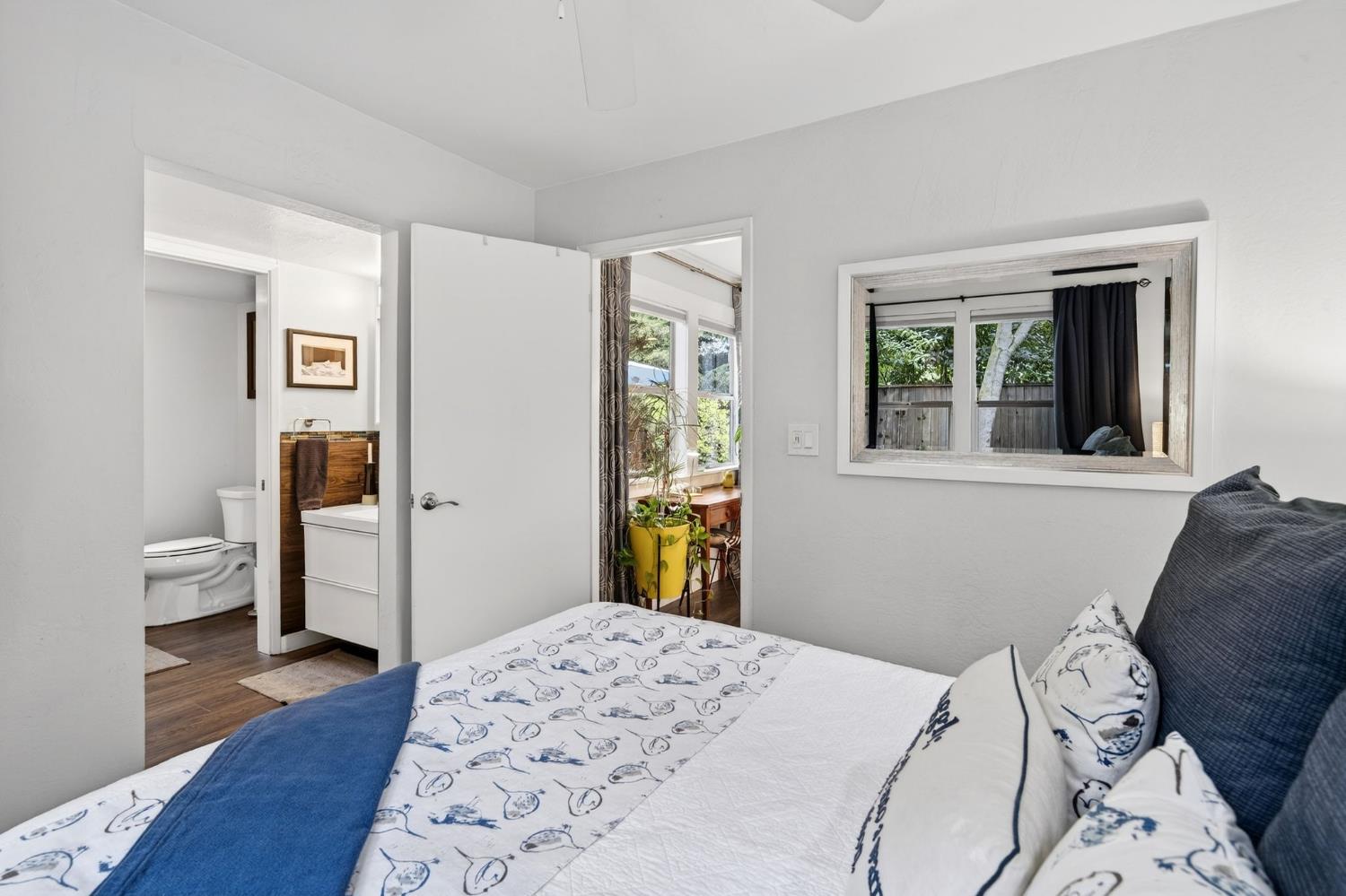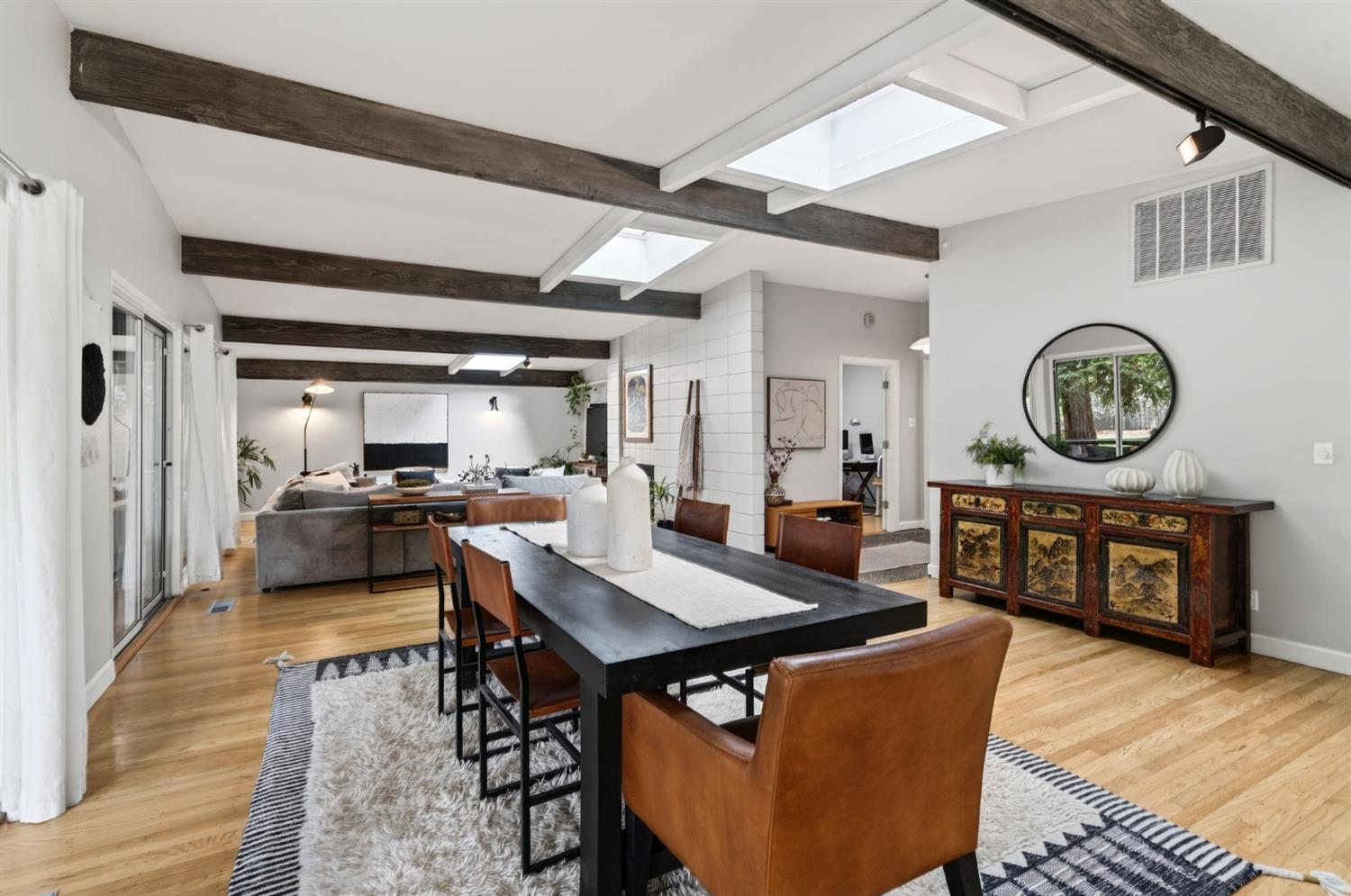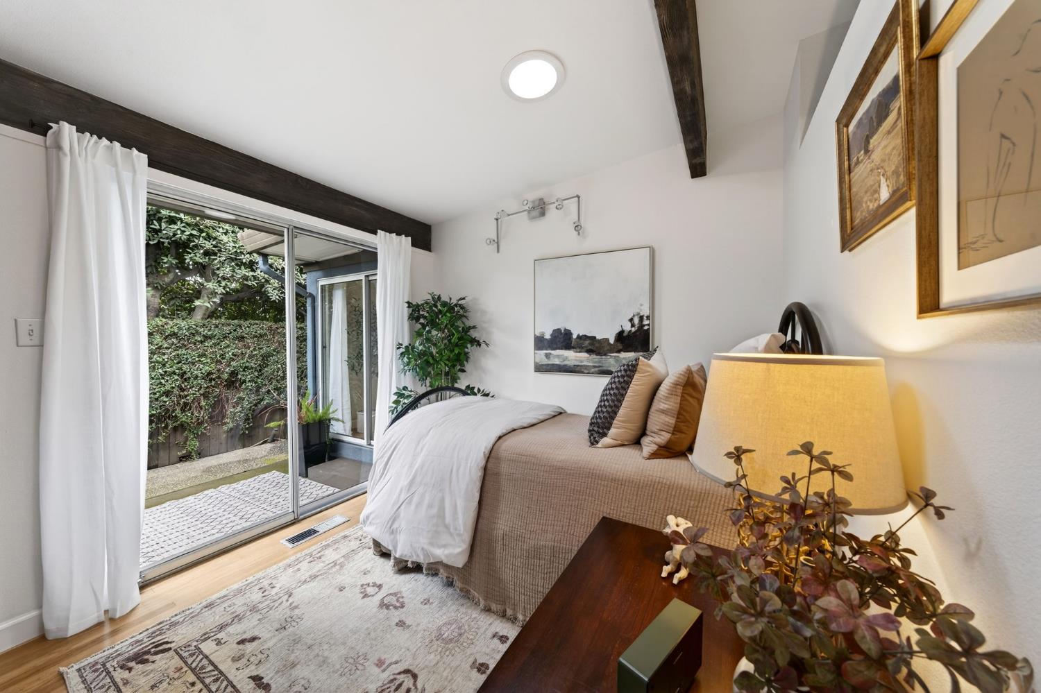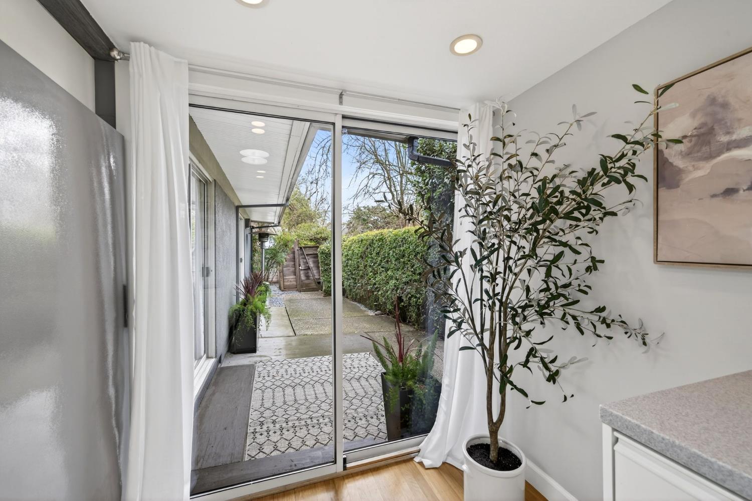 Mid-Century Modern Dream Home with Guest Cottage/ADU on a Cul-de-Sac Tucked at the end of a peaceful cul-de-sac in one of Central Davis best-kept secrets, this stunning Streng home on Ovejas offers iconic design, privacy, and exceptional walkability to Downtown Davis and UC Davis. Set on a beautifully landscaped lot, a separate guest cottage rests at the back of a redwood-filled yard, creating a serene and private retreat. The tranquil garden setting features mature trees, a shaded hammock, and a cozy covered patio ideal for al fresco dining and year-round entertaining. Inside, walls of glass create a seamless indoor-outdoor connection and bathe the home in natural light. Hardwood floors, open beam ceilings, and the signature Mid-Century Modern aesthetic make this residence both timeless and inviting. The private one-bedroom guest cottage includes a full kitchen, living area, bedroom, and bath perfect for extended family, guests, rental income, or a private office/small business space. With a strong seven-year track record as a highly rated Airbnb, the property has averaged approximately 42,000 annually over the past three years. Per appraiser measurements, the main home (1009 Ovejas) offers 1,996 sq ft, and the ADU (1011 Ovejas) adds 414 sq ft, for a total of 2,410 sq ft. All of this in a premier location just moments from Downtown Davis, UC Davis, parks, bike paths, and everything that makes Davis so desirable. A rare opportunity to own architectural character, generous living space, income potential, and an unbeatable setting this is truly a must-see.