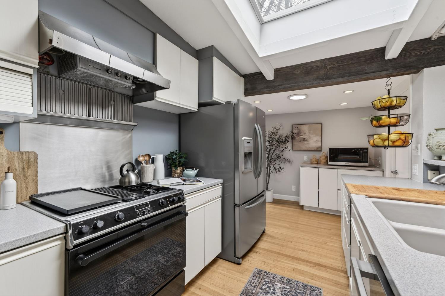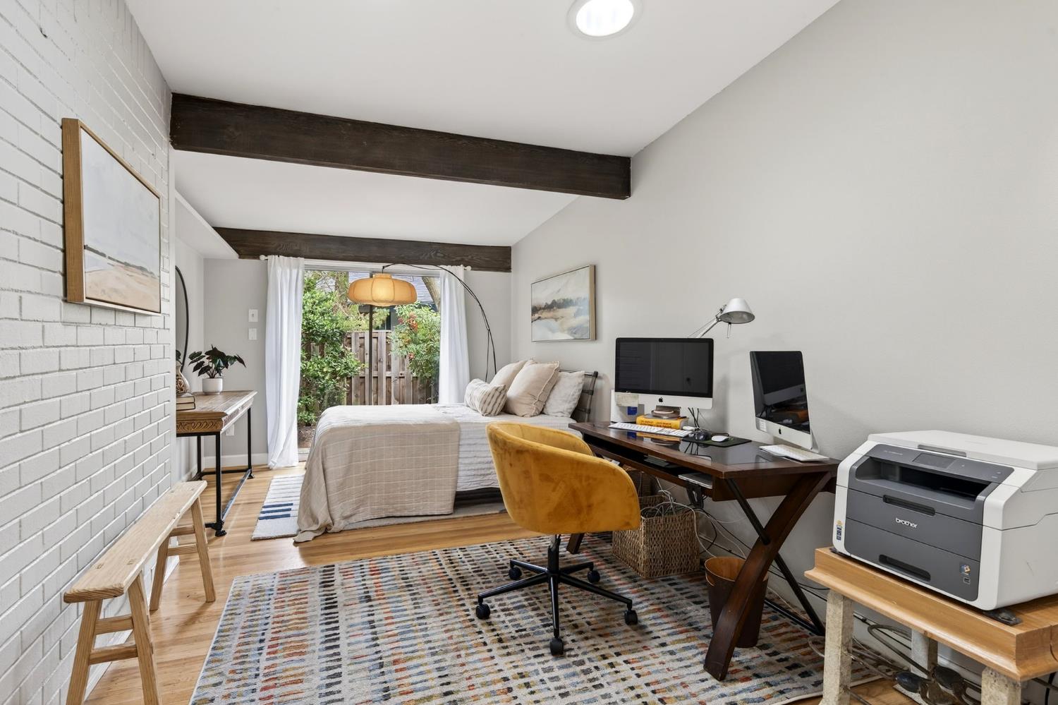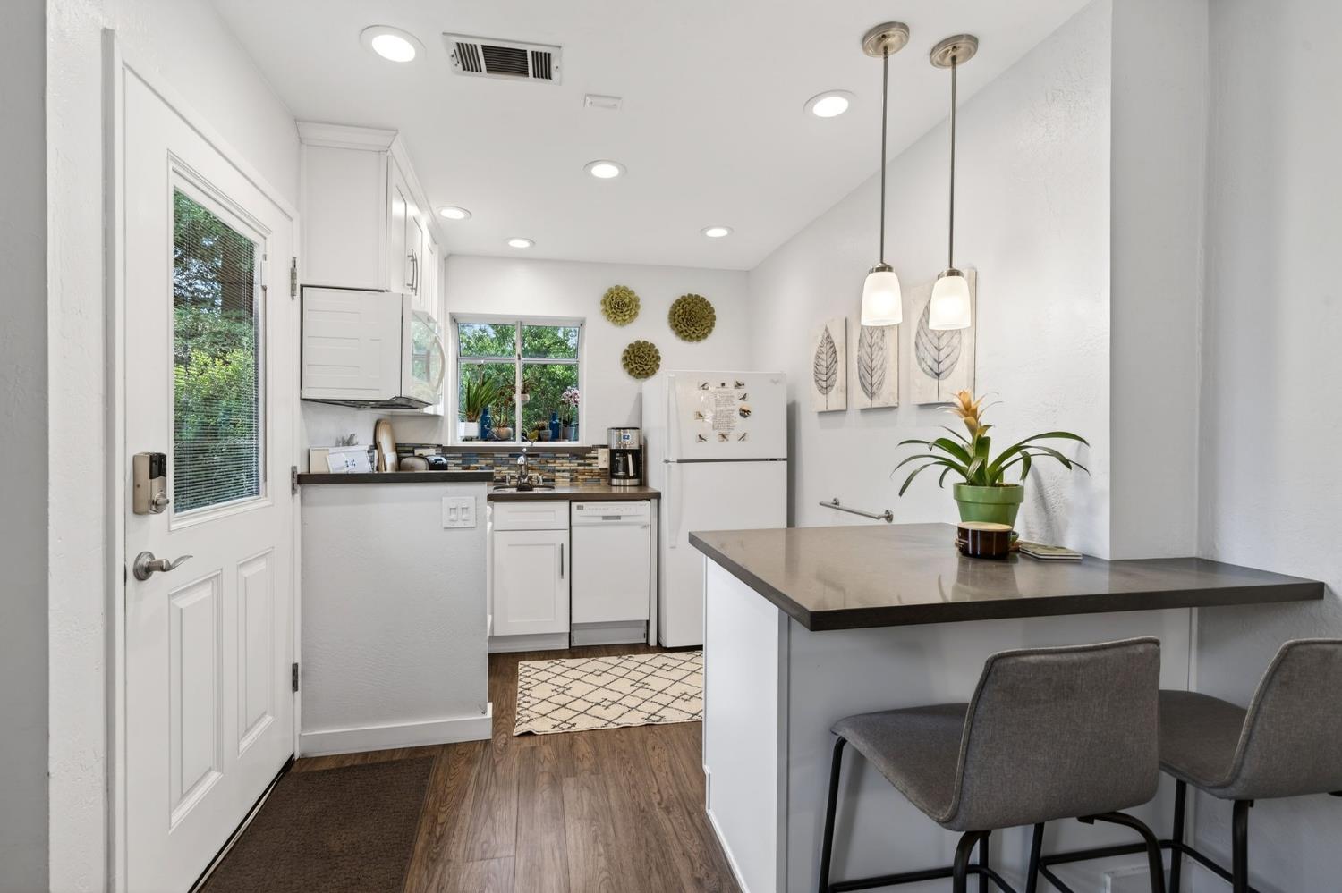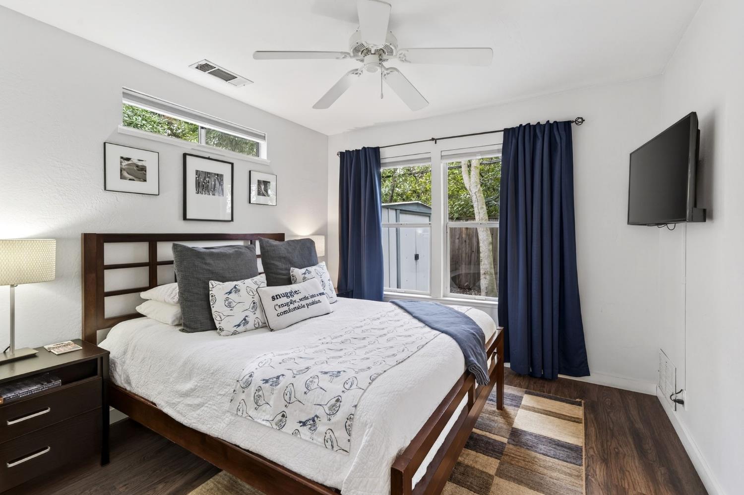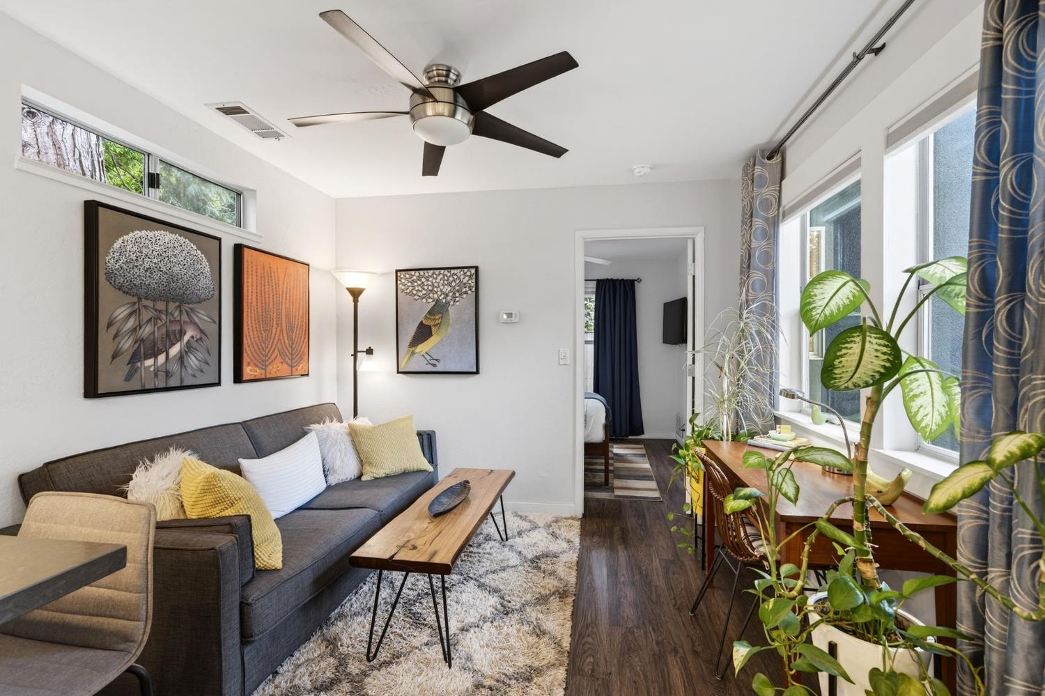 Mid-Century Modern Dream Home with Guest Cottage/ADU on a Cul-de-Sac Tucked at the end of a peaceful cul-de-sac in one of Central Davis best-kept secrets, this stunning Streng home on Ovejas offers iconic design, privacy, and exceptional walkability to Downtown Davis and UC Davis. Set on a beautifully landscaped lot, a separate guest cottage rests at the back of a redwood-filled yard, creating a serene and private retreat. The tranquil garden setting features mature trees, a shaded hammock, and a cozy covered patio ideal for al fresco dining and year-round entertaining. Inside, walls of glass create a seamless indoor-outdoor connection and bathe the home in natural light. Hardwood floors, open beam ceilings, and the signature Mid-Century Modern aesthetic make this residence both timeless and inviting. The private one-bedroom guest cottage includes a full kitchen, living area, bedroom, and bath perfect for extended family, guests, rental income, or a private office/small business space. With a strong seven-year track record as a highly rated Airbnb, the property has averaged approximately 42,000 annually over the past three years. Per appraiser measurements, the main home (1009 Ovejas) offers 1,996 sq ft, and the ADU (1011 Ovejas) adds 414 sq ft, for a total of 2,410 sq ft. All of this in a premier location just moments from Downtown Davis, UC Davis, parks, bike paths, and everything that makes Davis so desirable. A rare opportunity to own architectural character, generous living space, income potential, and an unbeatable setting this is truly a must-see.