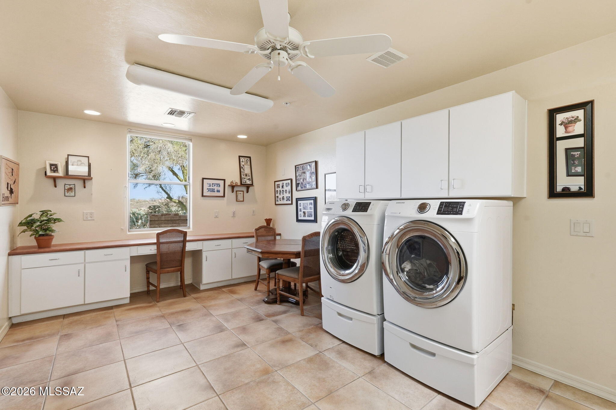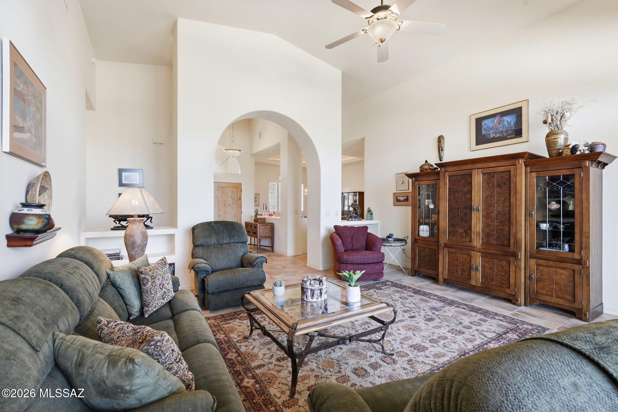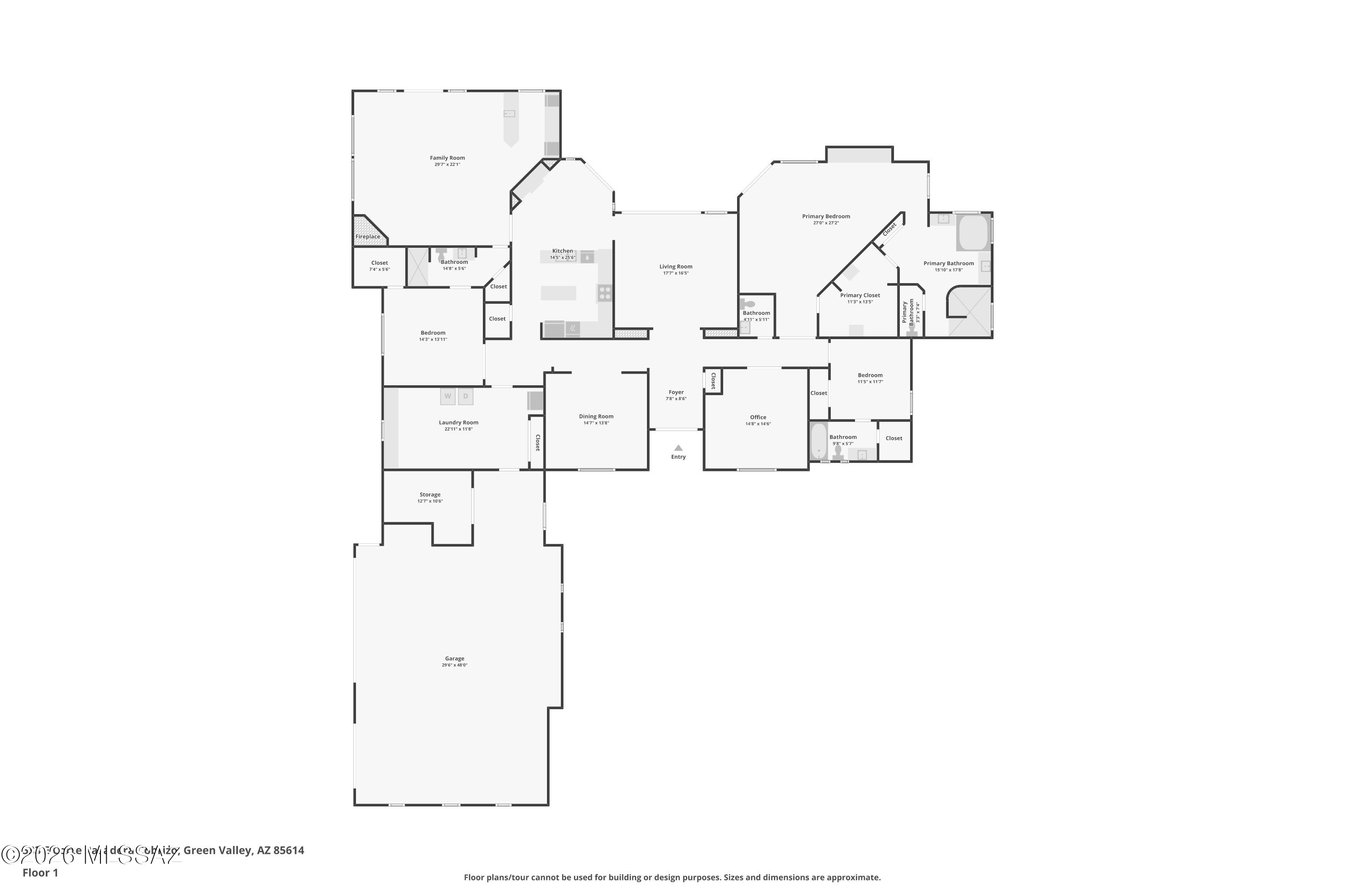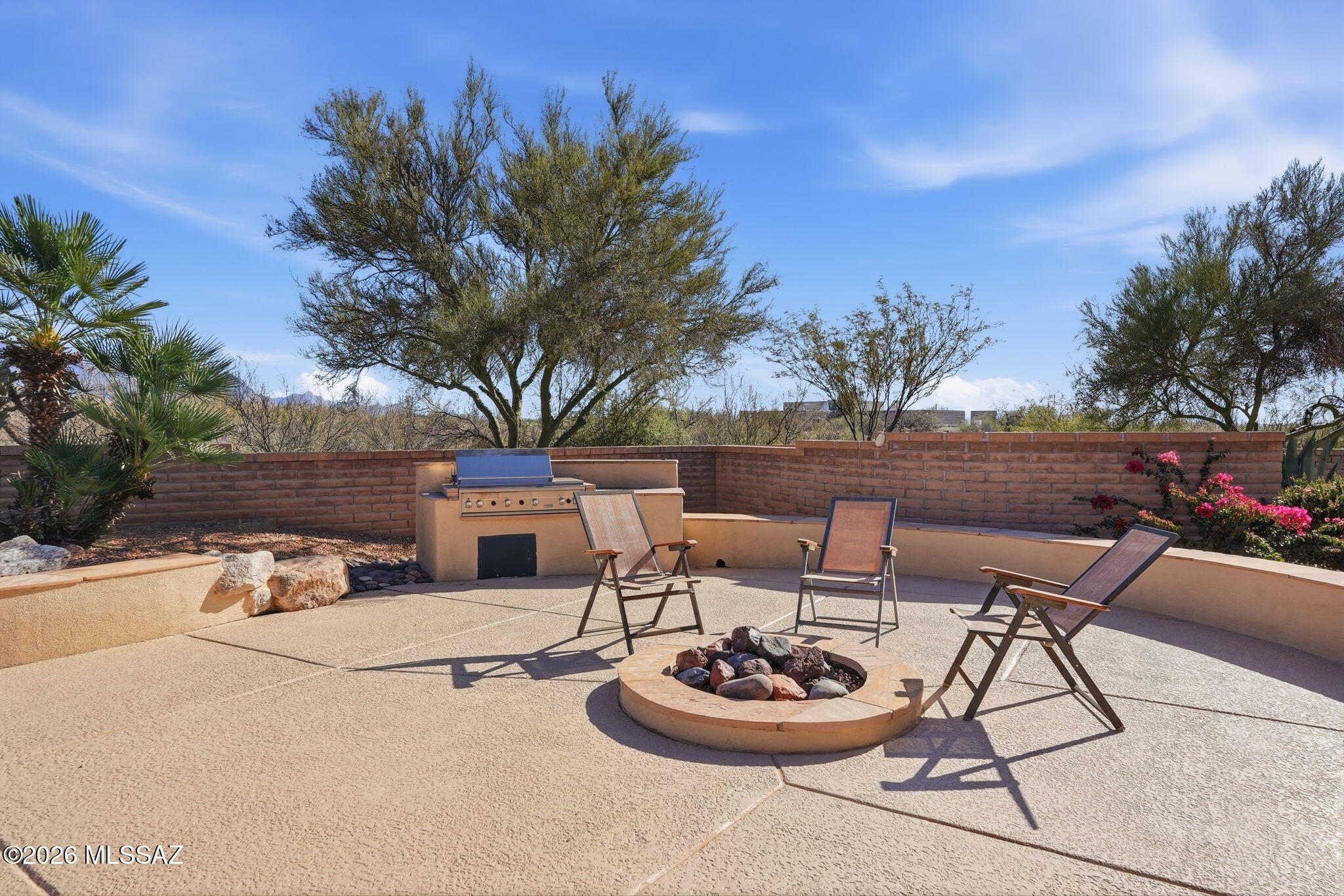 Framed by the breathtaking Santa Rita Mountains, this exceptional custom Dorn-built home in Pasadera sits on 4.14 private acres, offering sweeping desert views & refined Arizona living. A charming enclosed front courtyard with a decorative fountain welcomes you, setting the tone for the tranquility found throughout the property. The backyard is designed as a private desert retreat with a gas-heated pool & spa featuring a double waterfall, expansive Kool decking, a built-in BBQ, & a gas fire pit--perfect for entertaining while enjoying spectacular mountain sunsets. Inside, the home blends comfort & elegance. The gourmet kitchen features granite countertops, abundant custom cabinetry, double ovens, trash compactor, & under cabinet lighting. The adjoining family/game room is an entertainers dream with a billiards area, media center, and wet bar with wine fridge and mini fridge. A formal dining room with an illuminated tray ceiling adds a touch of sophistication for special gatherings. The split bedroom floor plan offers privacy, with the spacious primary suite capturing mountain views and featuring built-in cabinetry, dual vanities, a jetted soaking tub, custom tiled walk-in shower, and a large walk-in closet with custom organization. A dedicated office/den provides the perfect work-from-home space.Additional highlights include an expansive laundry room that doubles as a hobby room, a three-bay oversized garage with workshop and storage, and a soft-water hose bib for washing vehicles.Important upgrades include owned solar for low utility costs, HVAC replaced in 2016 (warranty through Sept 2026), dual-flush toilets, new service utility doors, and fresh exterior paint with updated landscape rock and drip irrigation.Surrounded by mature desert landscaping and towering saguaros, this remarkable property offers privacy, space, and unforgettable views. GVR membership is not included but can be added if desired.