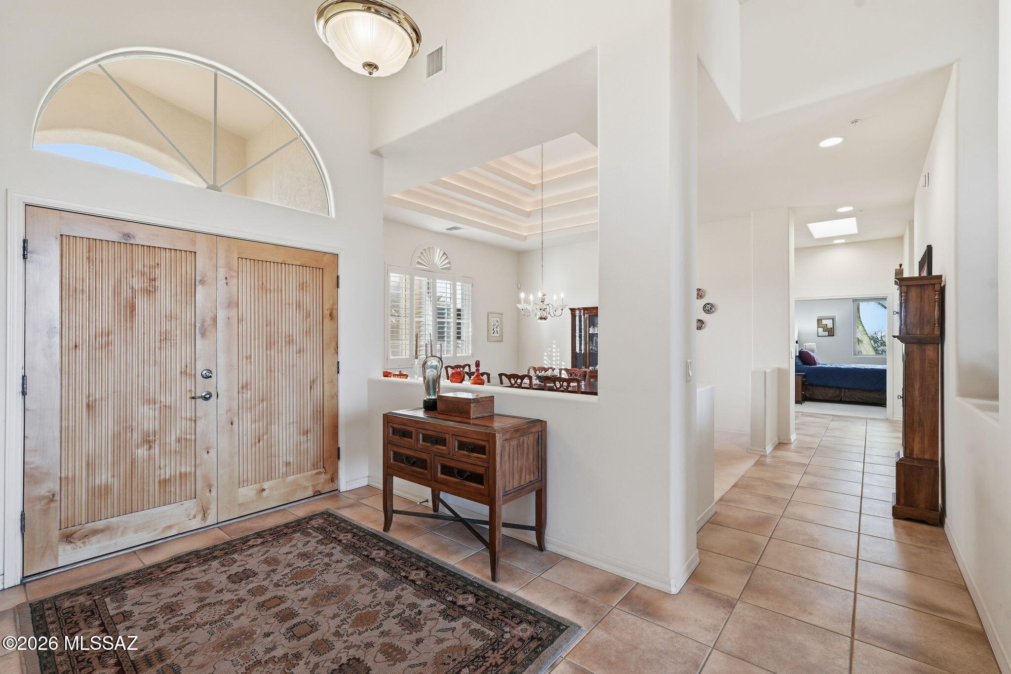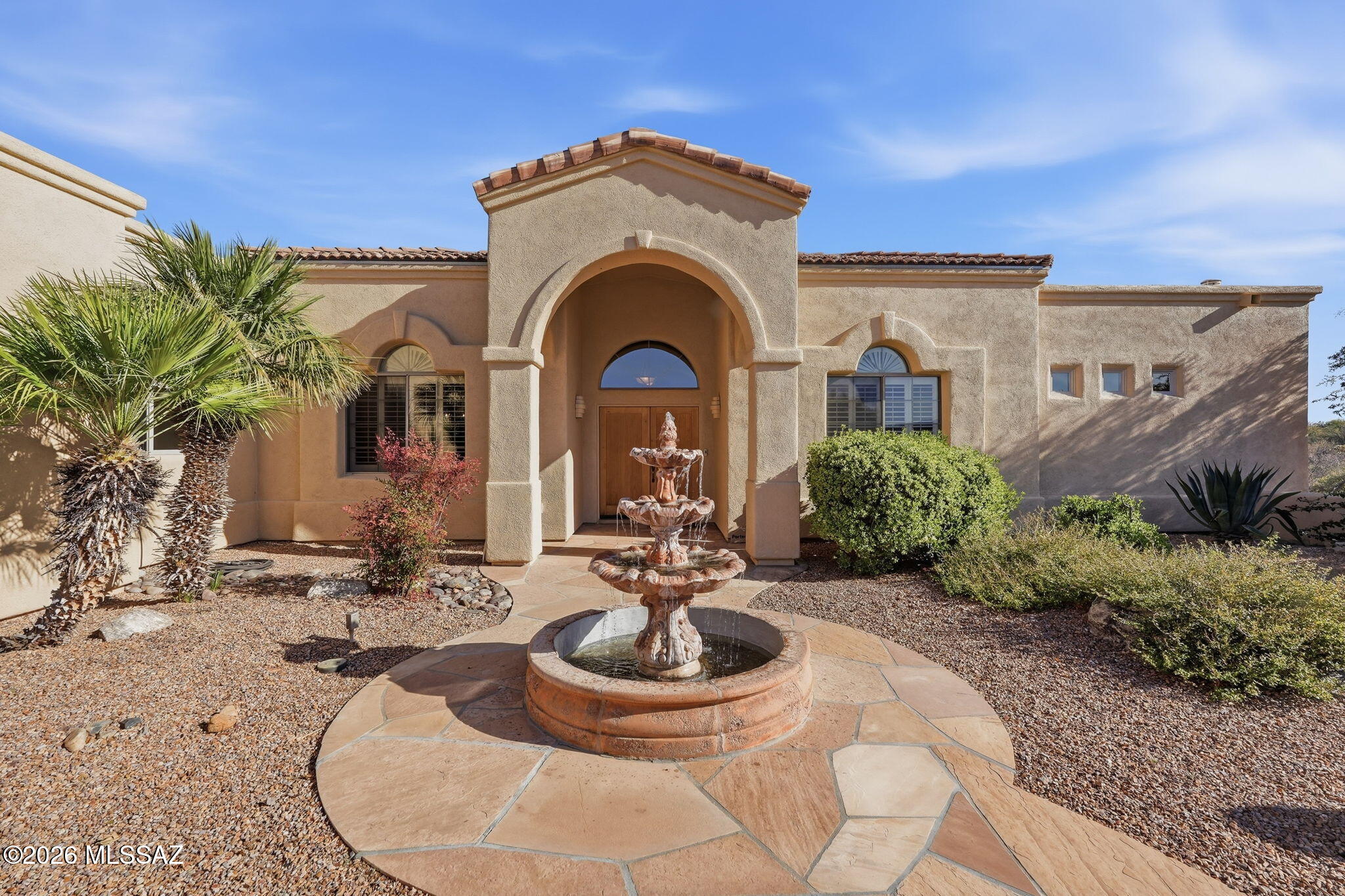 Framed by the breathtaking Santa Rita Mountains, this exceptional custom Dorn-built home in Pasadera sits on 4.14 private acres, offering sweeping desert views & refined Arizona living. A charming enclosed front courtyard with a decorative fountain welcomes you, setting the tone for the tranquility found throughout the property.