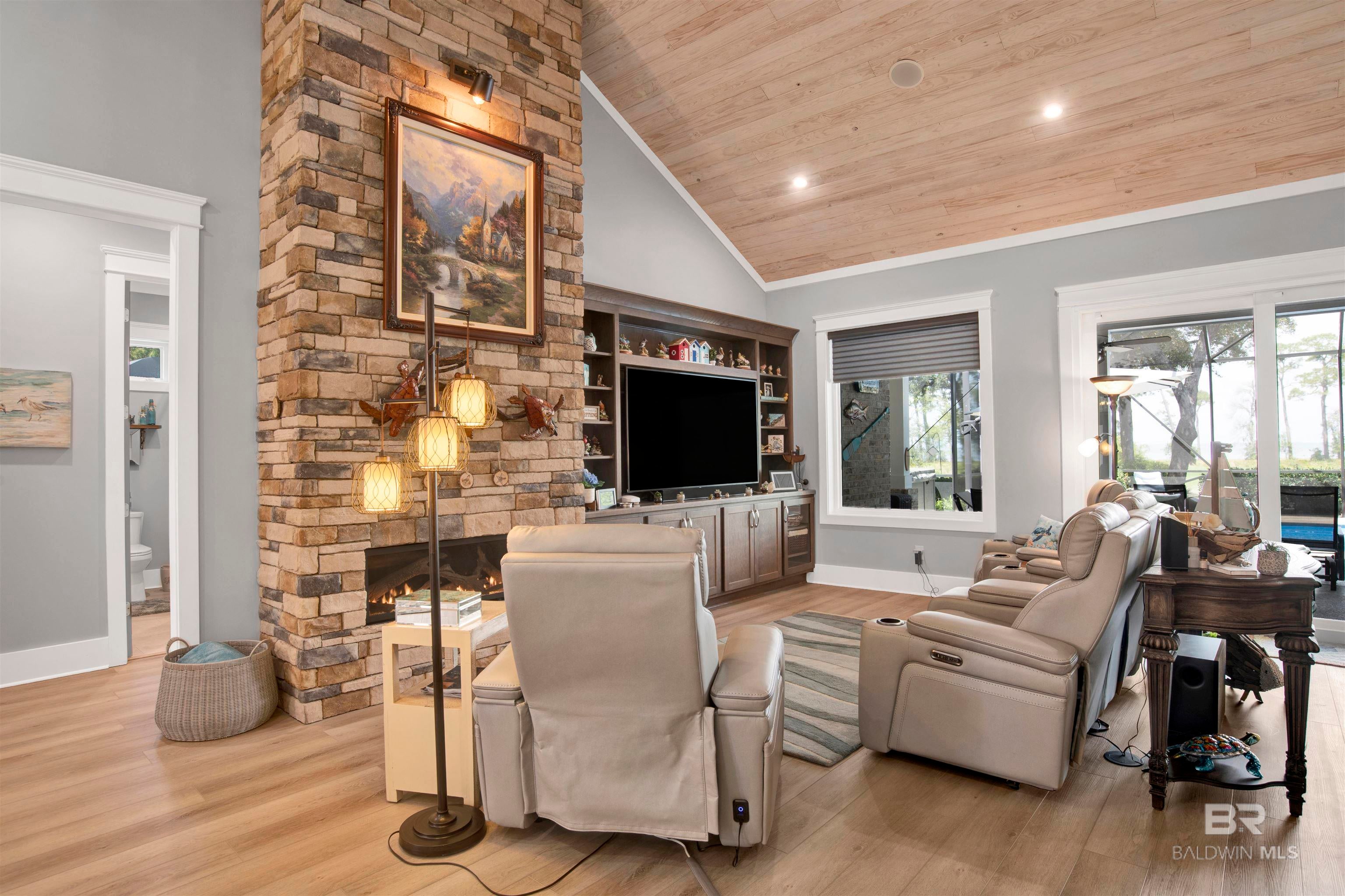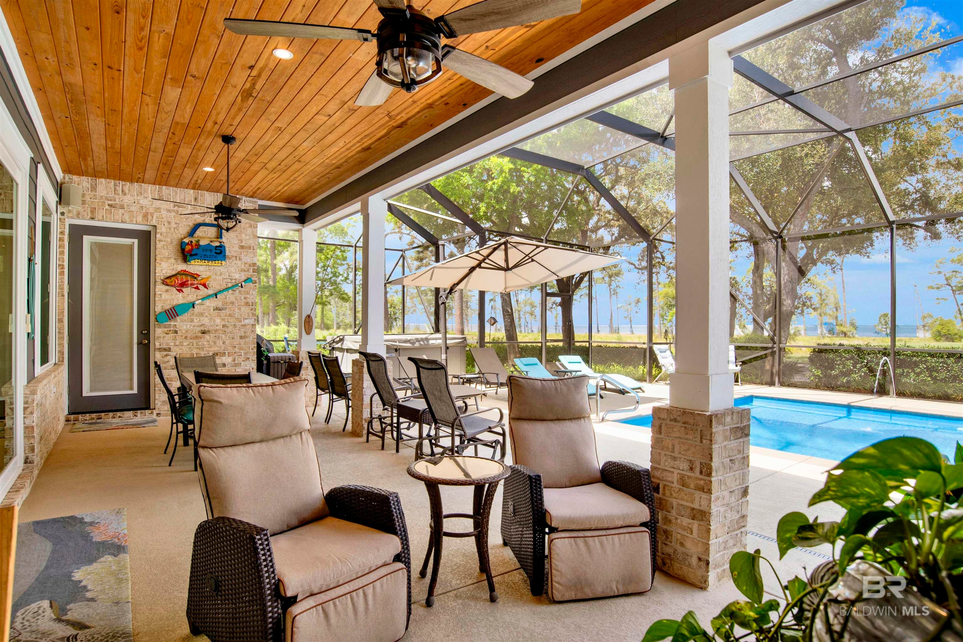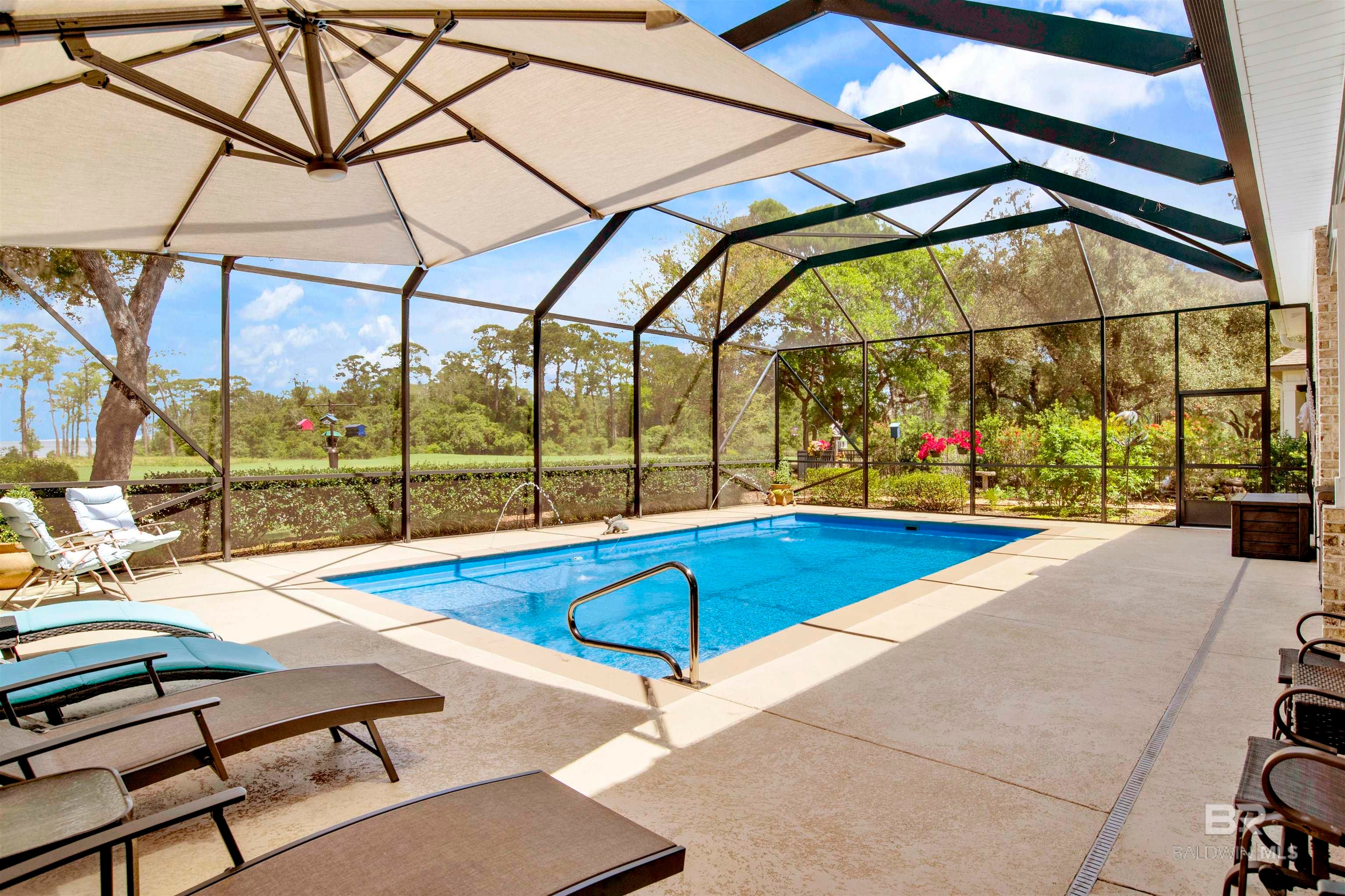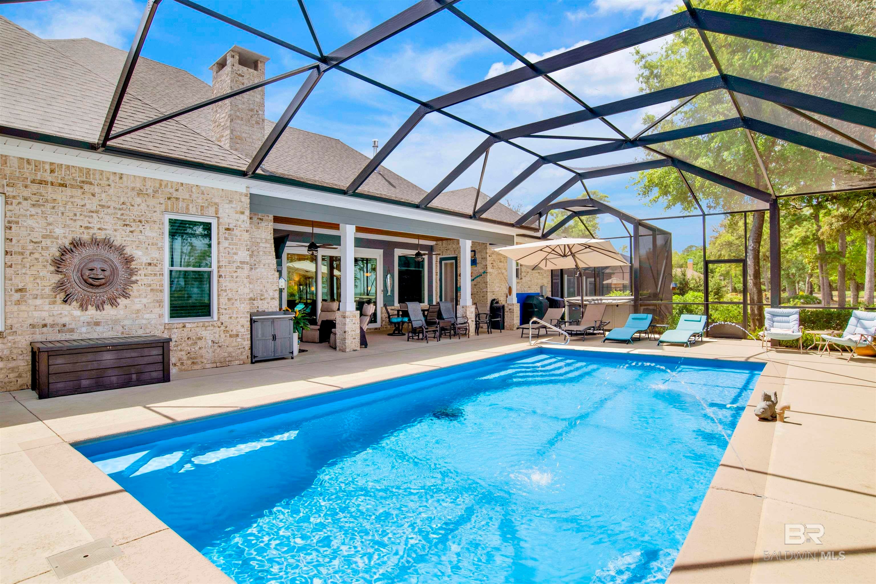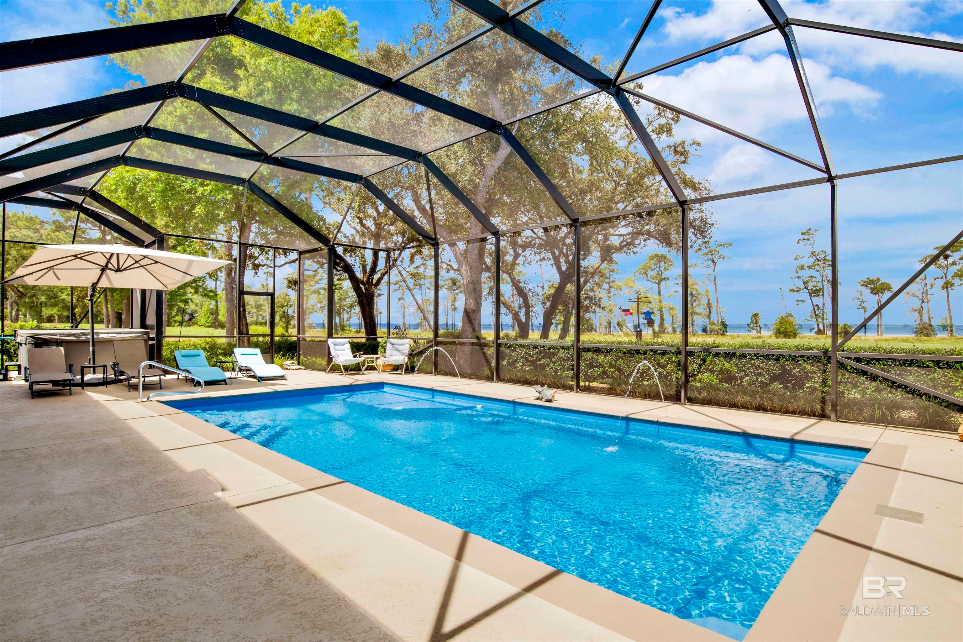 Welcome to an extraordinary custom-built luxury residence on one of the most sought-after streets in The Peninsula, where refined design meets breathtaking natural beauty. Perfectly positioned to capture sweeping golf course vistas and stunning 180-degree water views of Bon Secour Bay, this home offers an unmatched coastal lifestyle. Inside, every detail has been thoughtfully curated. The gourmet kitchen is a true centerpiece, featuring elegant quartz countertops, premium stainless steel appliances, custom cabinetry, and an expansive walk-in pantry designed for both functionality and style. The open-concept layout flows effortlessly into spacious living and dining areas, ideal for entertaining or relaxing in comfort. This beautifully designed home includes 3 generously sized bedrooms, 3 full baths, and 2 half baths, along with a private office and a second living area that is perfect for guests, media space, or a quiet retreat. The primary suite provides a luxurious escape, complete with dual separate vanities, soaking tub, walk-in shower, large walk-in closet, serene views and a spa-like atmosphere. Step outside to your private resort-style oasis. The outdoor living area boasts a 16 x 32 in-ground saltwater pool enclosed within a screened lanai, an inviting outdoor fireplace, and a ThermoSpa hot tubcreating the ultimate setting for year-round enjoyment. With ample space for entertaining and soaking in the coastal breeze, this backyard is truly exceptional. Offering privacy, prestige, and access to world-class golf and amenities, this home is a rare opportunity to own in one of Gulf Shores premier gated communities. You have to see it to believe it! Experience luxury living at its finest. Buyer to verify all information during due diligence.
