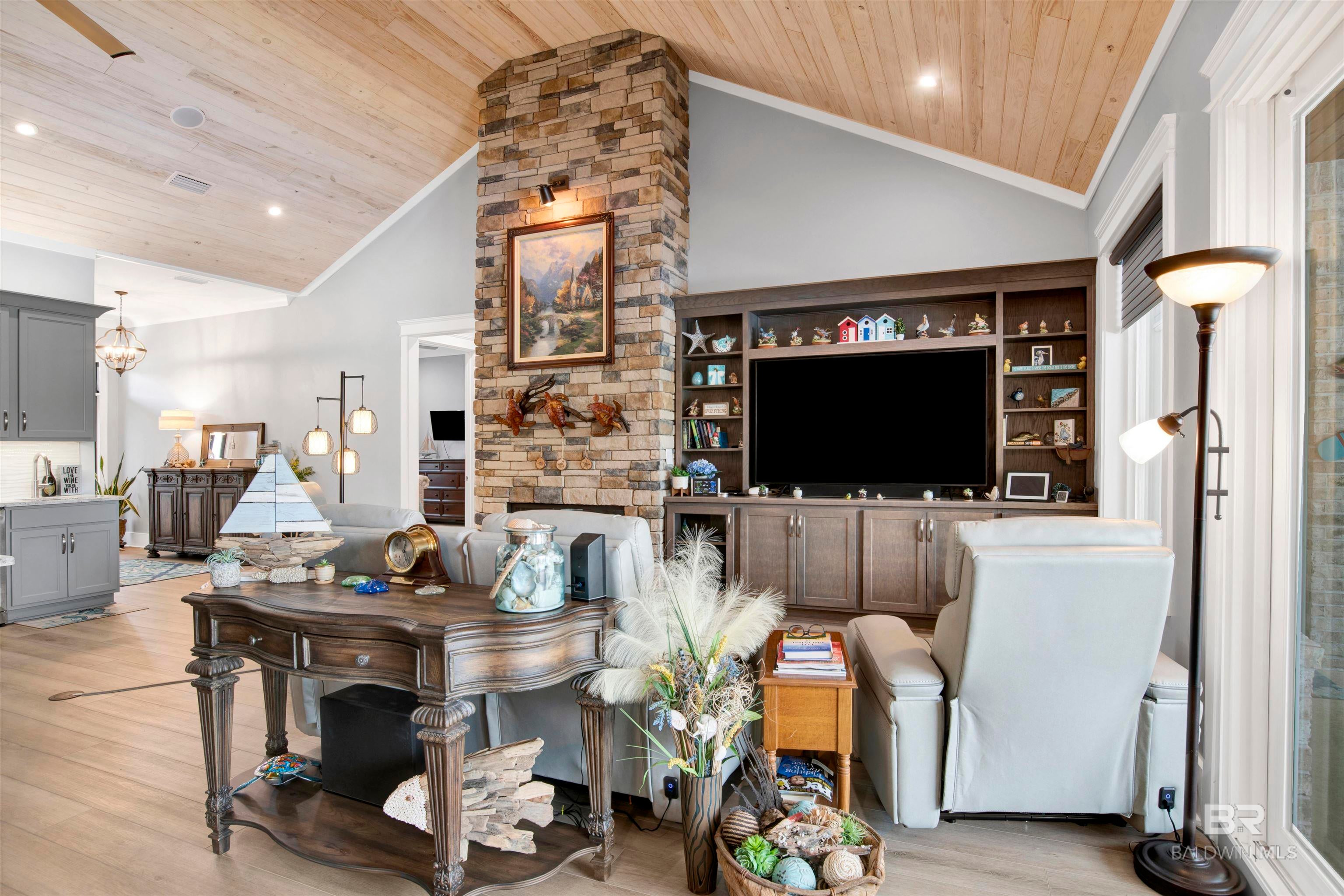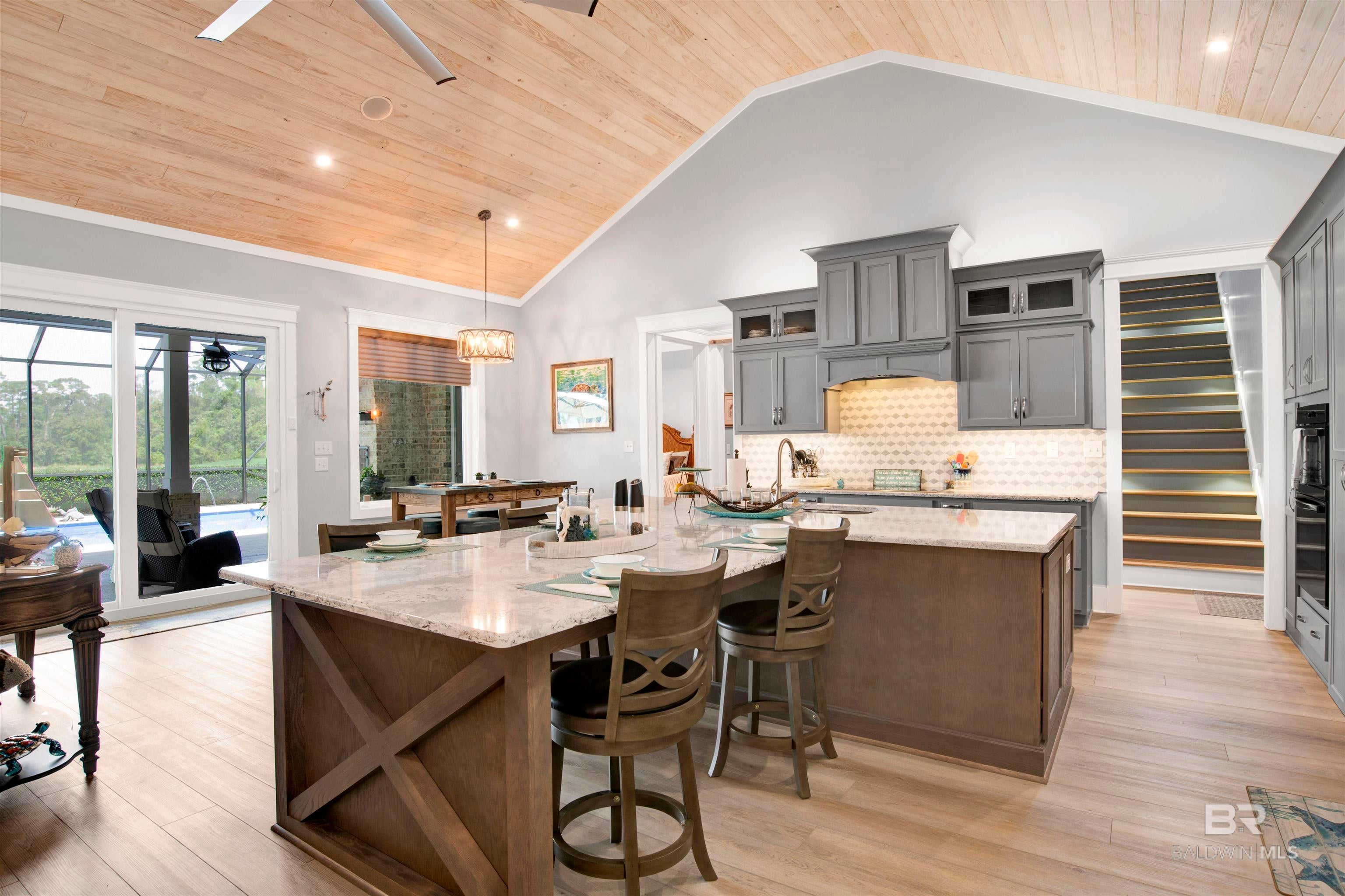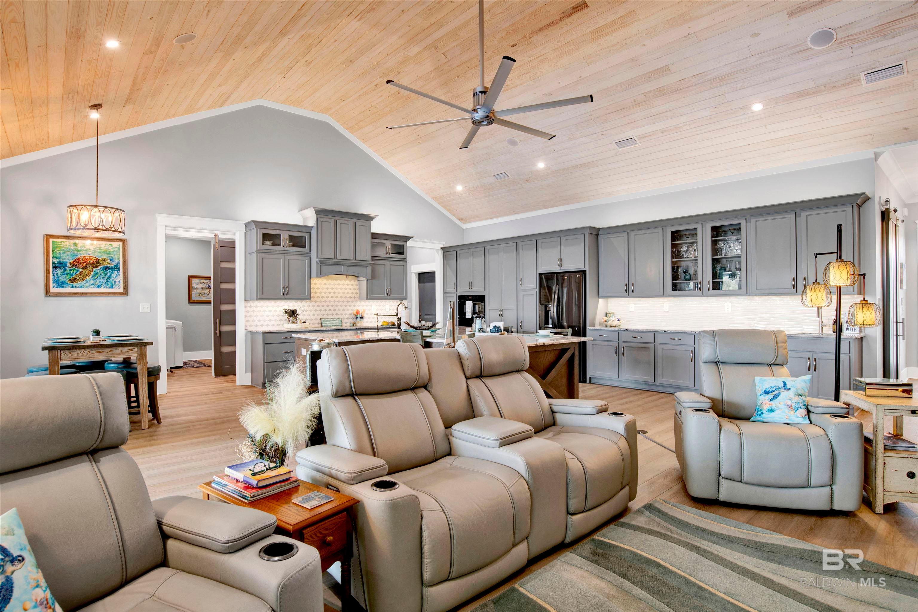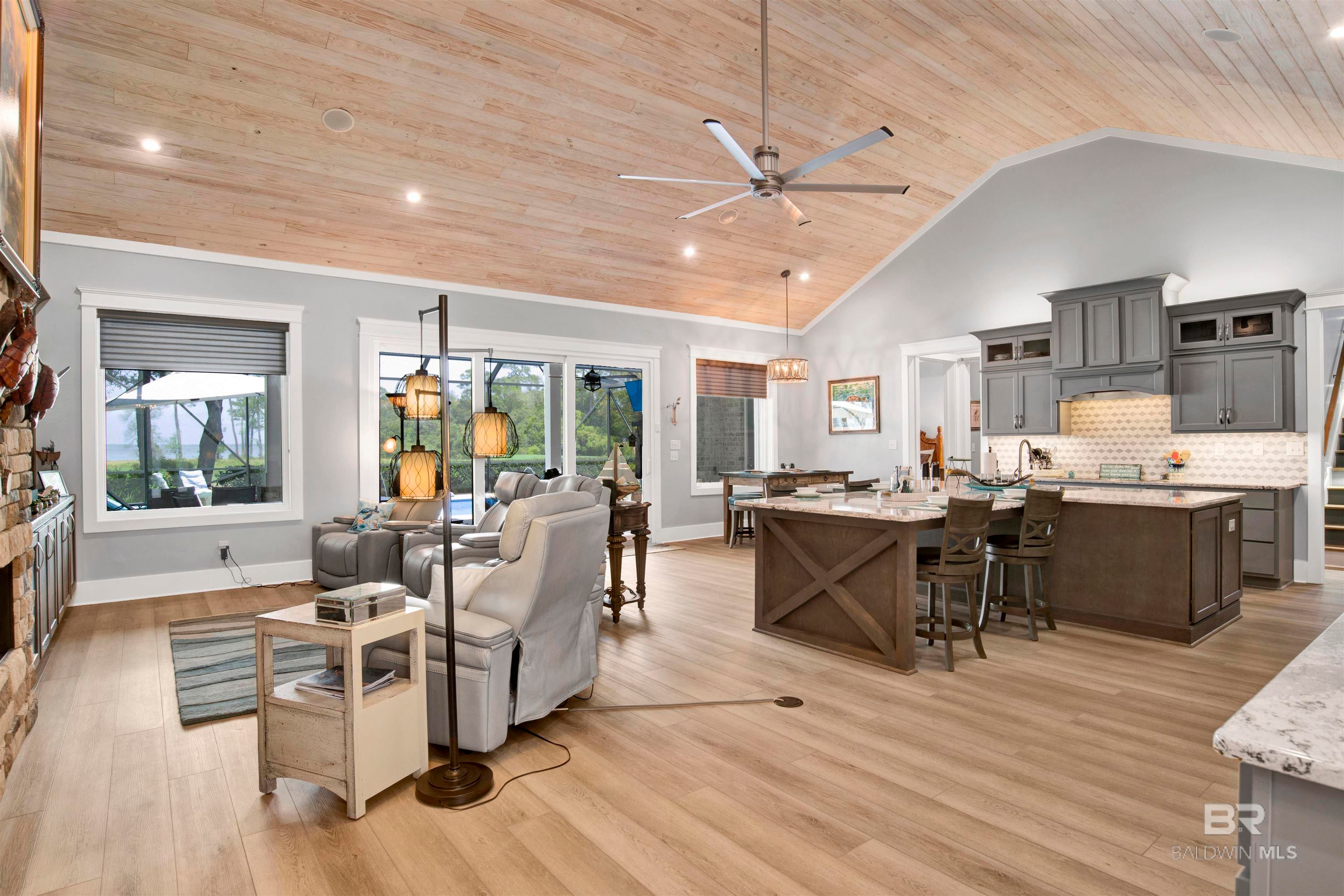 Welcome to an extraordinary custom-built luxury residence on one of the most sought-after streets in The Peninsula, where refined design meets breathtaking natural beauty. Perfectly positioned to capture sweeping golf course vistas and stunning 180-degree water views of Bon Secour Bay, this home offers an unmatched coastal lifestyle. Inside, every detail has been thoughtfully curated. The gourmet kitchen is a true centerpiece, featuring elegant quartz countertops, premium stainless steel appliances, custom cabinetry, and an expansive walk-in pantry designed for both functionality and style. The open-concept layout flows effortlessly into spacious living and dining areas, ideal for entertaining or relaxing in comfort. This beautifully designed home includes 3 generously sized bedrooms, 3 full baths, and 2 half baths, along with a private office and a second living area that is perfect for guests, media space, or a quiet retreat. The primary suite provides a luxurious escape, complete with dual separate vanities, soaking tub, walk-in shower, large walk-in closet, serene views and a spa-like atmosphere. Step outside to your private resort-style oasis. The outdoor living area boasts a 16 x 32 in-ground saltwater pool enclosed within a screened lanai, an inviting outdoor fireplace, and a ThermoSpa hot tubcreating the ultimate setting for year-round enjoyment. With ample space for entertaining and soaking in the coastal breeze, this backyard is truly exceptional. Offering privacy, prestige, and access to world-class golf and amenities, this home is a rare opportunity to own in one of Gulf Shores premier gated communities. You have to see it to believe it! Experience luxury living at its finest. Buyer to verify all information during due diligence.