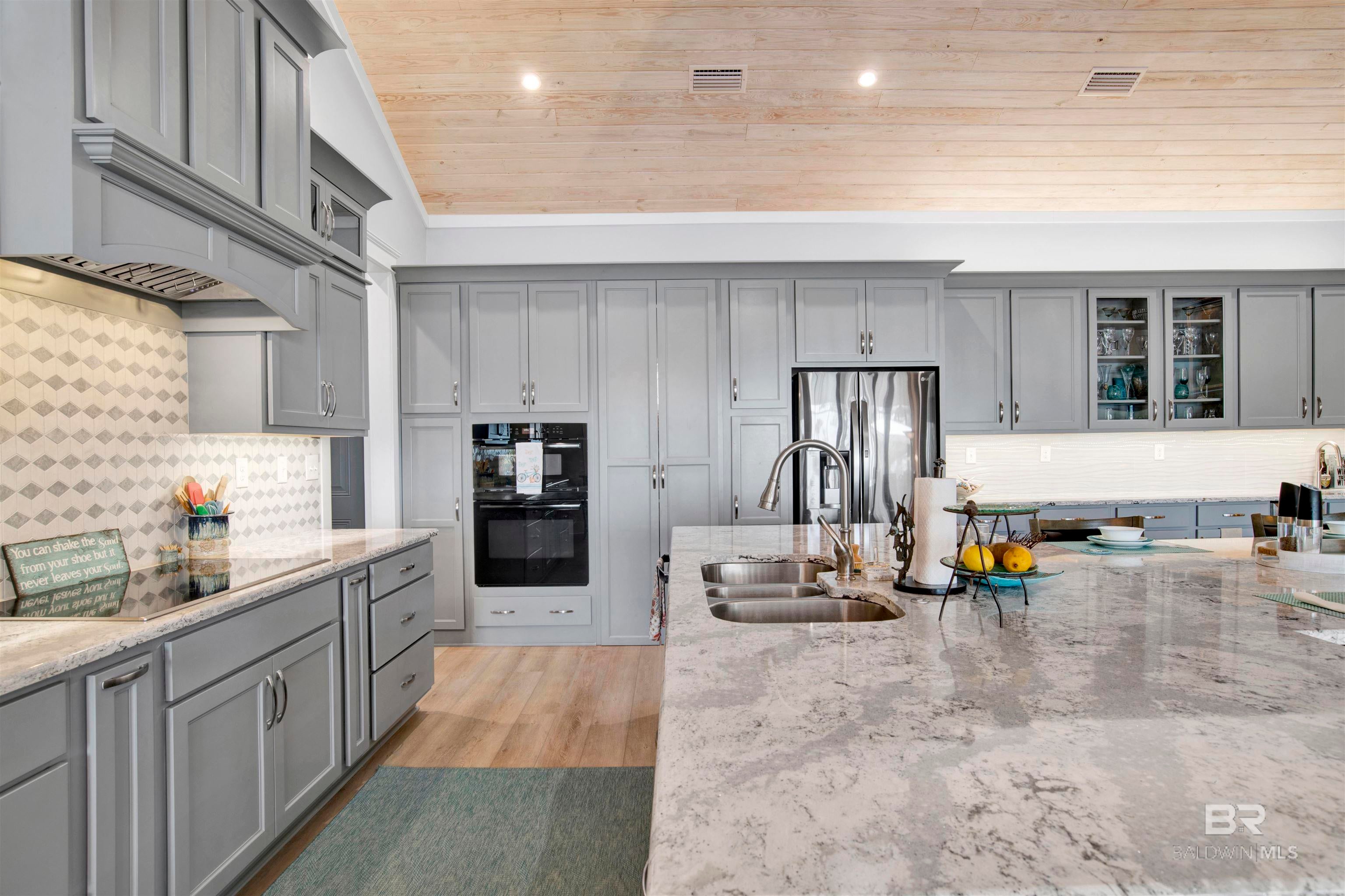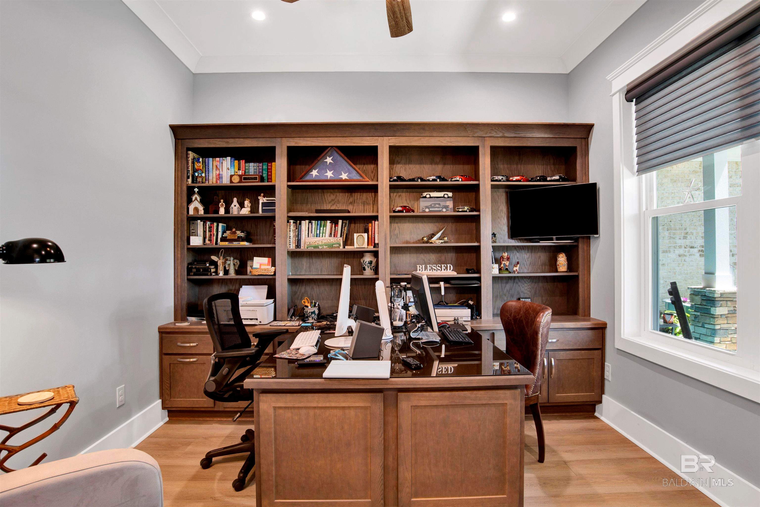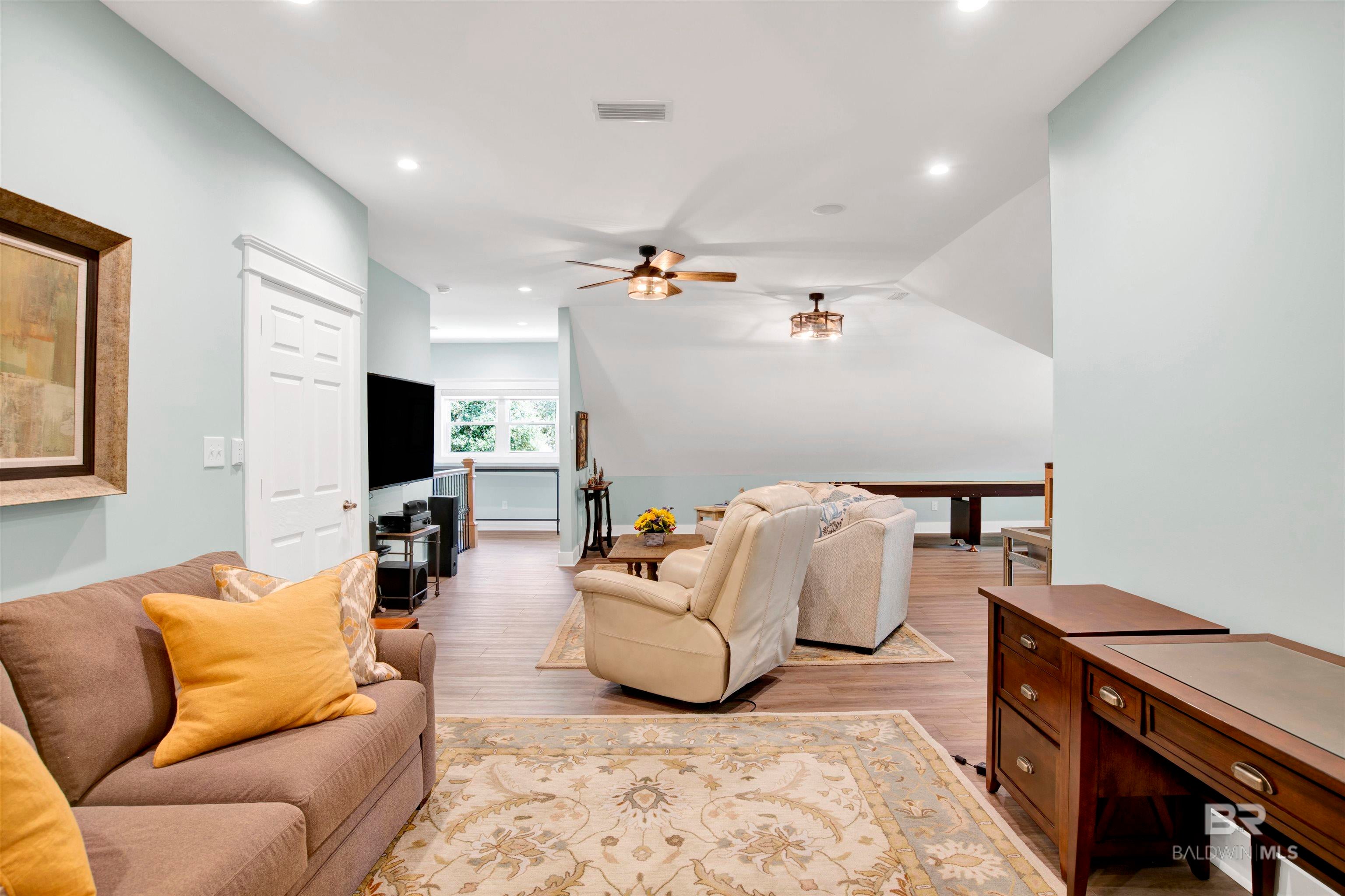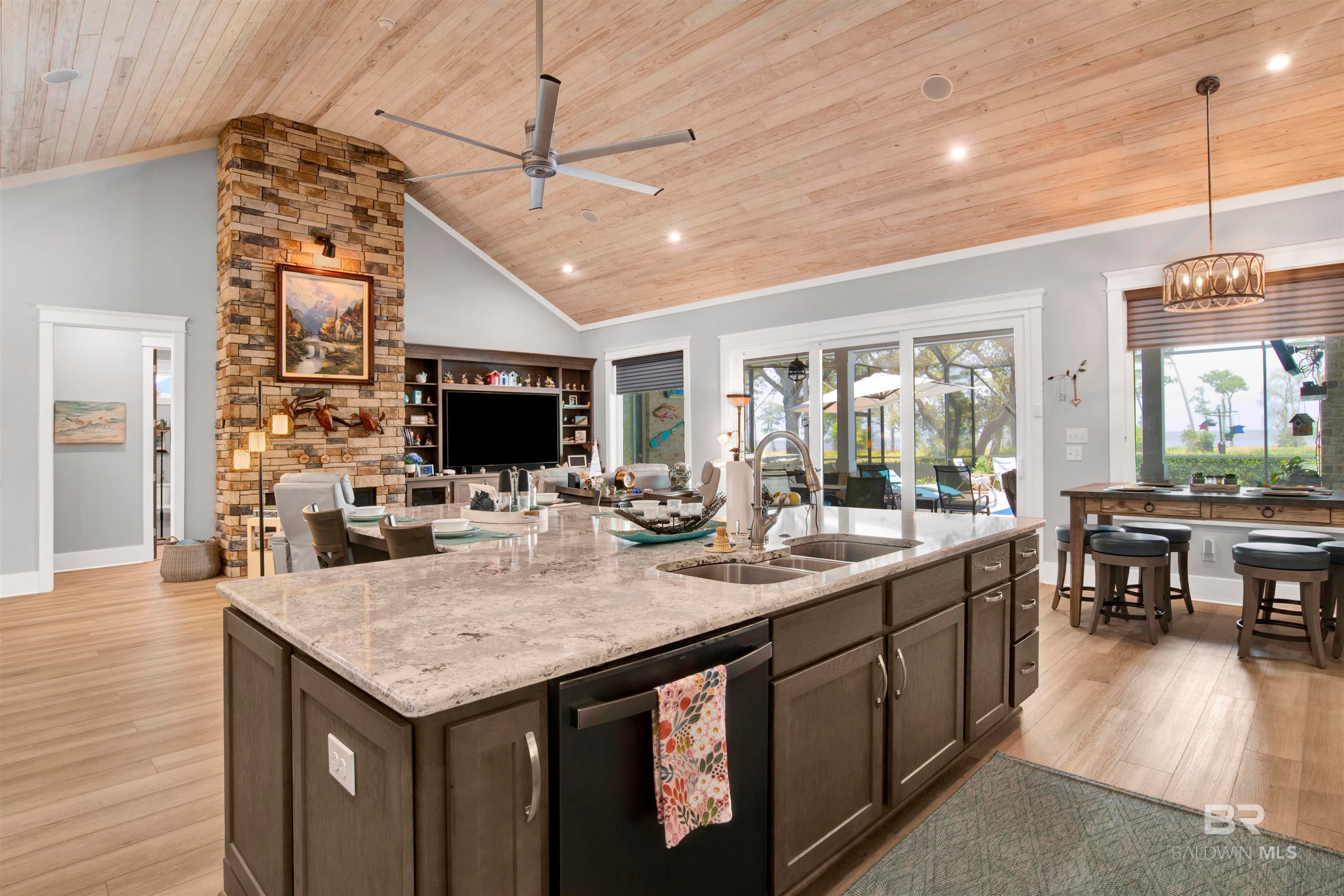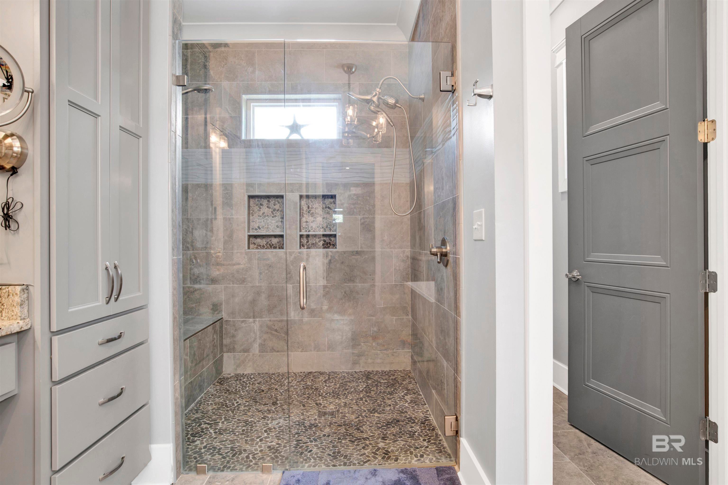 Welcome to an extraordinary custom-built luxury residence on one of the most sought-after streets in The Peninsula, where refined design meets breathtaking natural beauty. Perfectly positioned to capture sweeping golf course vistas and stunning 180-degree water views of Bon Secour Bay, this home offers an unmatched coastal lifestyle. Inside, every detail has been thoughtfully curated. The gourmet kitchen is a true centerpiece, featuring elegant quartz countertops, premium stainless steel appliances, custom cabinetry, and an expansive walk-in pantry designed for both functionality and style. The open-concept layout flows effortlessly into spacious living and dining areas, ideal for entertaining or relaxing in comfort. This beautifully designed home includes 3 generously sized bedrooms, 3 full baths, and 2 half baths, along with a private office and a second living area that is perfect for guests, media space, or a quiet retreat. The primary suite provides a luxurious escape, complete with dual separate vanities, soaking tub, walk-in shower, large walk-in closet, serene views and a spa-like atmosphere. Step outside to your private resort-style oasis. The outdoor living area boasts a 16 x 32 in-ground saltwater pool enclosed within a screened lanai, an inviting outdoor fireplace, and a ThermoSpa hot tubcreating the ultimate setting for year-round enjoyment. With ample space for entertaining and soaking in the coastal breeze, this backyard is truly exceptional. Offering privacy, prestige, and access to world-class golf and amenities, this home is a rare opportunity to own in one of Gulf Shores premier gated communities. You have to see it to believe it! Experience luxury living at its finest. Buyer to verify all information during due diligence.