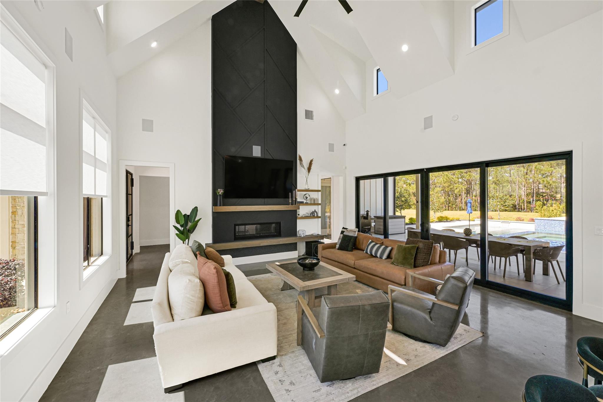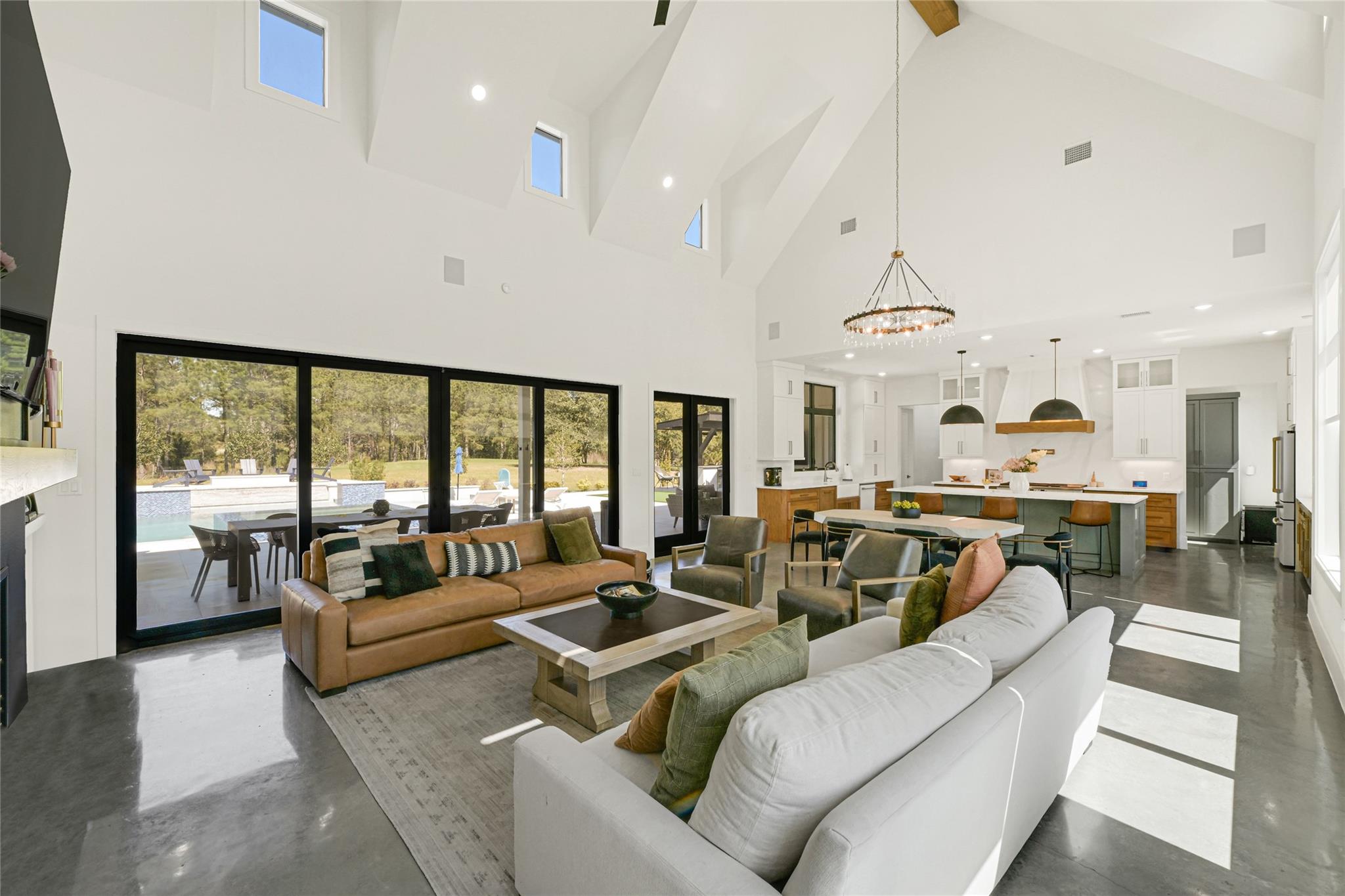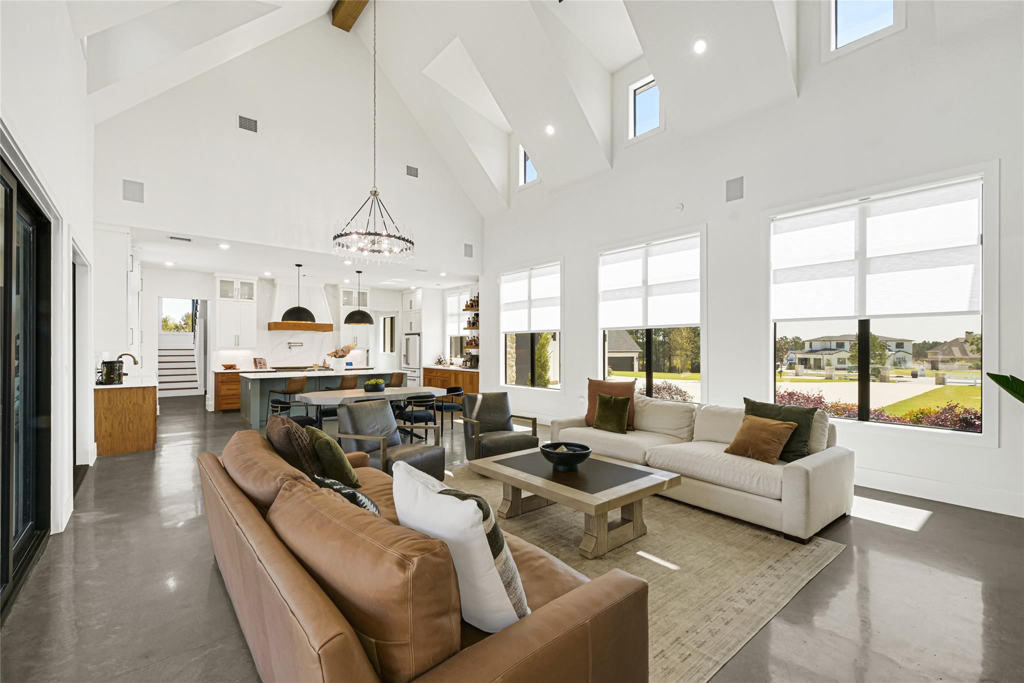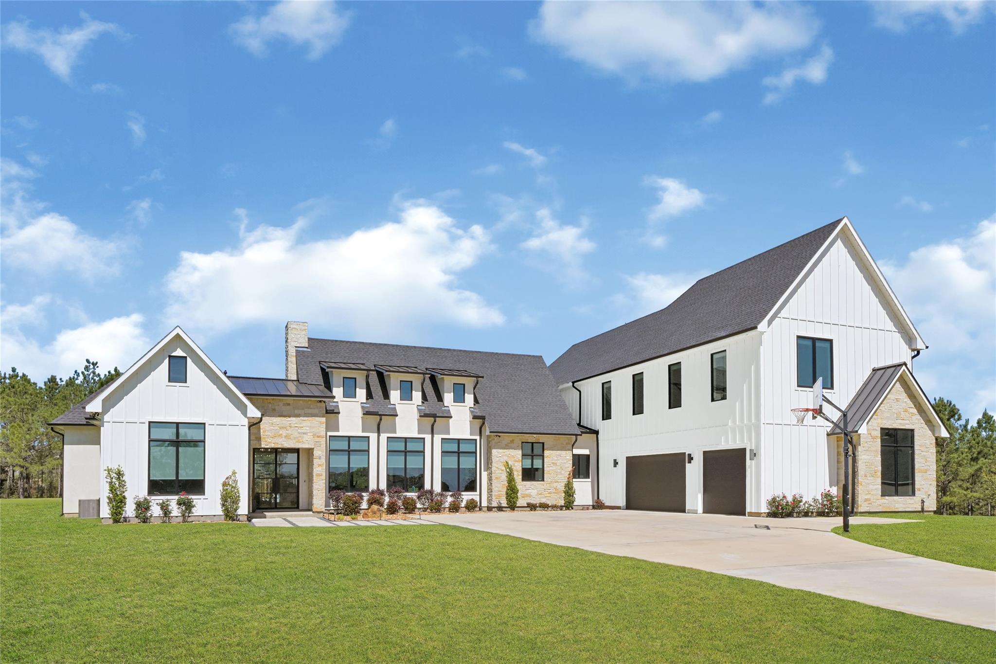 Modern Farmhouse Elegance meets Resort-Style Living on 1.27 acres in the Gated Community of Grand Lake Estates. Stunning Custom 4-bed, 3-bath home w/ Light-Filled Interiors feature Seamless Living, Dining & Kitchen areas.