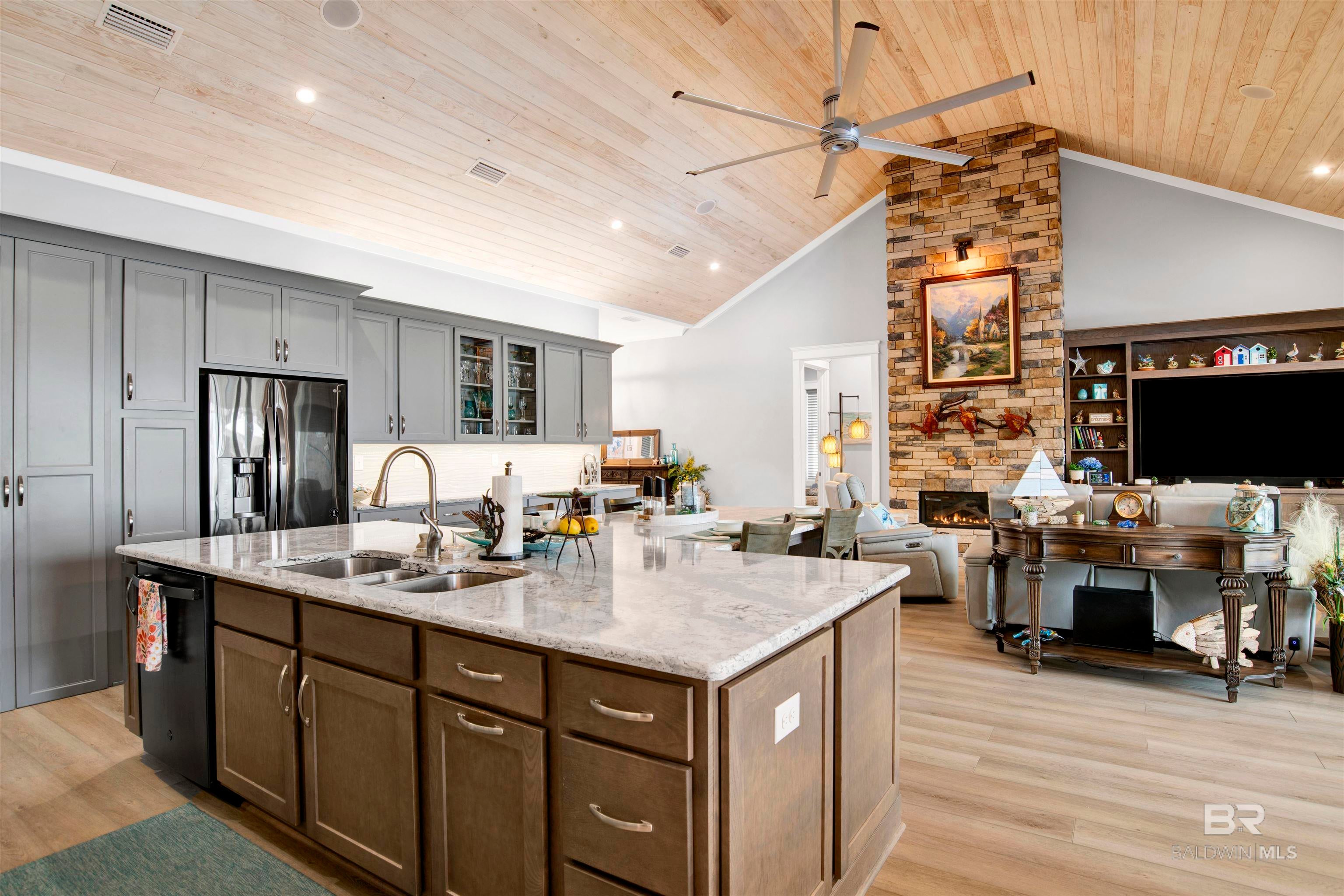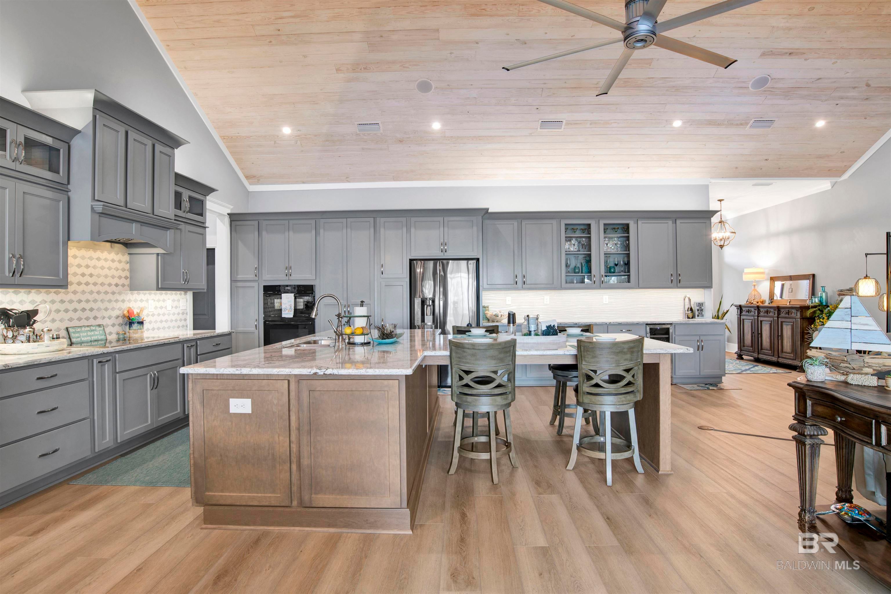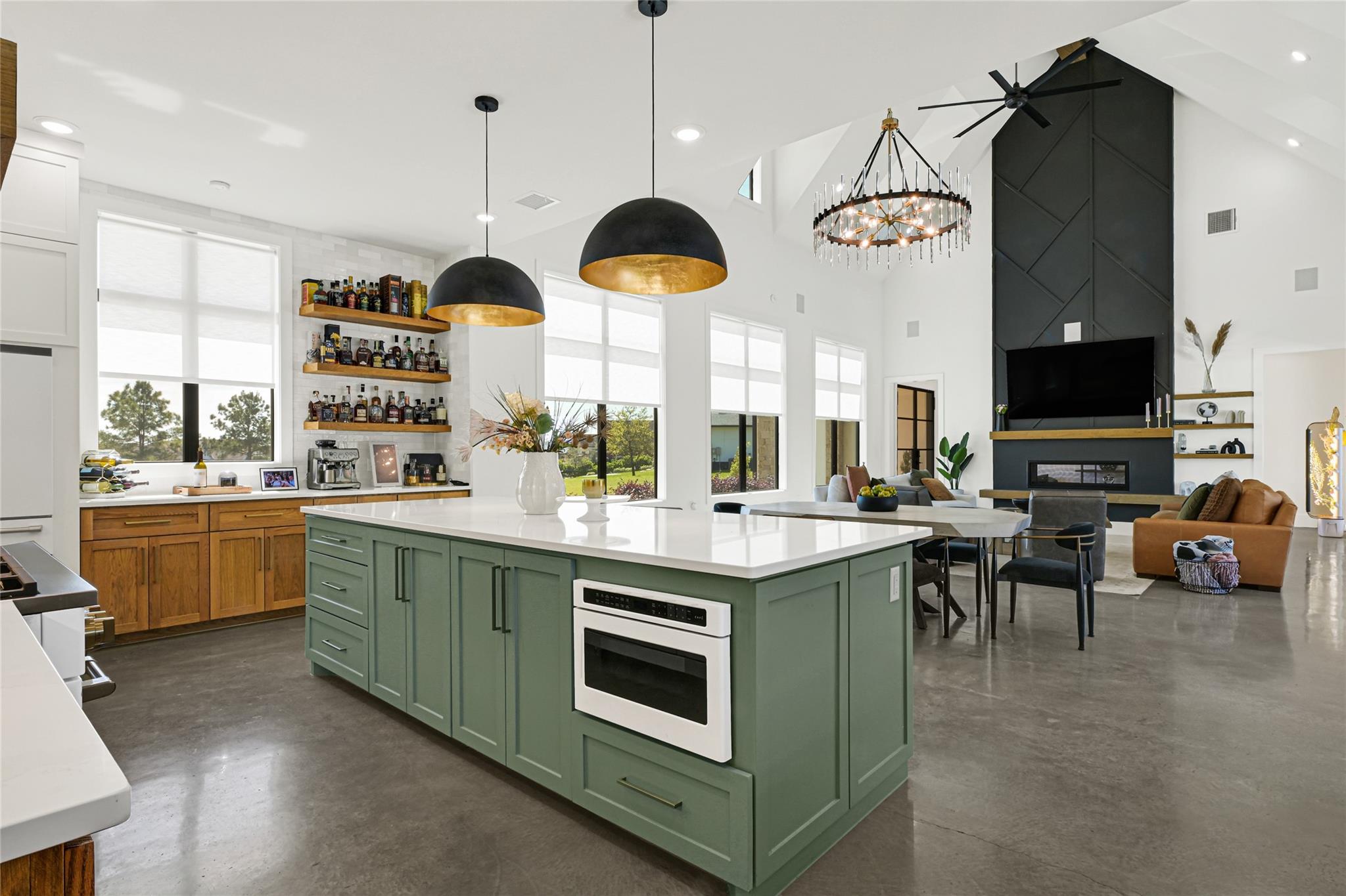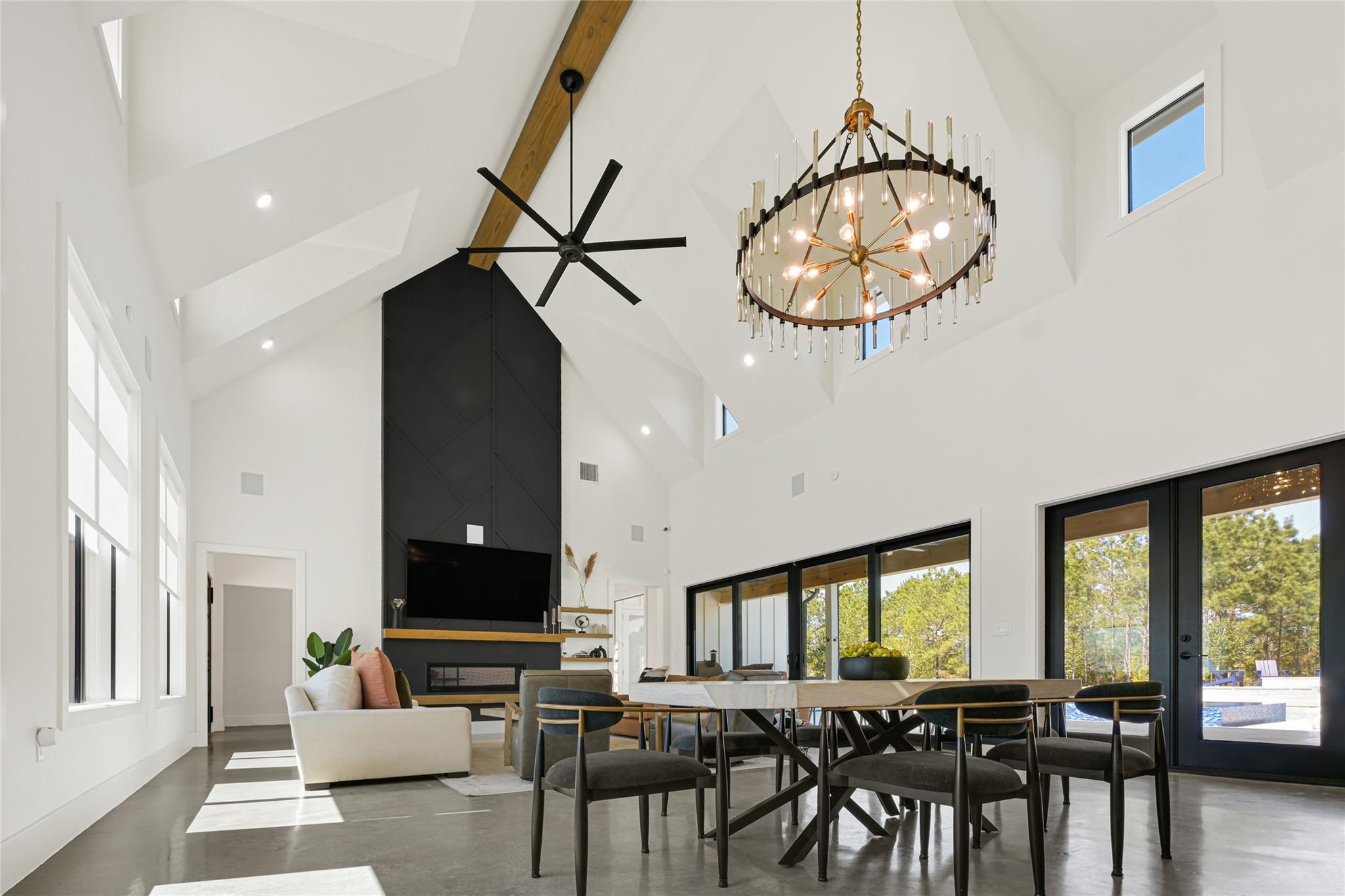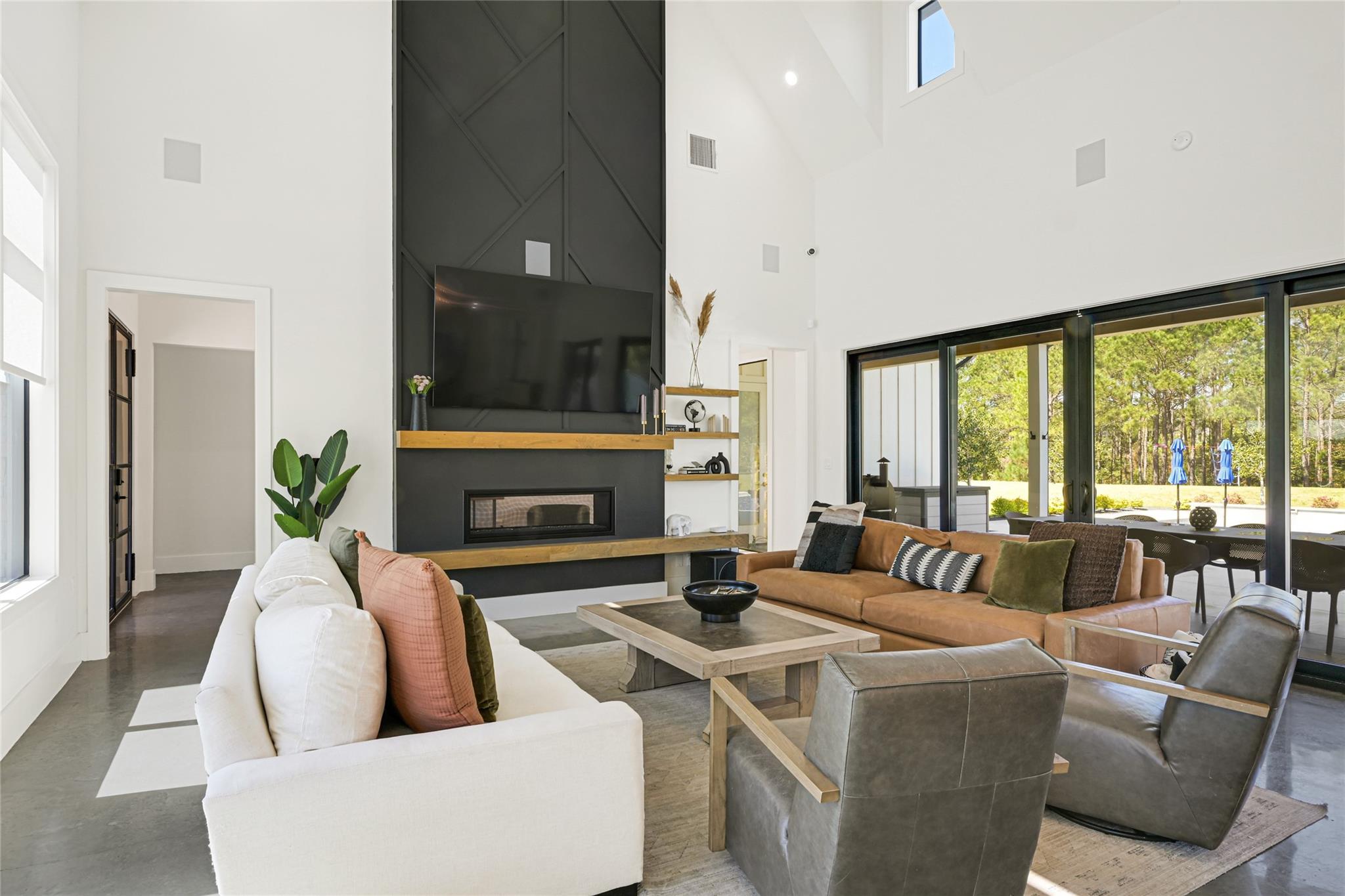 Modern Farmhouse Elegance meets Resort-Style Living on 1.27 acres in the Gated Community of Grand Lake Estates. Stunning Custom 4-bed, 3-bath home w/ Light-Filled Interiors feature Seamless Living, Dining & Kitchen areas.