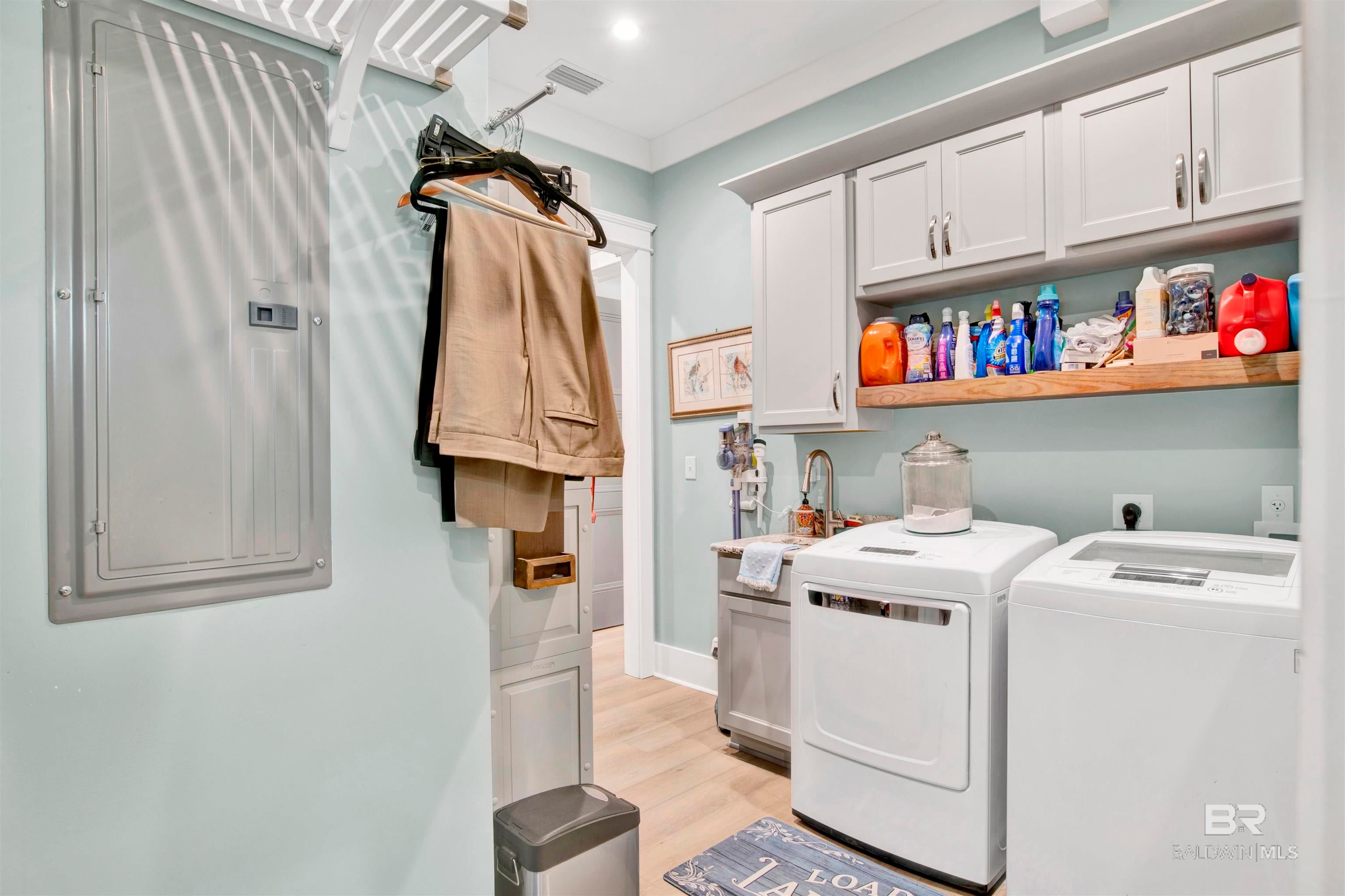Welcome to an extraordinary custom-built luxury residence on one of the most sought-after streets in The Peninsula, where refined design meets breathtaking natural beauty. Perfectly positioned to capture sweeping golf course vistas and stunning 180-degree water views of Bon Secour Bay, this home offers an unmatched coastal lifestyle. Inside, every detail has been thoughtfully curated.