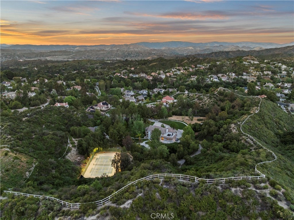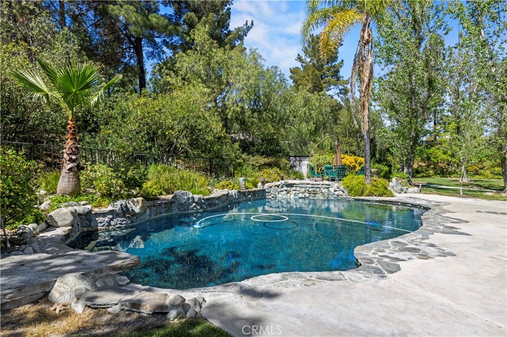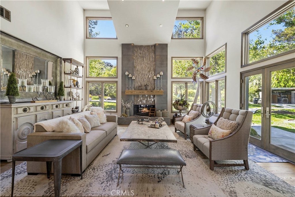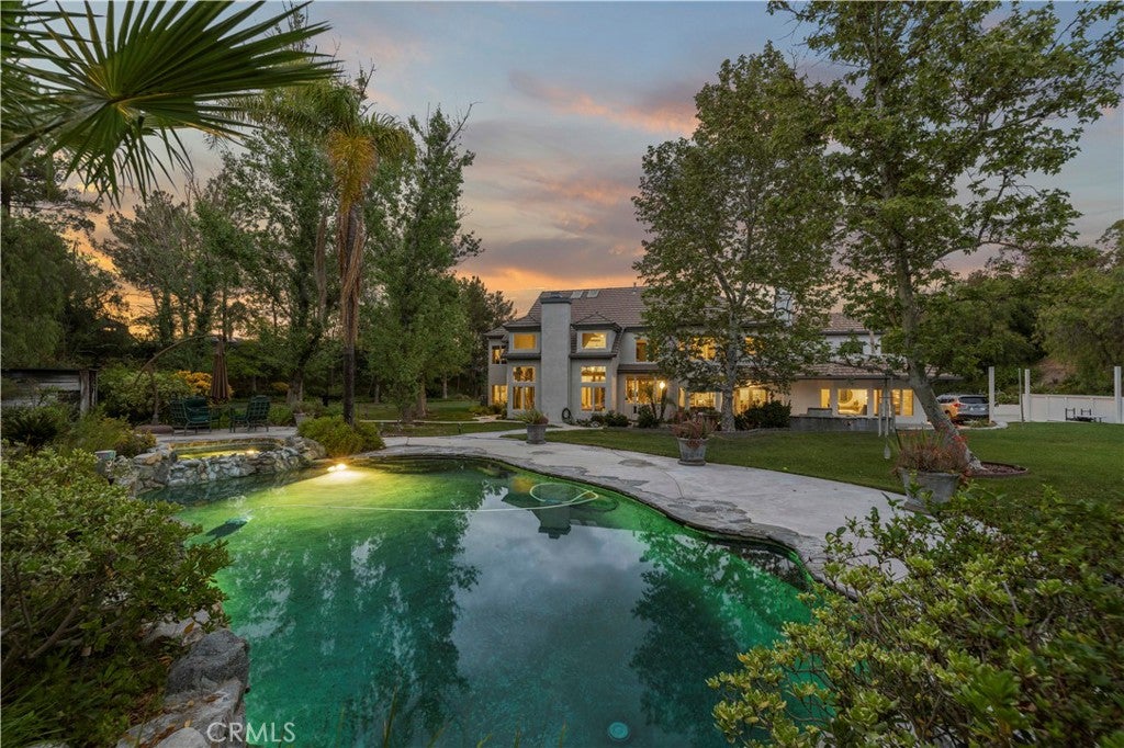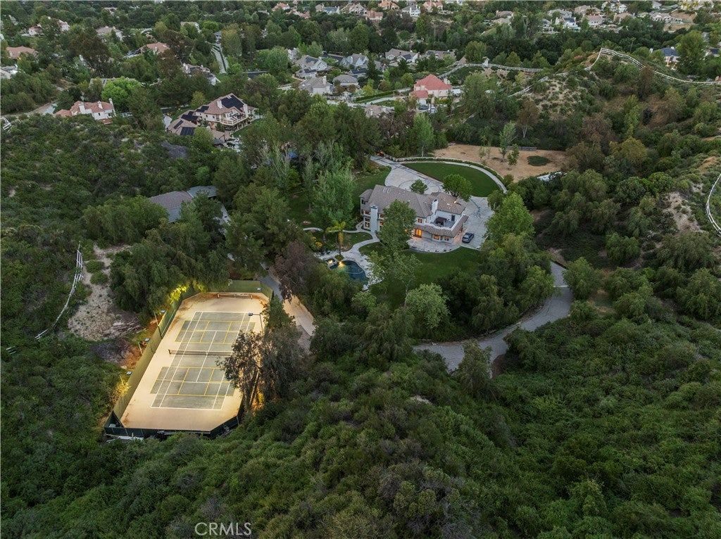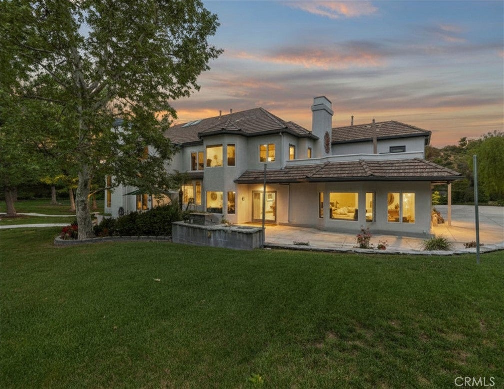 Welcome to your dream home in the prestigious Sand Canyon neighborhood! This California contemporary estate offers 5,134 sq ft of living space on a nearly 9-acre private and fully fenced property with serene mountain views. The gated drive leads to a grand circular driveway featuring a centerpiece fountain. A gorgeous custom metal front door opens into a sun-drenched great room with soaring ceilings, oversized windows, double doors leading outside, and a stunning custom statement fireplace, perfect for gathering or effortless entertaining. The formal dining room flows seamlessly from the main living space. The main level includes two well-appointed ensuite bedrooms with custom built-ins. The chefs kitchen is a true showpiece with a soapstone island, natural stone countertops, and custom cabinetry all opening seamlessly to the breakfast nook and family room. Enjoy the 6 burner Dacor range, double ovens, dual refrigerator/freezer, steamer and generous pantry storage. The expansive family room features exposed beams, a custom feature wall, an architectural fireplace with extended hearth, and a bay window seat. Upstairs, an airy loft overlooks the great room. The primary suite is a private sanctuary with a fireplace, balcony views, and a sun patio with above-ground spa. A generous walk-in closet leads to a flexible bonus room. The ensuite bath offers dual vanities, a separate soaking tub, steam shower with rainfall feature and towel warmer, plus a laundry chute for added convenience. There are three additional bedrooms on the second floor, including one en-suite. Outside, enjoy a sprawling lawn, resort-style pool and waterfall spa, built-in BBQ, and a sport court lined for basketball and pickleball. A detached workshop/5-car garage, RV electrical hookup, and generator system (with potential backup to the main house) complete this exceptional property. Whether youre dreaming of unforgettable gatherings, space for hobbies and toys, or a true retreat surrounded by nature, this property delivers a rare lifestyle in an exclusive neighborhood!