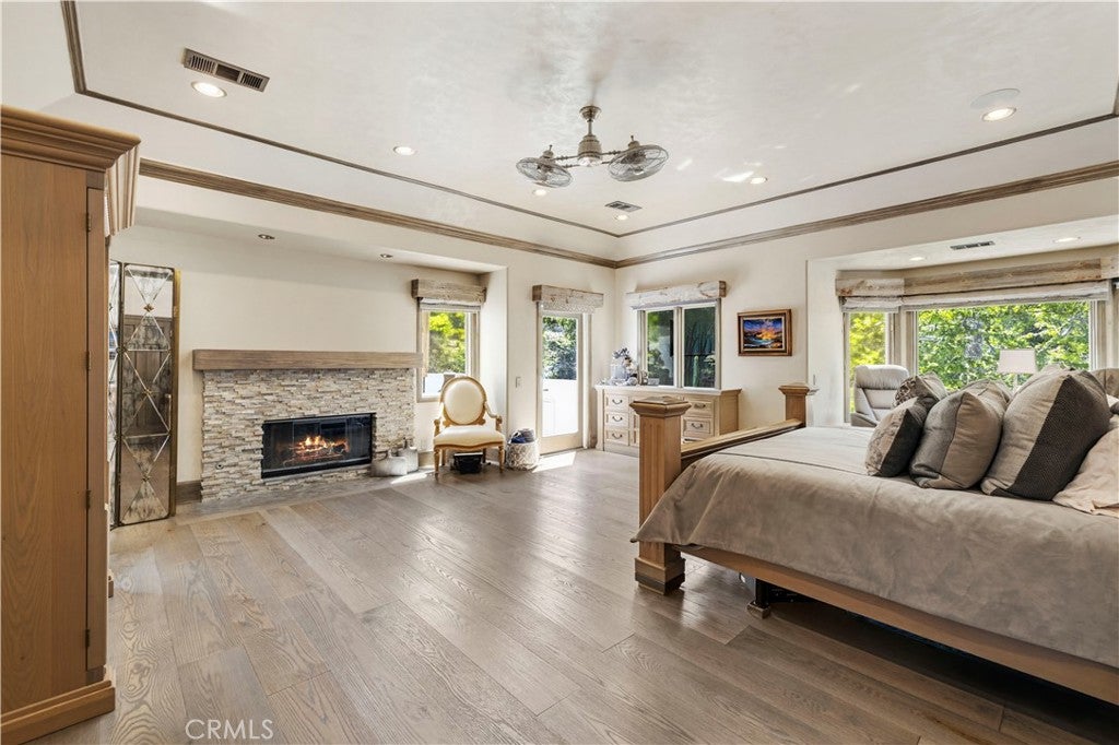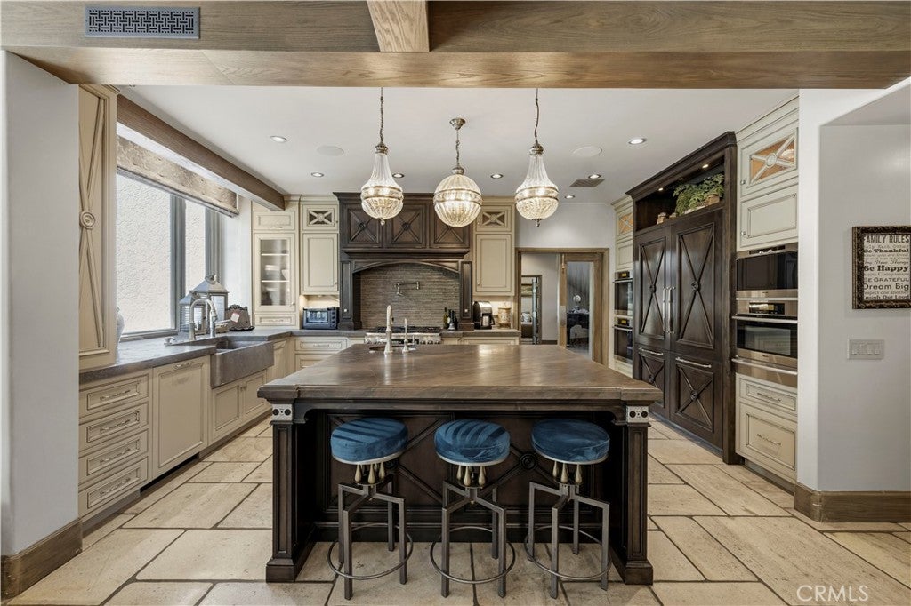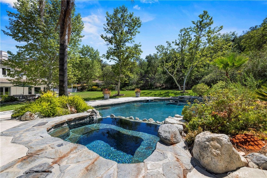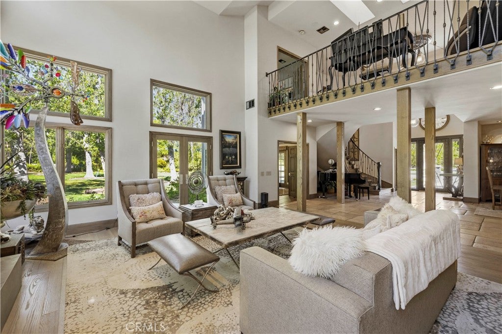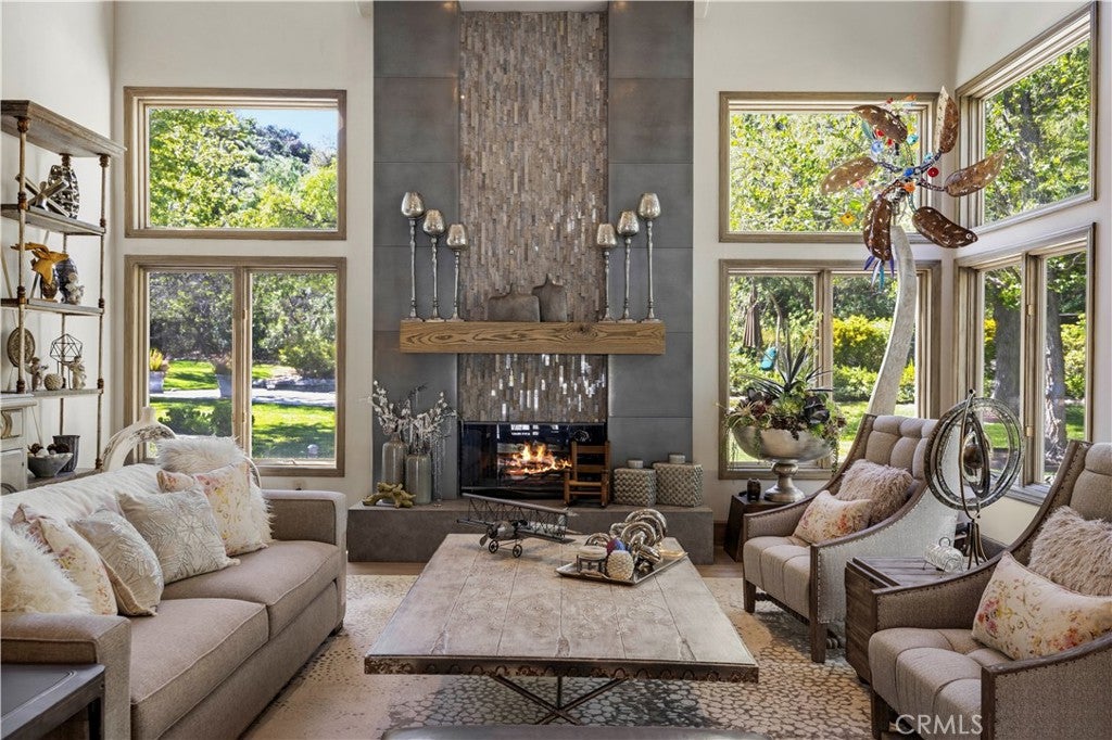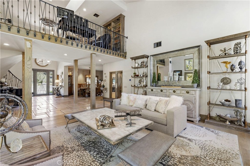 Welcome to your dream home in the prestigious Sand Canyon neighborhood! This California contemporary estate offers 5,134 sq ft of living space on a nearly 9-acre private and fully fenced property with serene mountain views. The gated drive leads to a grand circular driveway featuring a centerpiece fountain. A gorgeous custom metal front door opens into a sun-drenched great room with soaring ceilings, oversized windows, double doors leading outside, and a stunning custom statement fireplace, perfect for gathering or effortless entertaining. The formal dining room flows seamlessly from the main living space. The main level includes two well-appointed ensuite bedrooms with custom built-ins. The chefs kitchen is a true showpiece with a soapstone island, natural stone countertops, and custom cabinetry all opening seamlessly to the breakfast nook and family room. Enjoy the 6 burner Dacor range, double ovens, dual refrigerator/freezer, steamer and generous pantry storage. The expansive family room features exposed beams, a custom feature wall, an architectural fireplace with extended hearth, and a bay window seat. Upstairs, an airy loft overlooks the great room. The primary suite is a private sanctuary with a fireplace, balcony views, and a sun patio with above-ground spa. A generous walk-in closet leads to a flexible bonus room. The ensuite bath offers dual vanities, a separate soaking tub, steam shower with rainfall feature and towel warmer, plus a laundry chute for added convenience. There are three additional bedrooms on the second floor, including one en-suite. Outside, enjoy a sprawling lawn, resort-style pool and waterfall spa, built-in BBQ, and a sport court lined for basketball and pickleball. A detached workshop/5-car garage, RV electrical hookup, and generator system (with potential backup to the main house) complete this exceptional property. Whether youre dreaming of unforgettable gatherings, space for hobbies and toys, or a true retreat surrounded by nature, this property delivers a rare lifestyle in an exclusive neighborhood!