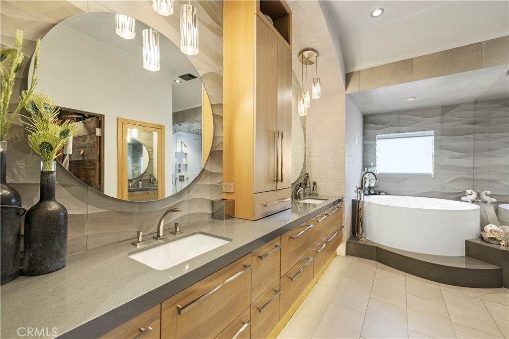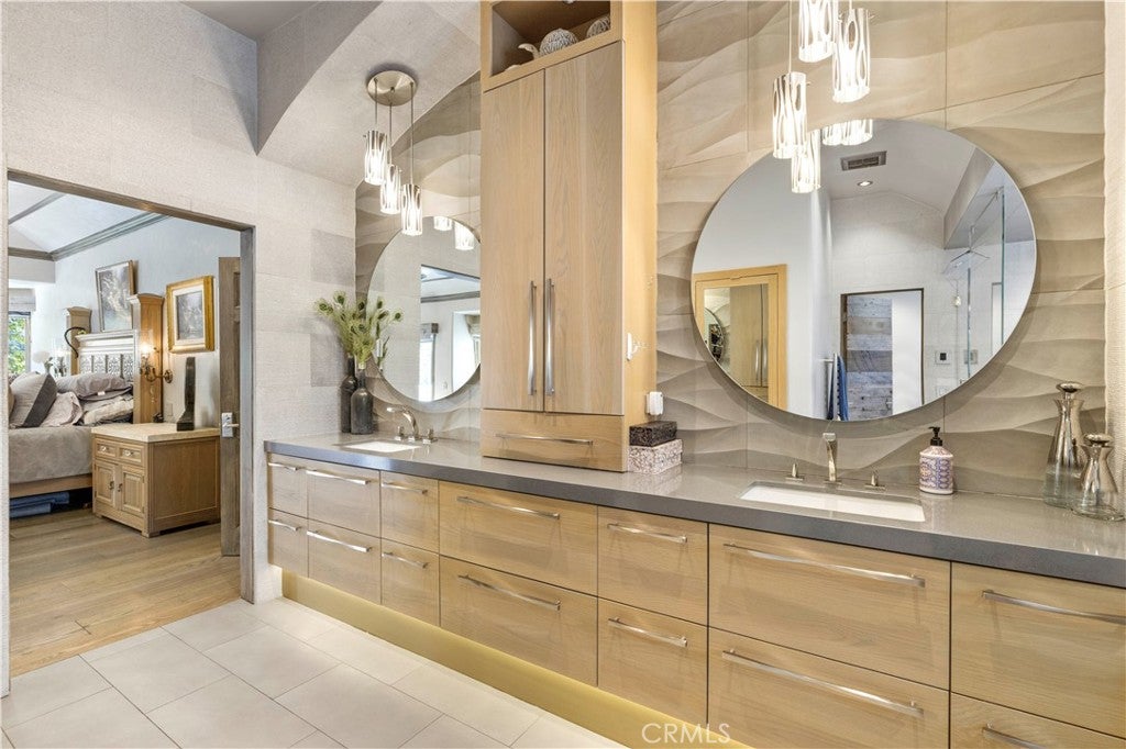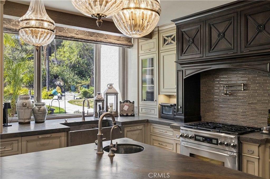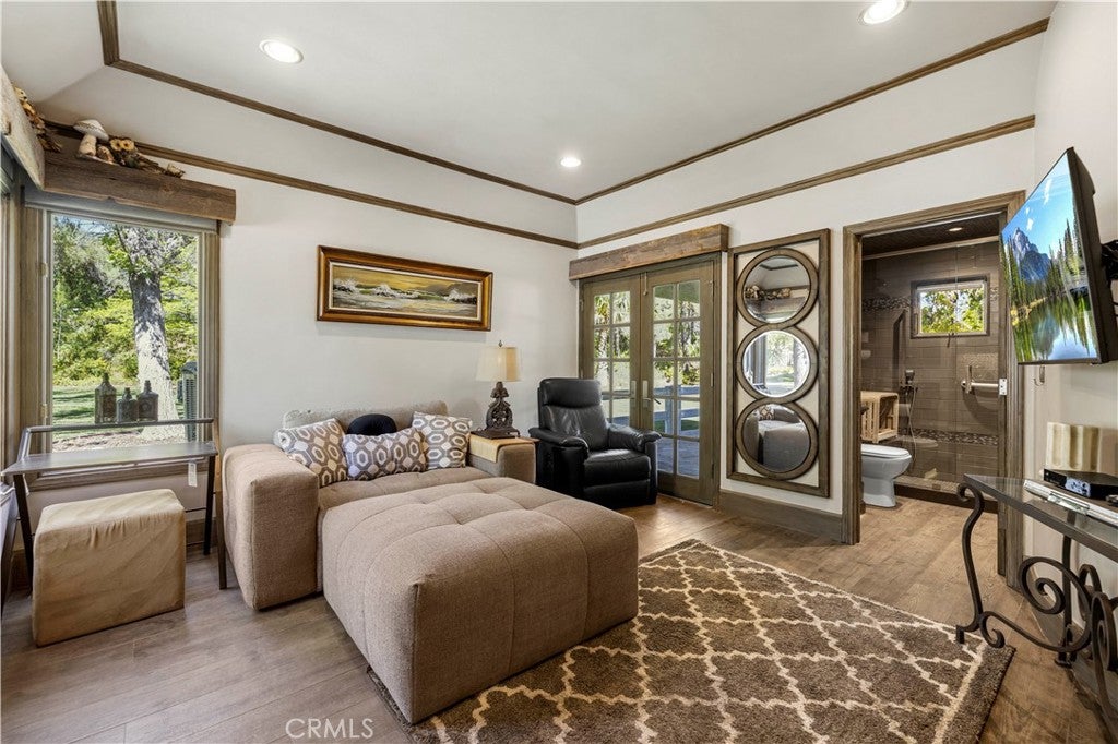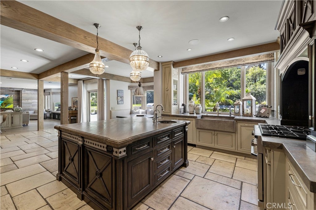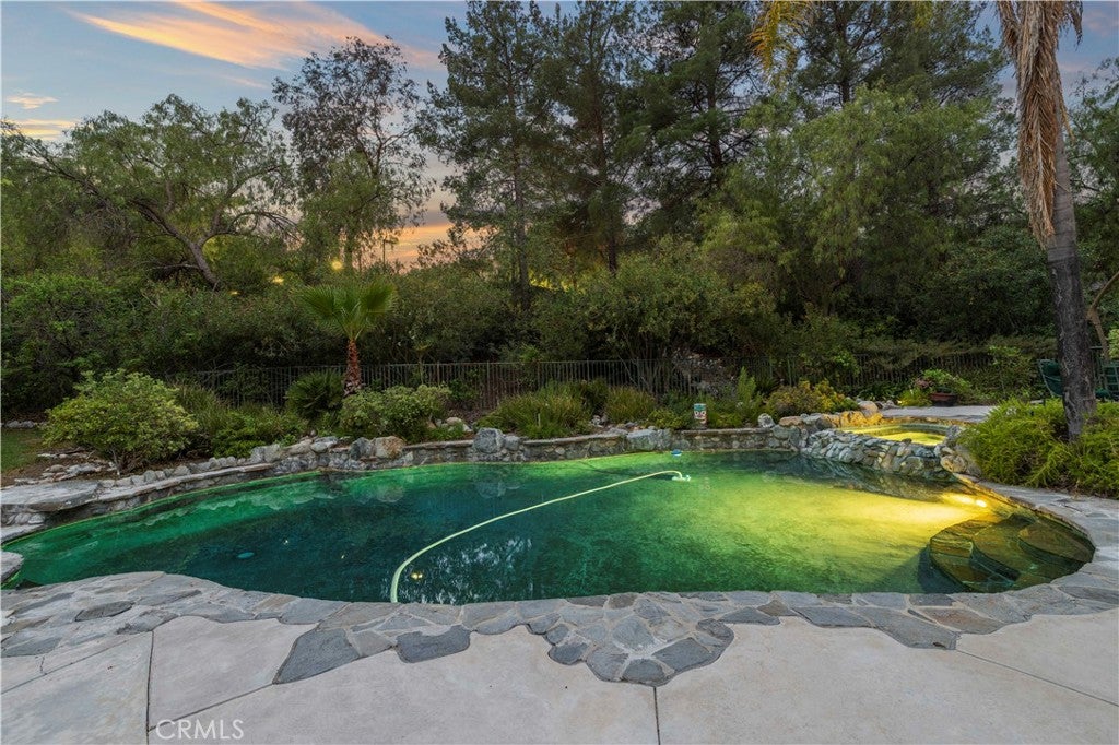 Welcome to your dream home in the prestigious Sand Canyon neighborhood! This California contemporary estate offers 5,134 sq ft of living space on a nearly 9-acre private and fully fenced property with serene mountain views. The gated drive leads to a grand circular driveway featuring a centerpiece fountain. A gorgeous custom metal front door opens into a sun-drenched great room with soaring ceilings, oversized windows, double doors leading outside, and a stunning custom statement fireplace, perfect for gathering or effortless entertaining. The formal dining room flows seamlessly from the main living space. The main level includes two well-appointed ensuite bedrooms with custom built-ins. The chefs kitchen is a true showpiece with a soapstone island, natural stone countertops, and custom cabinetry all opening seamlessly to the breakfast nook and family room. Enjoy the 6 burner Dacor range, double ovens, dual refrigerator/freezer, steamer and generous pantry storage. The expansive family room features exposed beams, a custom feature wall, an architectural fireplace with extended hearth, and a bay window seat. Upstairs, an airy loft overlooks the great room. The primary suite is a private sanctuary with a fireplace, balcony views, and a sun patio with above-ground spa. A generous walk-in closet leads to a flexible bonus room. The ensuite bath offers dual vanities, a separate soaking tub, steam shower with rainfall feature and towel warmer, plus a laundry chute for added convenience. There are three additional bedrooms on the second floor, including one en-suite. Outside, enjoy a sprawling lawn, resort-style pool and waterfall spa, built-in BBQ, and a sport court lined for basketball and pickleball. A detached workshop/5-car garage, RV electrical hookup, and generator system (with potential backup to the main house) complete this exceptional property. Whether youre dreaming of unforgettable gatherings, space for hobbies and toys, or a true retreat surrounded by nature, this property delivers a rare lifestyle in an exclusive neighborhood!