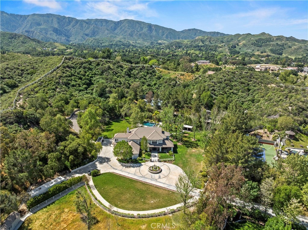 Welcome to your dream home in the prestigious Sand Canyon neighborhood! This California contemporary estate offers 5,134 sq ft of living space on a nearly 9-acre private and fully fenced property with serene mountain views. The gated drive leads to a grand circular driveway featuring a centerpiece fountain.