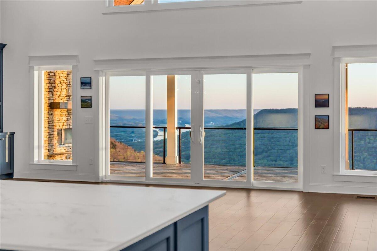Welcome to 155 Riverview Court, a masterfully crafted 7,213-square-foot mountain estate set within the prestigious gated enclave of Jasper Highlands. Privately nestled on nearly four acres at the end of a quiet cul-de-sac, this exceptional residence is introduced by a picturesque, maple-lined drive--an elegant approach that sets the tone for the refinement and serenity that await. Here, timeless design and modern sophistication converge against a backdrop of sweeping Tennessee mountain and river vistas.Thoughtfully designed to balance grand-scale entertaining with effortless everyday living, this five-bedroom, four-and-a-half-bath residence offers a seamless flow of beautifully curated spaces. The gourmet kitchen is a statement of both form and function, featuring panel-ready appliances by Sub-Zero, Caf, and Asko, a professional-grade gas range with double ovens, striking Dekton surfaces, and bespoke soft-close cabinetry. Just beyond, a spacious walk-in pantry serves as both a functional extension and a hidden luxury, complete with a built-in Miele coffee system and instant hot water.The primary suite is a sanctuary unto itself--an intimate retreat designed for comfort and indulgence. Automated blinds frame the surrounding landscape, while the spa-inspired bathroom features an oversized walk-in double shower with refined finishes. The expansive wardrobe suite, appointed with integrated cabinetry and custom dressers, offers both elegance and organization at the highest level.Throughout the home, advanced systems and thoughtful enhancements elevate the living experience, including five HVAC zones, a dedicated safe room, a tankless water heater, and a Moen Flo smart water monitoring system. A smart driveway alert system seamlessly integrates with the homes security, providing both convenience and peace of mind.The walk-out lower level transforms into an entertainers haven, where every detail has been considered-- from the 400-bottle wine cellar to the private theater and expansive recreation space complete with lounge, game area, and bar. This level is designed to host, unwind, and impress in equal measure.Outdoor living is nothing short of extraordinary. A private hot tub and outdoor shower create a spa-like ambiance, while two dramatic, see-through fireplaces with one being double-sided, elegantly connect indoor and outdoor gathering spaces. Perched along the bluff, a cliffside fire pit offers a breathtaking vantage point to take in panoramic views of the surrounding mountains and the Tennessee River--an unforgettable setting for both quiet evenings and memorable gatherings.As a resident of Jasper Highlands, youll enjoy access to an exceptional array of resort-style amenities, including pools, a mountaintop restaurant, parks, dog parks, a fishing pond, waterfalls, and over nine miles of scenic trails. This is more than a home--it is a lifestyle defined by privacy, beauty, and elevated mountain living.