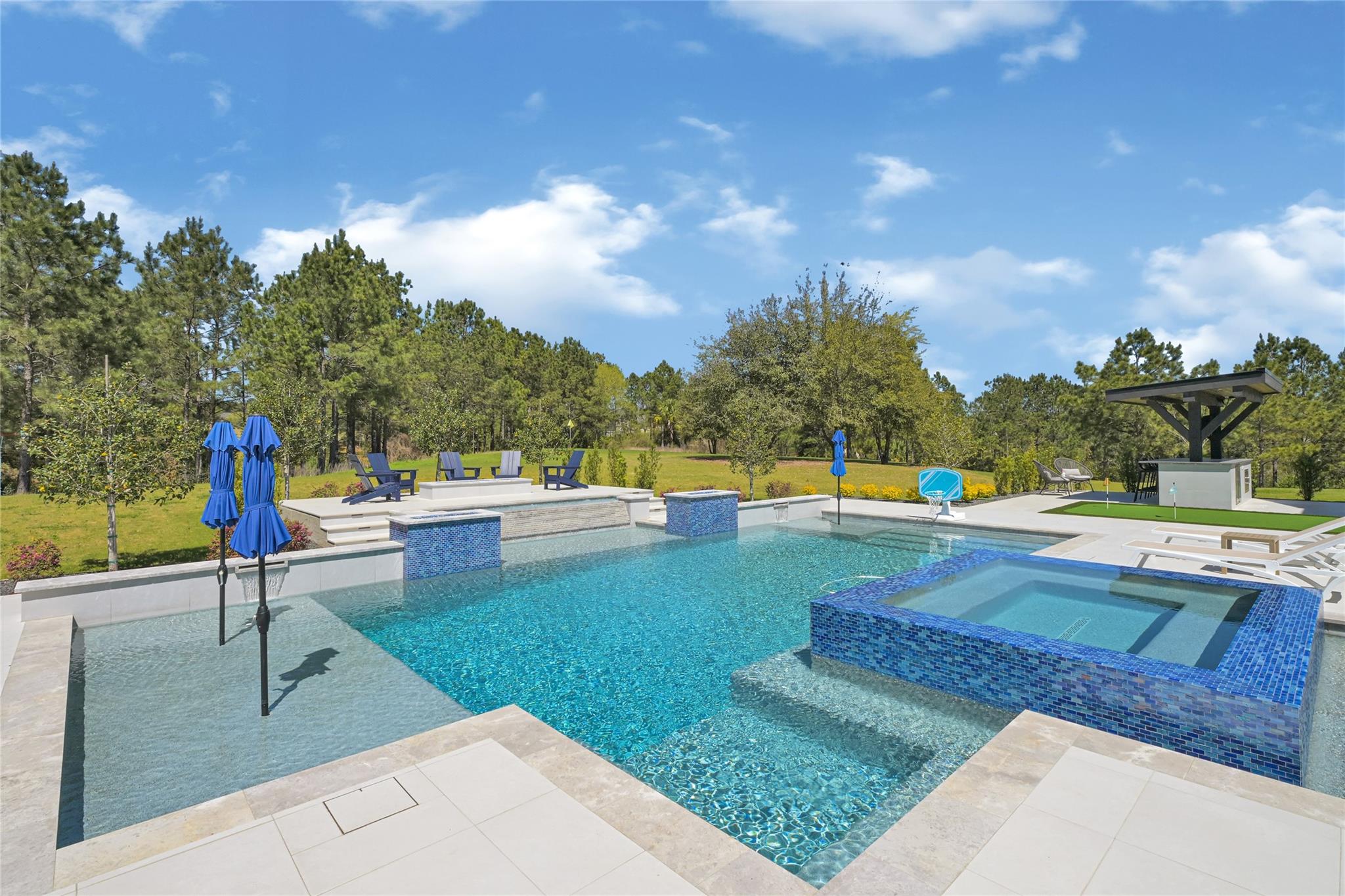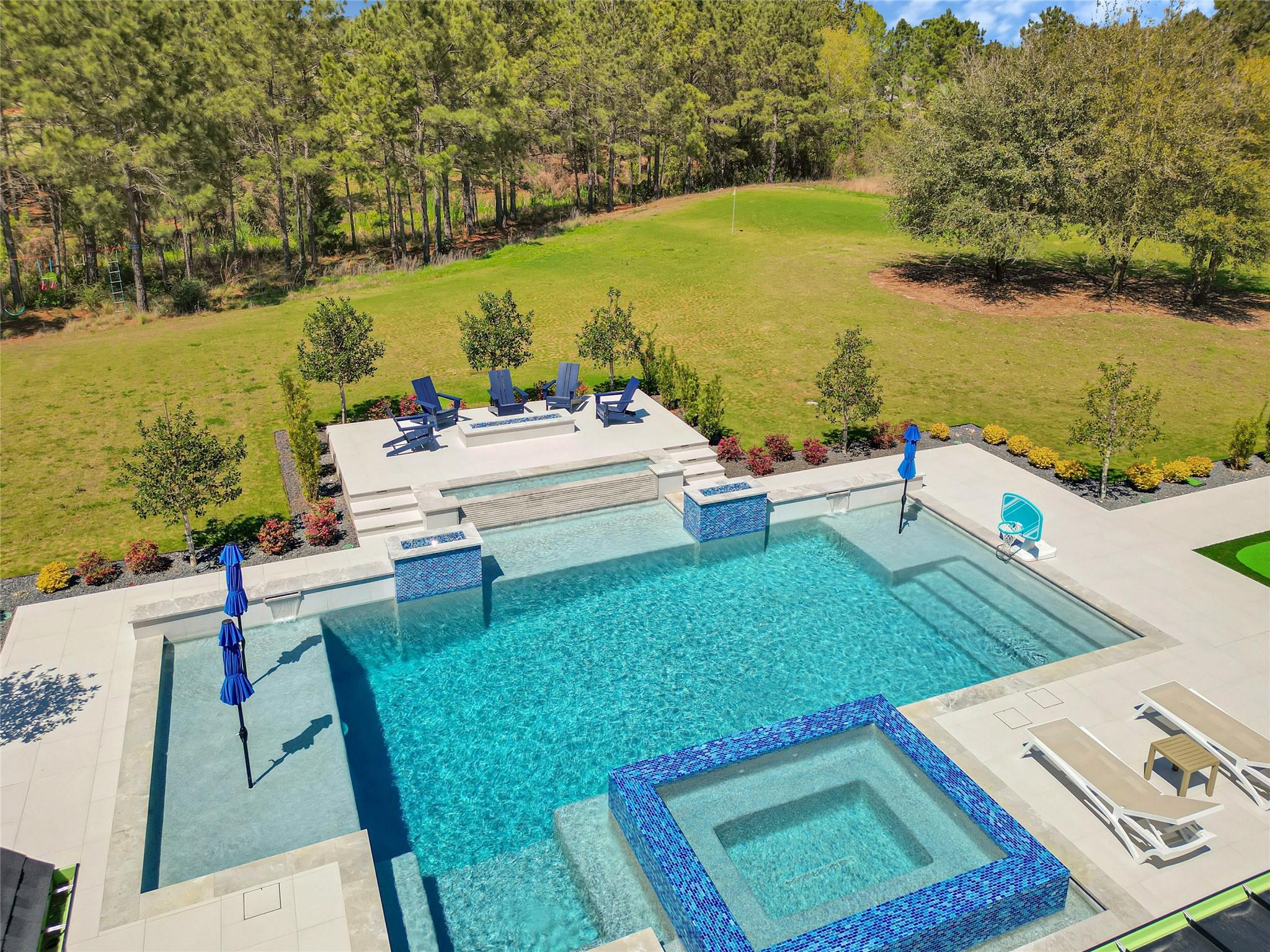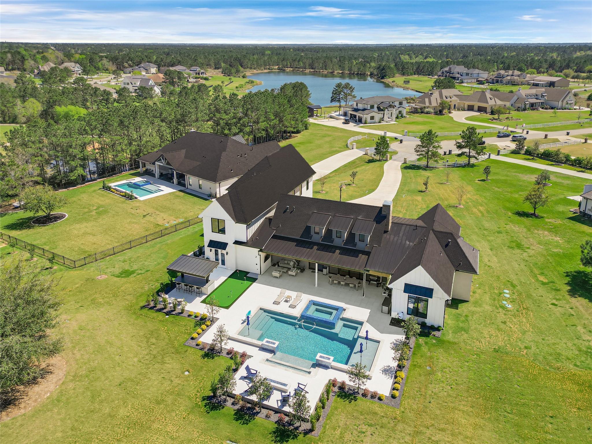 Modern Farmhouse Elegance meets Resort-Style Living on 1.27 acres in the Gated Community of Grand Lake Estates. Stunning Custom 4-bed, 3-bath home w/ Light-Filled Interiors feature Seamless Living, Dining & Kitchen areas. This Luxury Home Boasts 2 Offices, Stunning Foyer, Double-Sided Fireplace & Well-Appointed Island Kitchen w/ Pot Filler, Soft-Close Cabinetry, Under-Cabinet Lighting & Butlers Pantry w/ Beverage Ref & Sink. Primary Retreat w/ Soaking Tub, 7-Head Shower & Generous Closet. Exceptional Backyard Retreat w/ Expansive Covered Patio, Pergola, Firepit, Putting Green, & Outdoor Shower all centered around a Resort-Style Pool & Spa Overlooking a Serene, Wooded Buffer to Hole 7 of Grand Lake Golf Club behind the property. This Private Culdesac Lot Offers Luxury Living w/ Whole Home Generator, Wired for Whole Home Automation, Custom HunterDouglas Window Shades, Gemstone Roof Lighting, Mini-Split in Garage and So Much More!