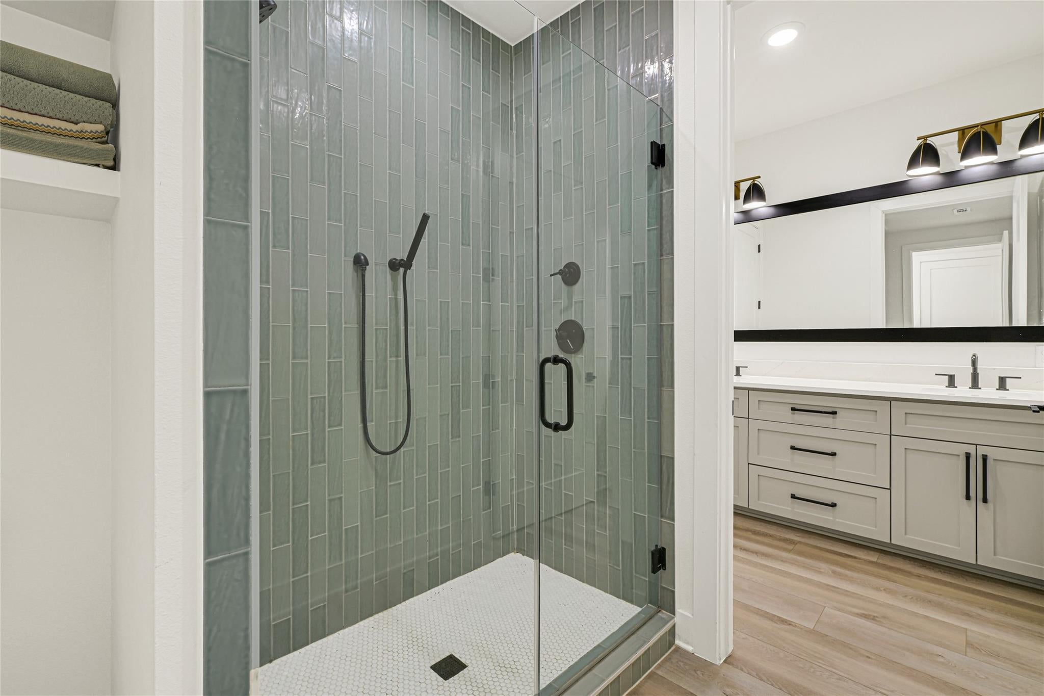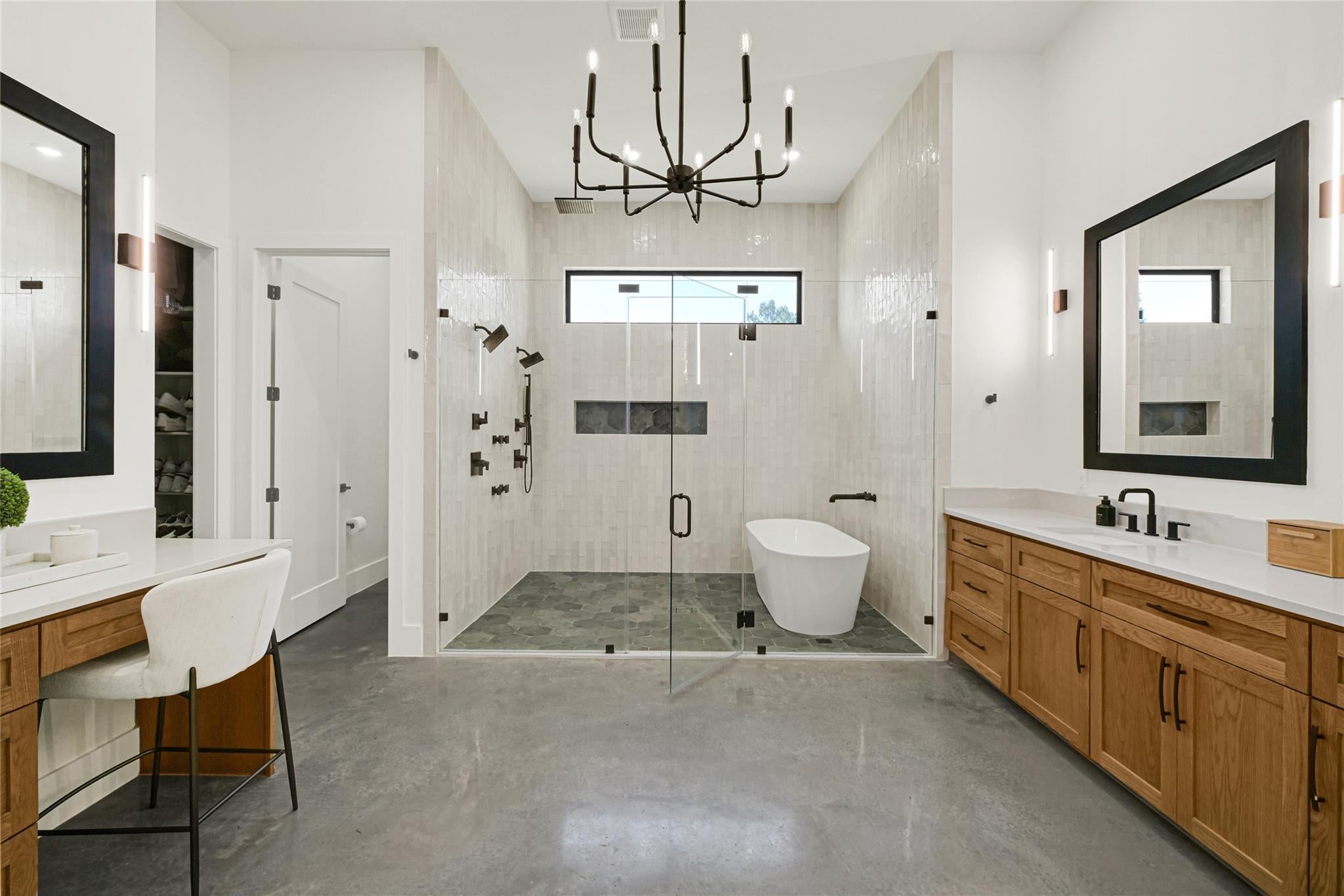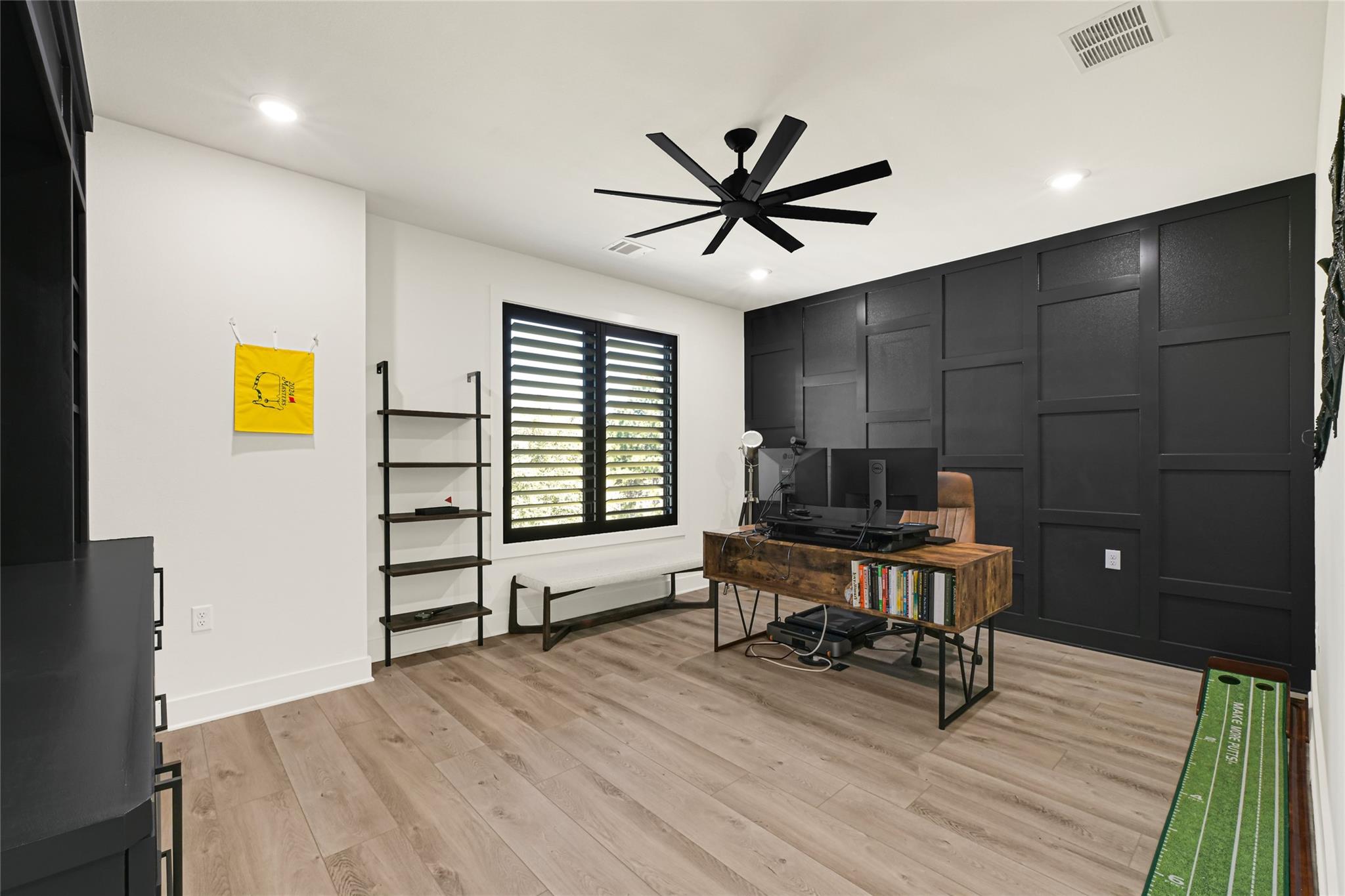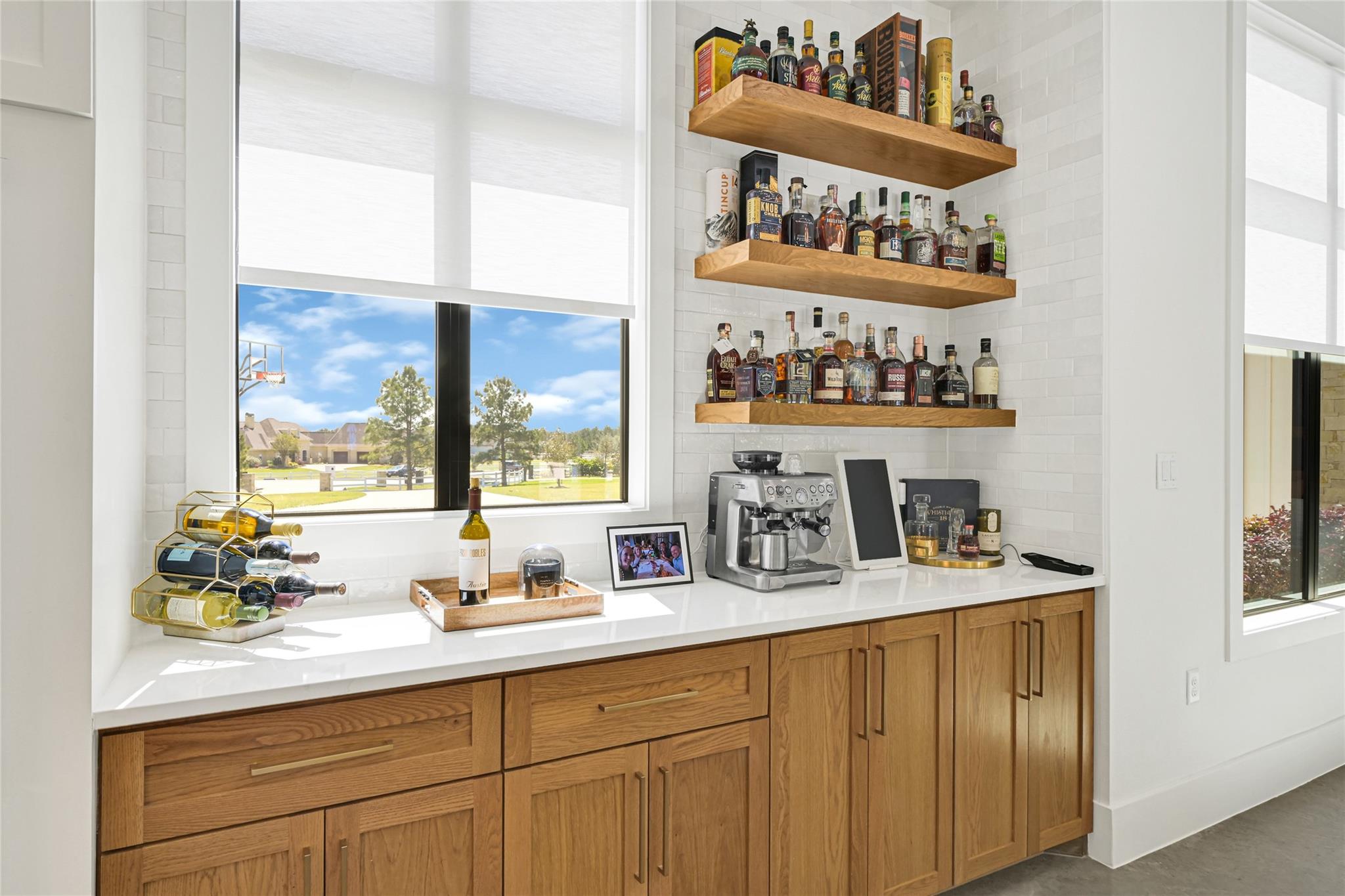 Modern Farmhouse Elegance meets Resort-Style Living on 1.27 acres in the Gated Community of Grand Lake Estates. Stunning Custom 4-bed, 3-bath home w/ Light-Filled Interiors feature Seamless Living, Dining & Kitchen areas. This Luxury Home Boasts 2 Offices, Stunning Foyer, Double-Sided Fireplace & Well-Appointed Island Kitchen w/ Pot Filler, Soft-Close Cabinetry, Under-Cabinet Lighting & Butlers Pantry w/ Beverage Ref & Sink. Primary Retreat w/ Soaking Tub, 7-Head Shower & Generous Closet. Exceptional Backyard Retreat w/ Expansive Covered Patio, Pergola, Firepit, Putting Green, & Outdoor Shower all centered around a Resort-Style Pool & Spa Overlooking a Serene, Wooded Buffer to Hole 7 of Grand Lake Golf Club behind the property. This Private Culdesac Lot Offers Luxury Living w/ Whole Home Generator, Wired for Whole Home Automation, Custom HunterDouglas Window Shades, Gemstone Roof Lighting, Mini-Split in Garage and So Much More!