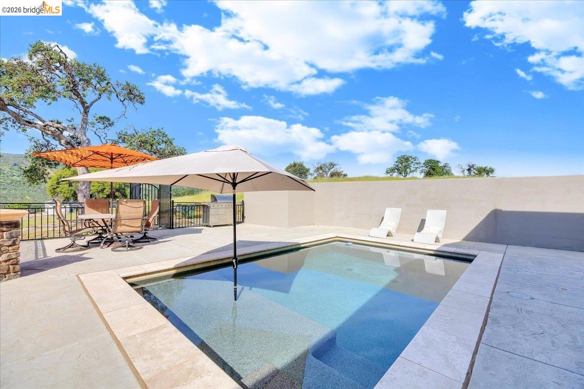 Welcome to this single story stunning 3-bedroom, 4-bath, 3,527 sq. ft. home in the gated Copper Valley Golf Club community. Perfectly positioned on the 4th hole, this move-in-ready residence captures breathtaking 180 degree foothill views. Designed for both comfort and entertaining, the open floor plan features a spacious living and dining area flowing seamlessly into a gourmet kitchen with top-of-the-line appliances, a large island, and walk-in pantry. The private primary suite offers a generous walk-in closet with custom organizers, while guest bedrooms are thoughtfully situated on the opposite wing. A large game/media room and separate office provide flexible living space. Step outside to your backyard oasisan expansive covered patio overlooking the fairway, Pebble Tec pool with Baja shelf, artificial turf, stucco privacy walls, and wrought iron fencing create the ultimate setting for relaxation and gatherings. Energy-efficient upgrades include owned solar (28 panels) with two Tesla backup batteries and a tankless water heater. The 3-car garage features epoxy floors, overhead storage, and an EV charger. Conveniently located near Sierra Foothills amenities and within easy reach of the Bay Area. This exceptional home is a must-see.