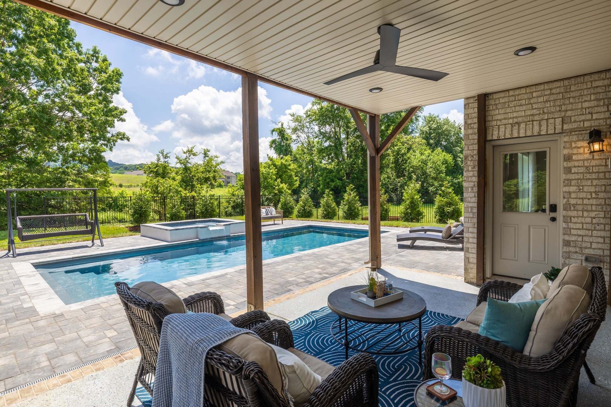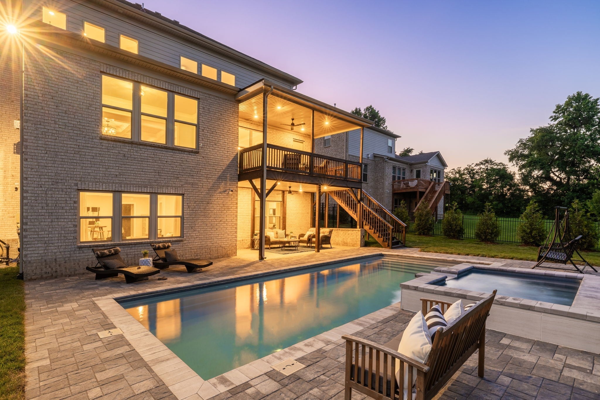 Positioned at the end of a private cul-de-sac in one of Franklins most desirable settings, this 2024 built residence offers a rare blend of refined design, exceptional upgrades, & sweeping views across protected green space. Enjoy quiet mornings with coffee as the sun rises behind the home, a view that can be experienced from both the primary suite & sunroomcreating a beautiful start to each day. Outdoor living is designed to impress, centered around a heated saltwater fiberglass pool & spa, covered porch, & patioall overlooking a fully fenced private backyard. This setting creates a true extension of the home, ideal for effortless entertaining. Thoughtfully designed for the way todays buyers live, the main level balances open-concept living with intentional spaces for work & retreat. A private office with custom built-ins, guest suite, large formal dining room & light-filled living areas create both function & flow. The chefs kitchen seamlessly flows into the family room & sunroom, creating an inviting space for both everyday living & entertaining. Upstairs, the primary suite is a true retreat with hardwood flooring, a spa-inspired bath, & generous custom closet space, complemented by additional bedrooms & a versatile bonus area. The fully finished walkout level elevates the homes versatility, offering a true second residence complete with full kitchen, dedicated laundry, bedroom, bath, den, & a spacious flex roomideal for multigenerational living. Extensive post-construction enhancements include finished not only the back yard oasis but attic & basement finished space, hardwoods added to the primary suite, designer lighting, custom closets, whole-house water softener, smart irrigation, landscape lighting, custom closets, smart home features throughout & more!. Zoned for top-rated schools including Ravenwood High, & just minutes from shopping & dining, this home offers a rare opportunity to experience elevated living in a truly exceptional setting.