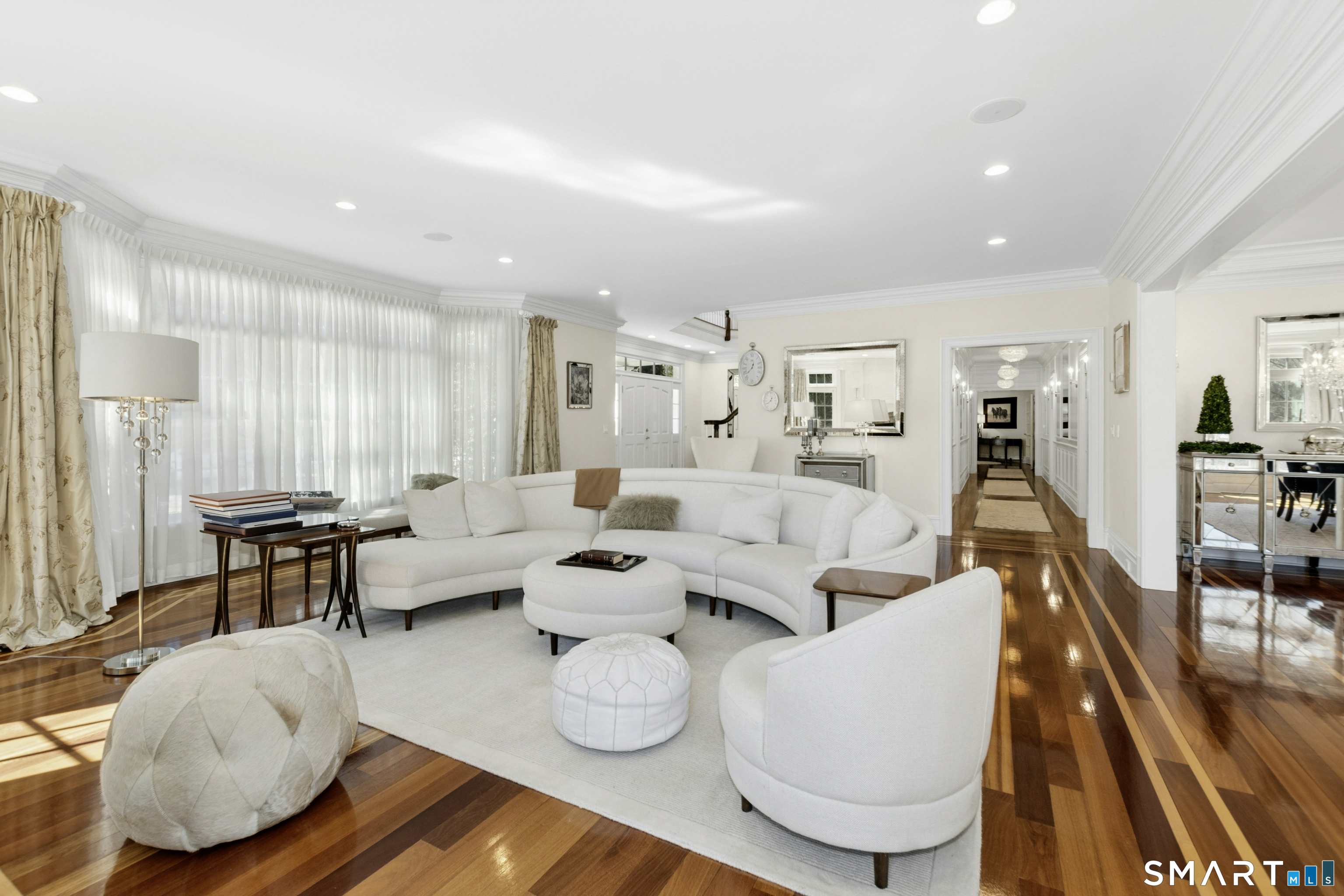 Welcome to 314 Georgetown Road, an exceptional custom-built residence gracefully set on two acres of beautifully landscaped, park-like grounds. Showcasing striking stonework, refined architectural details, and timeless sophistication, this home offers an elegant blend of classic design and modern comfort. A dramatic two-story foyer, highlighted by a sweeping staircase and elegant chandelier, creates a memorable first impression and introduces the homes light-filled, beautifully proportioned interiors. The gracious living room with fireplace flows seamlessly into the formal dining room, creating an inviting setting equally suited for refined entertaining and intimate gatherings. The gourmet eat-in kitchen is both stylish and functional, appointed with granite countertops, high-end appliances, and a new Sub-Zero refrigerator, along with a well-appointed butlers pantry. A sunlit breakfast area overlooks the private backyard and opens to a stone patio, offering the perfect setting for effortless indoor-outdoor living. The upper level features a luxurious primary suite designed as a serene private retreat, complete with its own fireplace, a spa-inspired bath, and generous his-and-her walk-in closets. Four additional spacious bedrooms, two elegantly designed bathrooms, and a large additional room-ideal for a game room, media room, or additional recreational space-complete the level. The finished walk-out lower level provides exceptional additional living space, perfectly suited for fitness, recreation, or entertaining. Additional highlights include a three-car garage, walk-up attic for abundant storage, water filtration system, and updated HVAC. Combining refined elegance with modern convenience, this remarkable home offers a truly elevated lifestyle in a beautiful and private setting. Note: There is audio/visual surveillance on property. See extensive list of recent improvements.