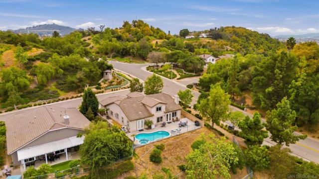 Nestled in the highly sought-after Hidden Trails community, this storybook view home offers the perfect blend of comfort, style, and functionality. Featuring 4 spacious bedrooms plus a versatile den that can easily serve as an optional 5th bedroom.The primary suite is conveniently located on the first floor, creating an ideal private retreat. Open-concept kitchen is the heart of the home, offering abundant storage, generous prep space, and seamless flow into the main living areas, perfect for both everyday living and entertaining. Step outside to your own backyard oasis where gorgeous panoramic views set the stage for unforgettable sunsets. Enjoy the newer pool, built in 2022.Recent upgrades include:Dishwasher installed May 2020,Hot water heater replaced March 2020,Microwave installed November 2019,Soft-close toilet seats throughout,Spacious 3-car garage. Home also has solar. This exceptional home combines timeless charm with thoughtful updates in one of the area's most desirable neighborhoods in Escondido.