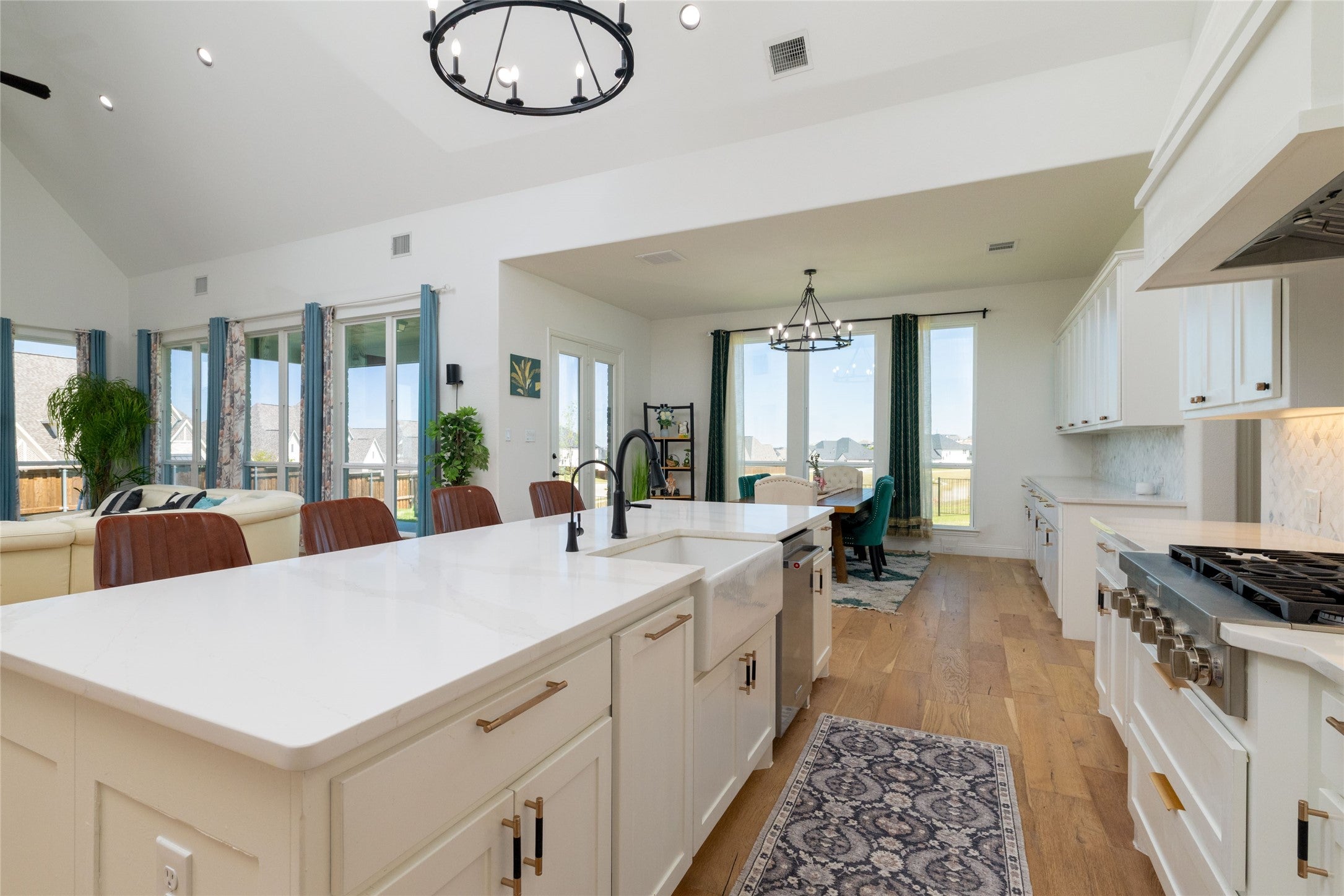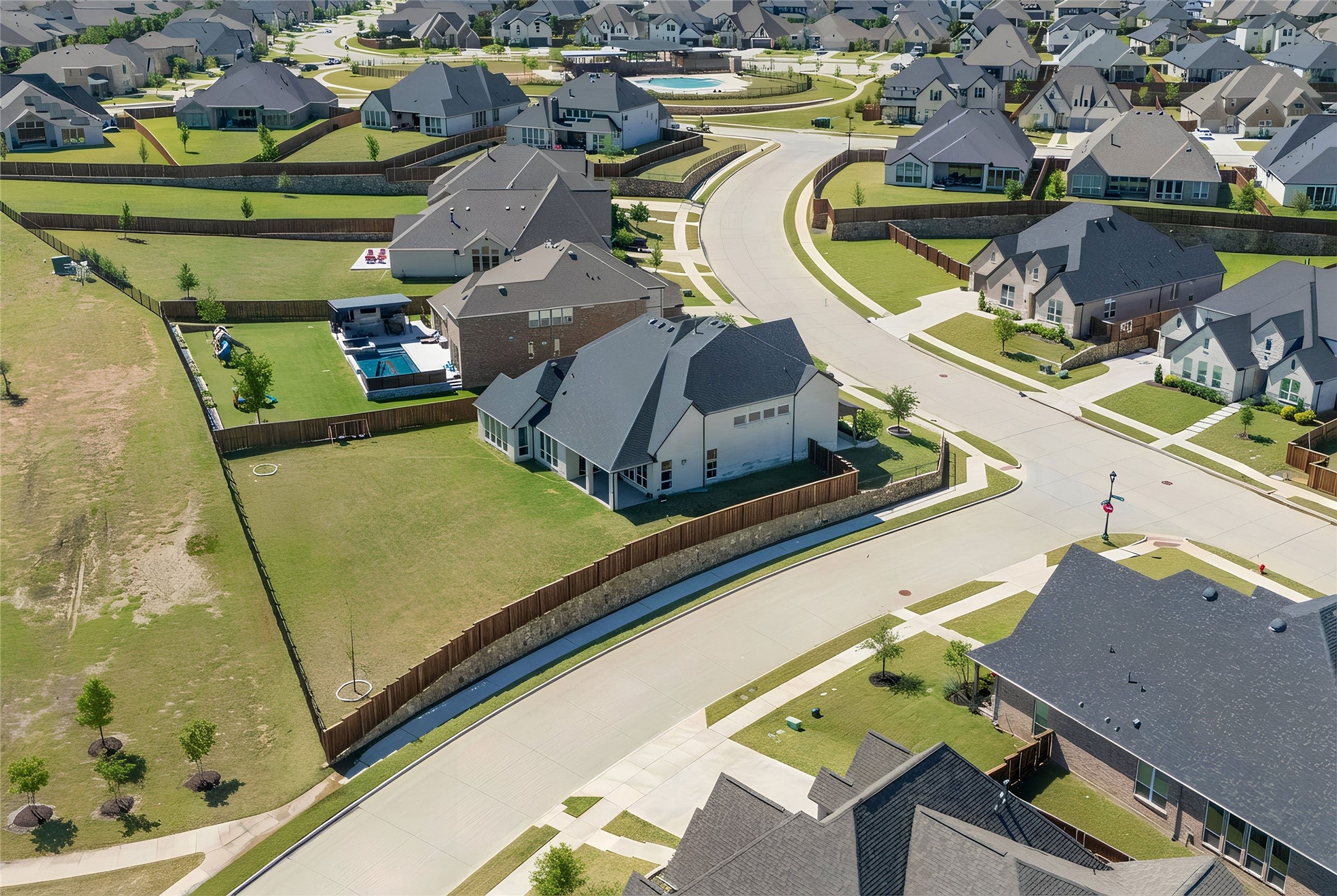 Lovely transitional-style luxury home in the highly desirable Watercress community, situated on a premium 0.41-acre corner lot with serene pond views. Offering approximately 4,875 sq ft, this 5-bedroom, 5.5-bath, 3-car garage residence blends modern elegance, functional design, and upscale finishes.The open-concept floor plan features vaulted ceilings, expansive windows, and abundant natural light, complemented by wide-plank white oak flooring throughout the main living areas. The chef’s kitchen is equipped with KitchenAid appliances, a large island, butler’s pantry, and designer lighting, seamlessly connecting to the spacious living and dining areas—ideal for entertaining and everyday living. The primary suite on the main level offers a spa-inspired bath with soaking tub, oversized walk-in shower, and dual walk-in closets. All secondary bedrooms include ensuite baths, providing privacy and comfort for family and guests. Additional features include a dedicated media room, game room, bonus living area, and oversized utility room, offering flexibility for work, play, and relaxation. Exterior highlights include the corner lot positioning, tranquil water views, and expansive outdoor space with room to customize or build a backyard oasis. A rare opportunity to own a luxury home with space, views, and premium upgrades in a prime Haslet location.