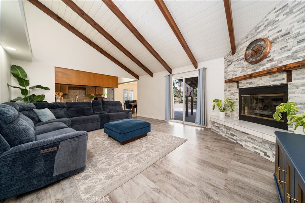 Welcome to this charming single-story Spanish-style home, perfectly situated at the end of a quiet cul-de-sac with desirable RV parking and a spacious driveway accommodating up to six vehicles. Nestled in a family-oriented neighborhood, this home offers convenient access to shopping and transportation while maintaining a peaceful residential feel.Step inside to discover beautiful Spanish arched entryways leading into the formal living and dining rooms, creating a warm and inviting first impression. The expansive family room showcases stunning natural wood open-beam vaulted ceilings and a cozy fireplace, making it the perfect space for relaxing or entertaining.The adjacent gourmet kitchen features gorgeous granite countertops, a newer stove, range, and oven, and flows seamlessly into the main living areas. Throughout the home, you'll find rich natural wood moldings and wood-finished doors that add timeless character and charm. The open floor plan offers spacious rooms filled with natural light.The primary suite serves as a private retreat, complete with a walk-in closet and a large bathroom featuring dual vanity sinks, a soaking tub, and a separate shower. Sliding glass doors lead directly to the backyard patio, creating a seamless indoor-outdoor living experience.The backyard is truly an entertainer's delight—thoughtfully redesigned with a concrete slab, retaining wall, and professional landscaping. Enjoy a tranquil setting surrounded by Texas privets, rose bushes, lavender plants, and sago palms, along with a fragrant greenhouse and sprinkler system. It's the perfect space for BBQ gatherings or relaxing evenings outdoors.Additional upgrades include dual-pane windows, newer central A/C and forced air systems, and recessed lighting throughout. Both bathrooms have been tastefully remodeled with new faucets, countertops, and toilets, completing this beautifully maintained home that blends comfort, style, and functionality.