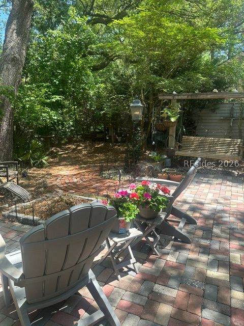 This chrming tw-bdrom, twobathroom home is netled n th derable Greenwood Forest community, right in the heart of Sea Pines. Surrounded by mature landscaping, the property offers a private backyard retreat-perfect for enjoying a quiet, relaxed Lowcountry setting.