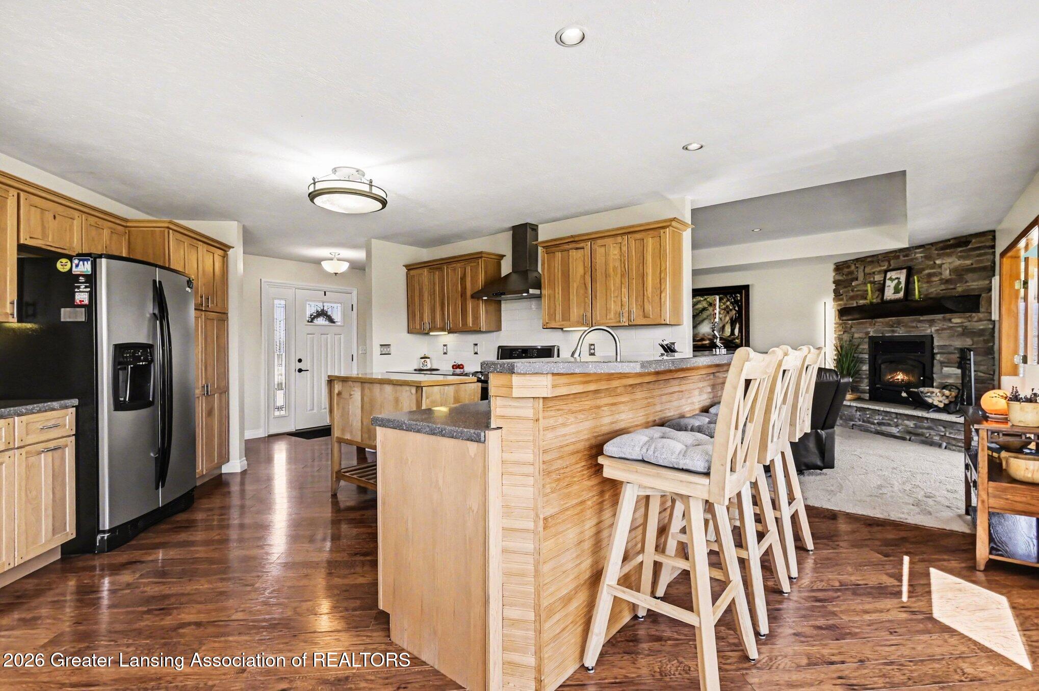 Experience unparalleled flexibility in this well-maintained property. The heart of the home features a chefs kitchen equipped with solid wood cabinetry, granite countertops, and a double convection wall oven. A generous breakfast bar and an expansive walk-in pantry. A cozy wood-burning fireplace anchors the living area, complemented by abundant storage throughout the home.