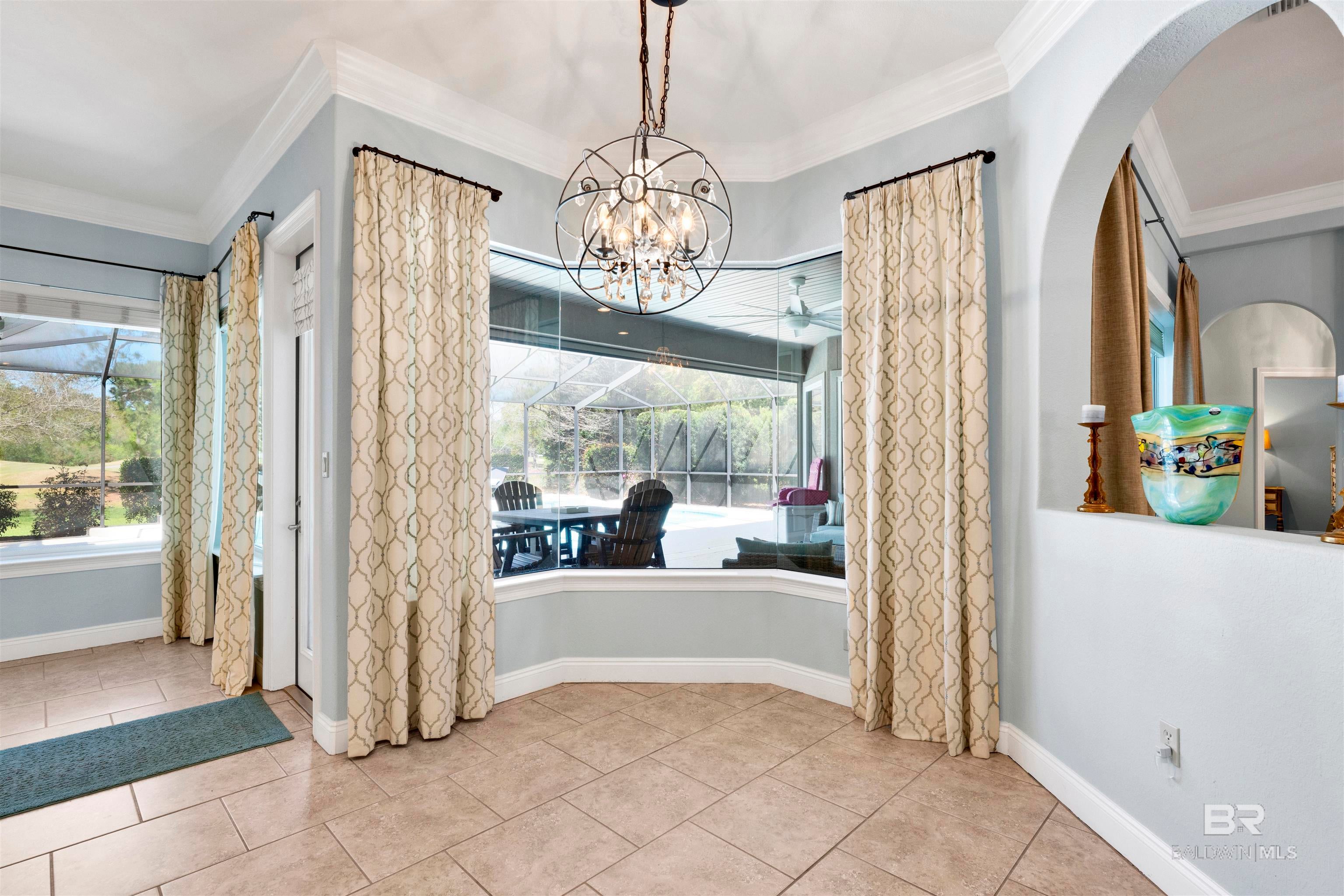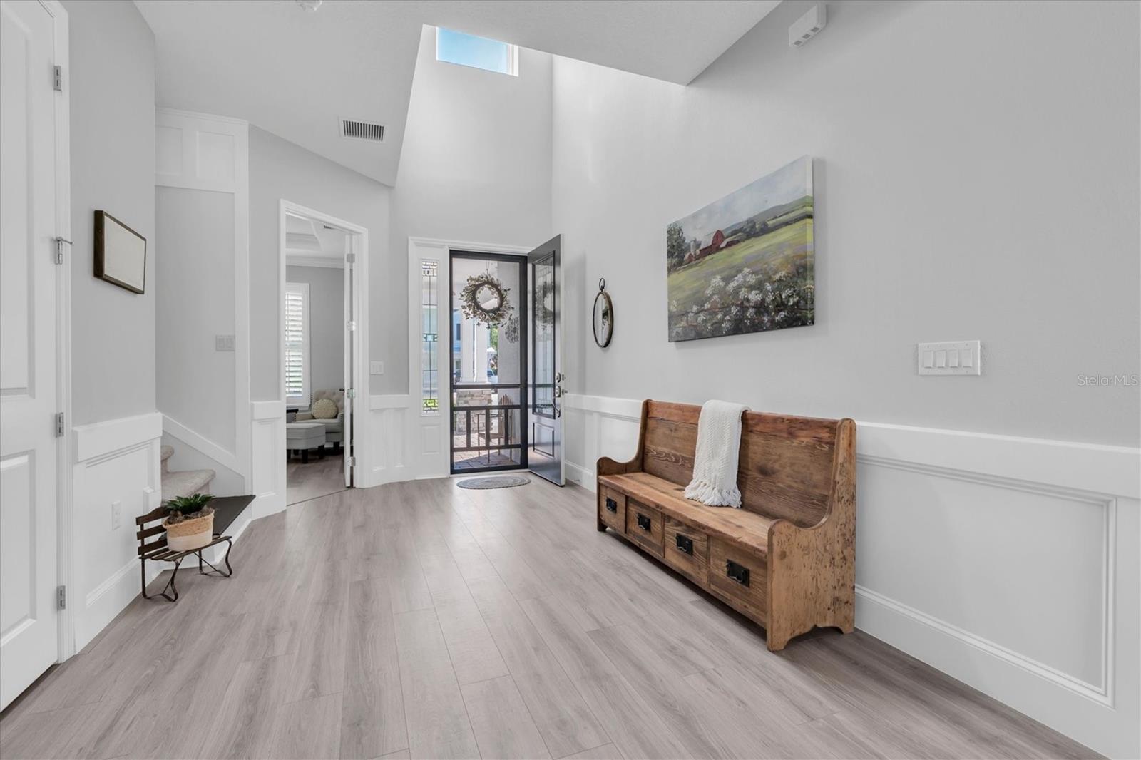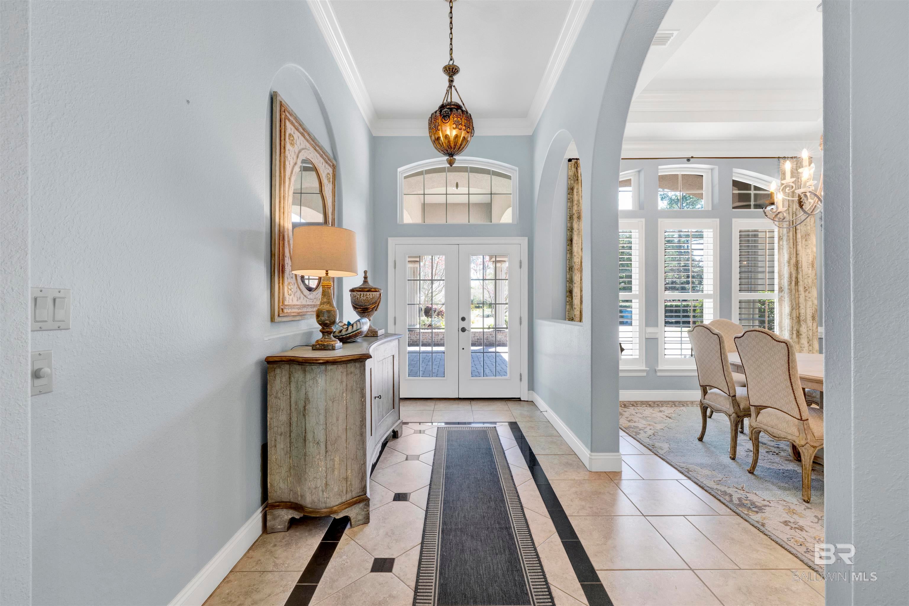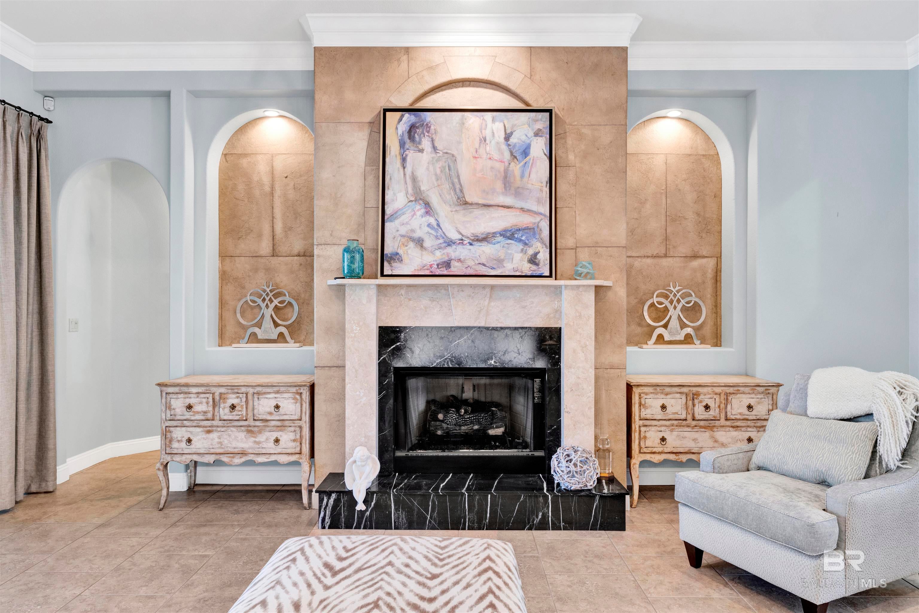 627 Marina Circle greets you long before you step inside. Stately, mature trees cast dappled shade across mossy boulders and a gracefully curved driveway, setting a serene tone from the moment you arrive. The welcome continues with the soft gurgle of a tiered fountain just beyond the Saltillo tile breezeway.