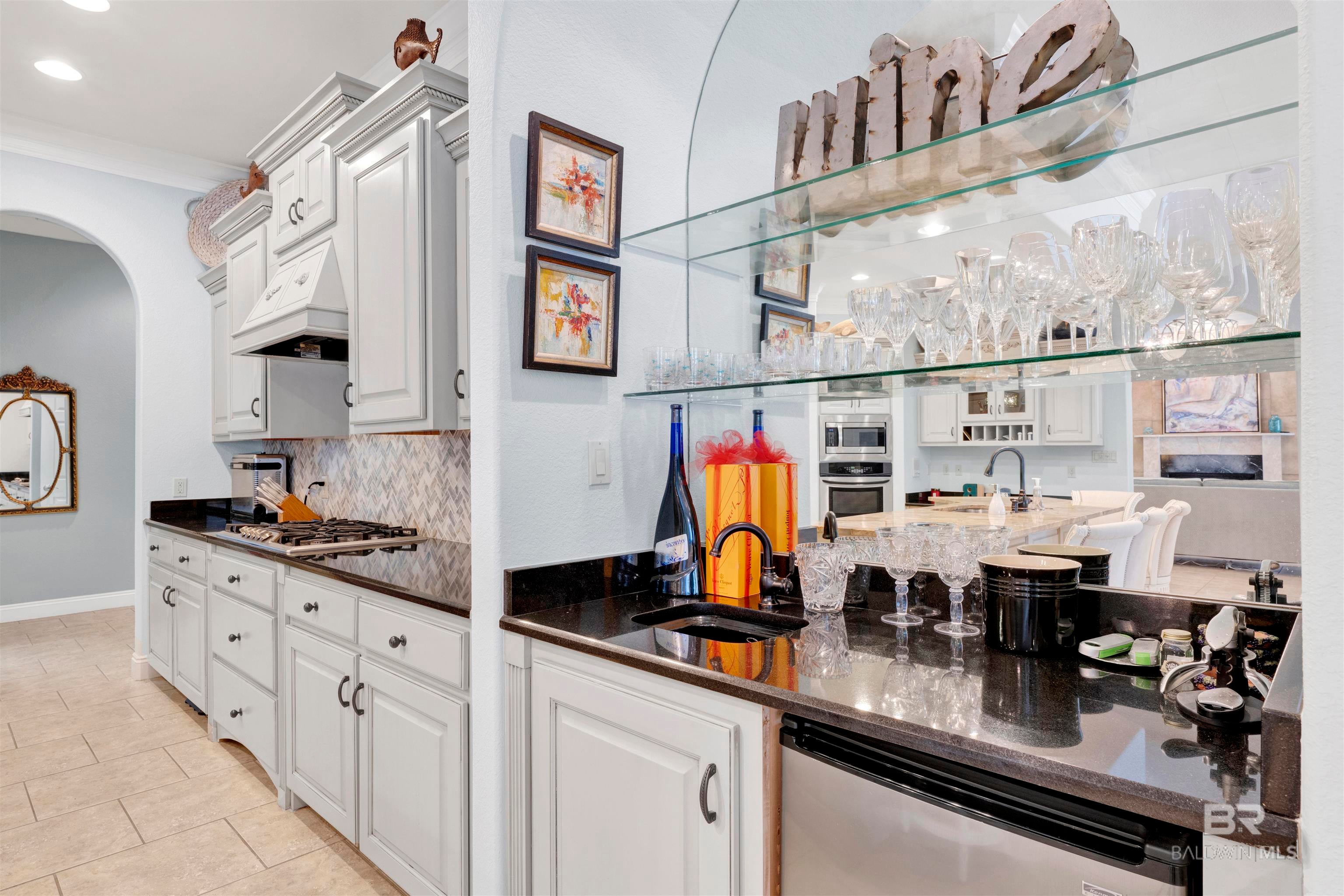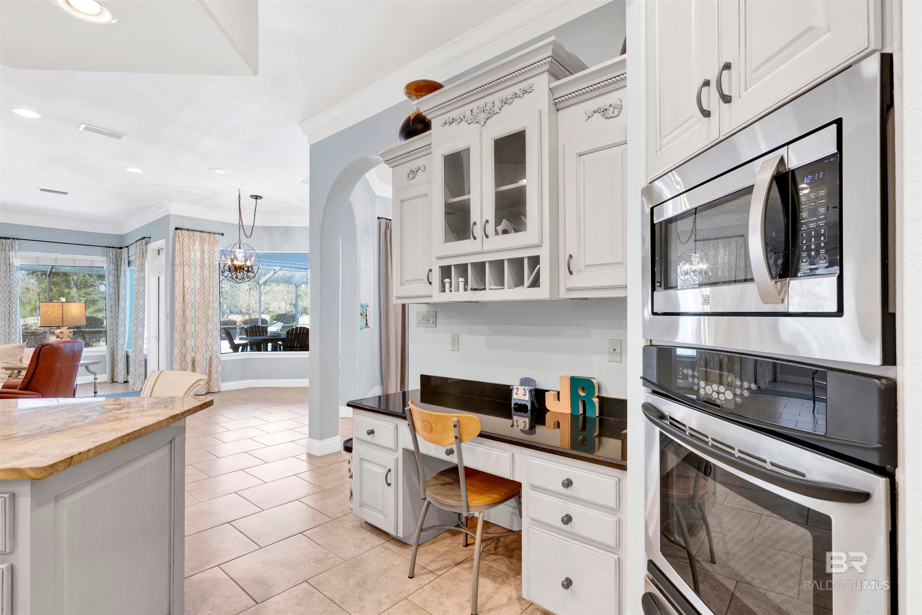 627 Marina Circle greets you long before you step inside. Stately, mature trees cast dappled shade across mossy boulders and a gracefully curved driveway, setting a serene tone from the moment you arrive. The welcome continues with the soft gurgle of a tiered fountain just beyond the Saltillo tile breezeway. Inside, the earthy warmth carries through with leaf-accented tile floors and softly glowing natural light. The kitchen pairs shaker-style cherry cabinetry with granite countertops and stainless steel appliances, creating a space that is both functional and inviting. The tile extends into the dining area and living room, where a built-in bar with stained glass accents adds character, and a sliding glass door opens to the lush backyard beyond. The spacious family room is anchored by a gas-plumbed, wood-burning fireplace set against a Venetian plaster wall. Wide-plank white oak laminate flooring and soft recessed lighting bring a crisp, modern balance to the space. Set quietly at the back of the home, the primary suite offers direct access to one of two large covered patios through a sliding glass door. The en-suite bath is thoughtfully appointed with granite countertops, rich cherry cabinetry, and a walk-in shower with a riverstone base and tile surround. Additional bedrooms are generously sized, including one expansive room with a full wall of built-in bookcasesideal for a home office, library, or exceptional bedroom. The hall bath features a deep jetted soaking tub, offering a comfortable place to unwind. With over a 10,000 sq. ft. lot, the backyard truly shines, featuring a sparkling pool, above-ground hot tub, citrus trees, and a raised garden bed. Multiple covered patios provide the perfect setting for dining, entertaining, or simply relaxing poolside. Located in the heart of Stonegate, youll enjoy access to a vibrant community with a year-round heated lap pool, fully equipped fitness center, lighted pickleball and tennis courts, and large community spaces with frequent events that bring neighbors together.
