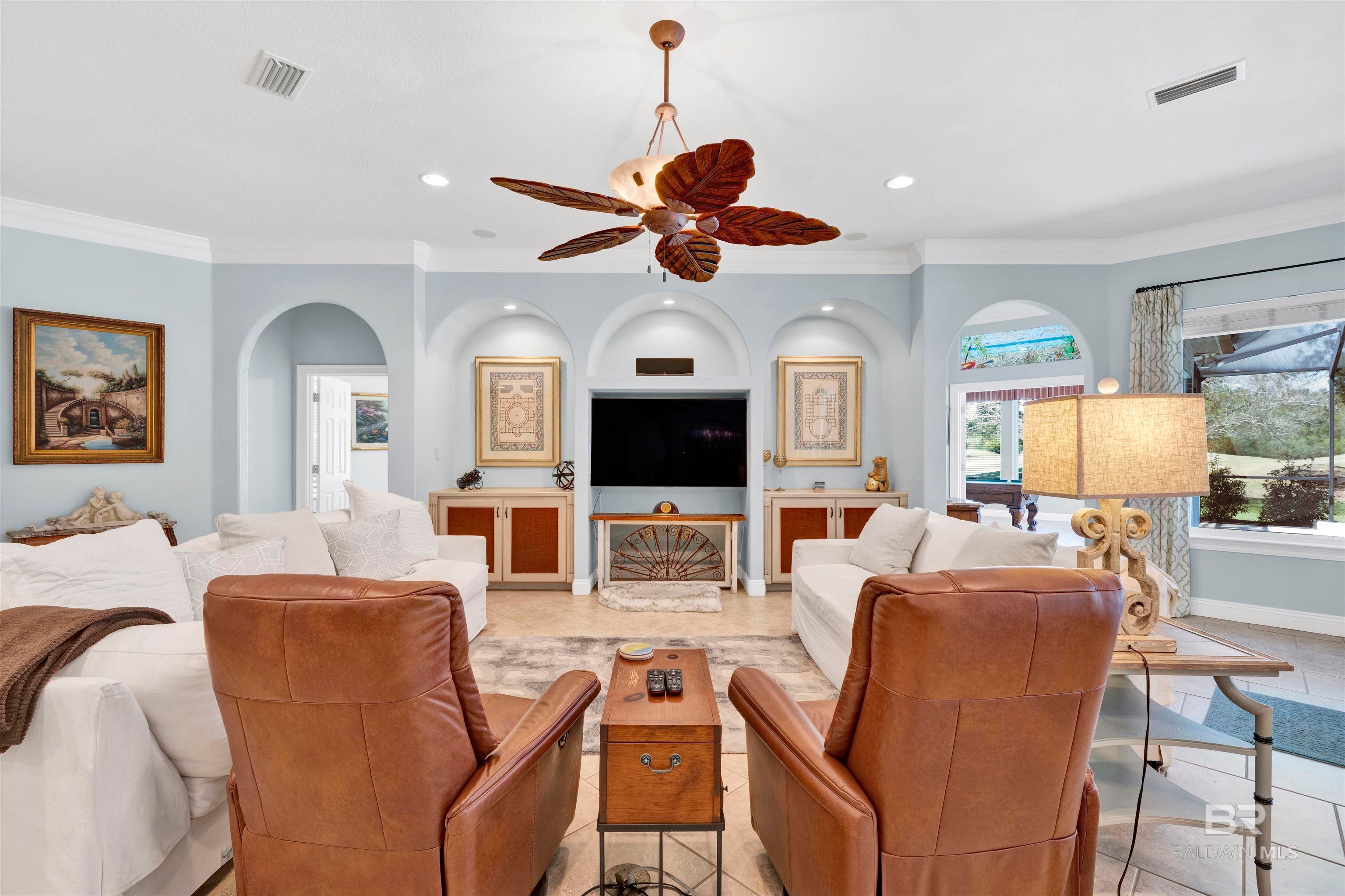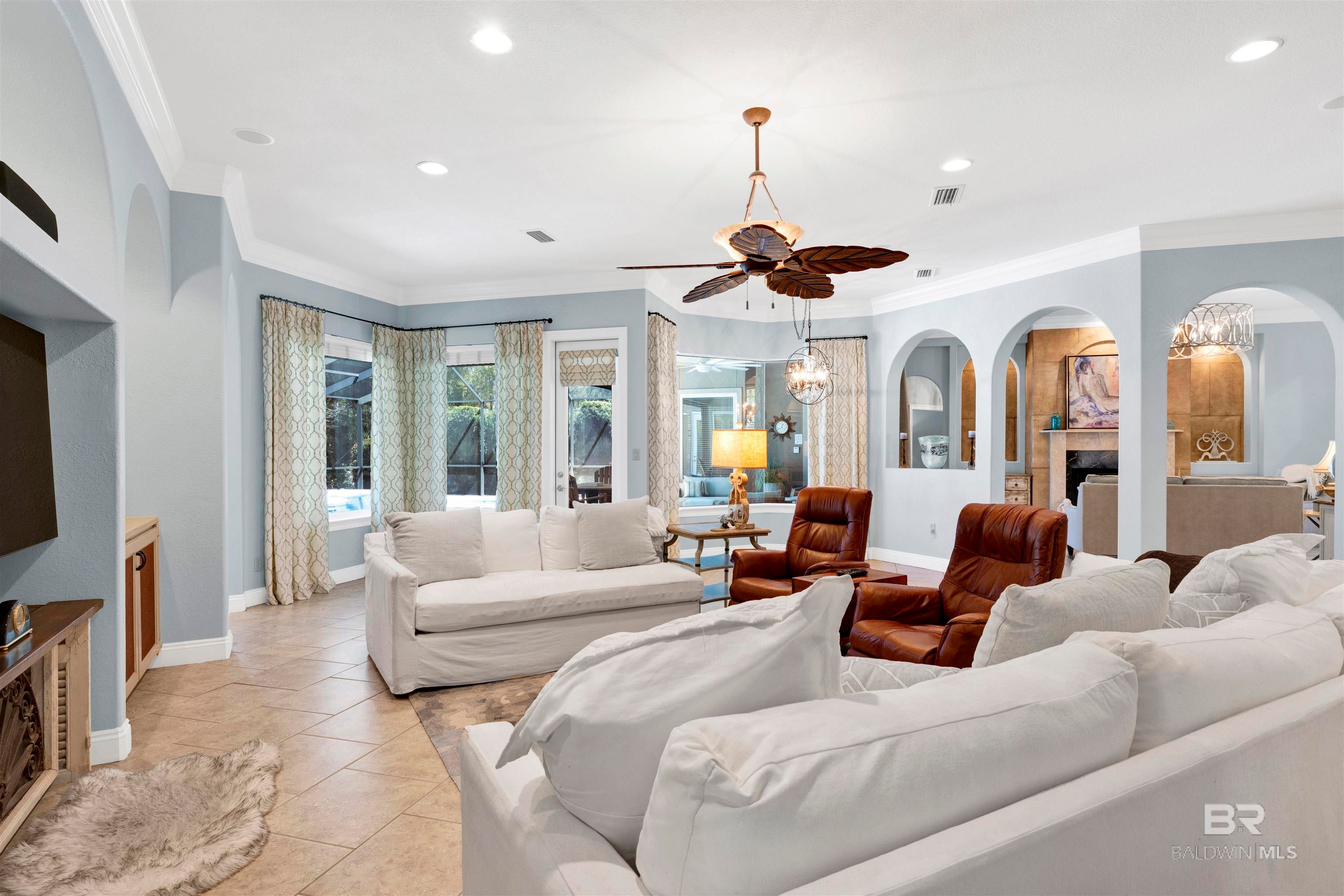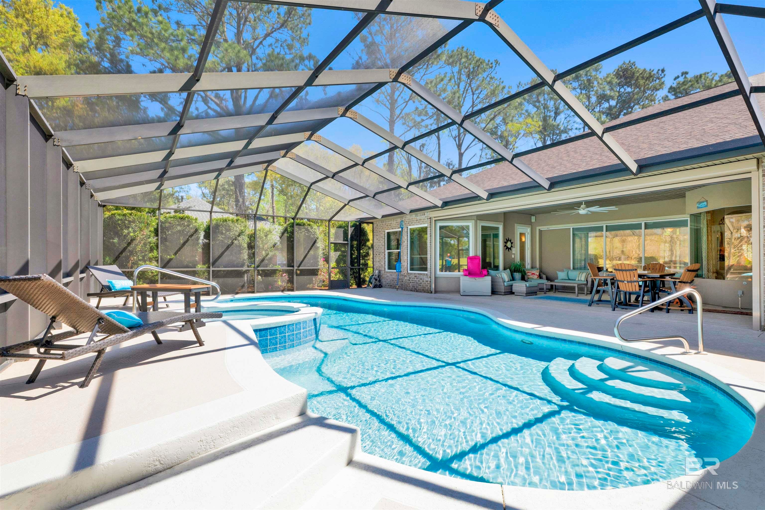 Welcome to 612 Estates Drive in beautiful Gulf Shoresa stunning 4-bedroom, 4.5 bathroom home designed for both comfort and entertaining. This thoughtfully crafted residence offers spacious interiors and upscale features throughout. Step outside to your private backyard oasis, complete with a screened-in gunite swimming pool and relaxing hot tub perfect for relaxing after a day on the golf course.