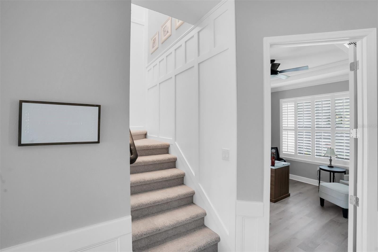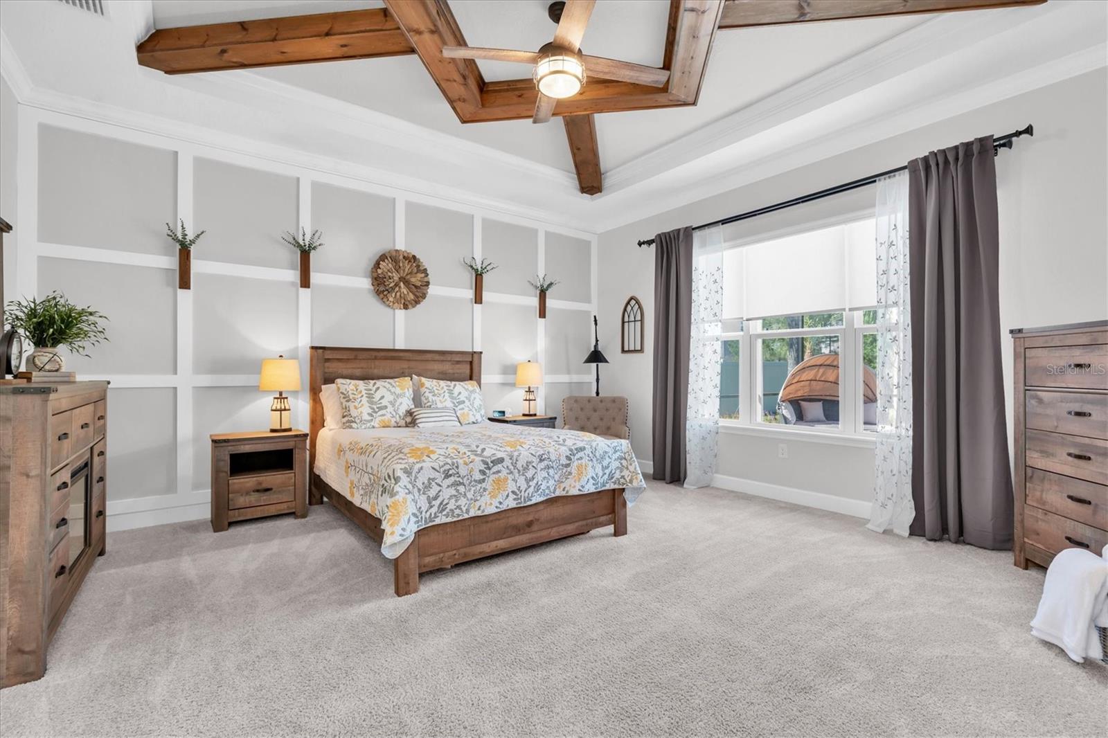 IMMACULATE LUXURY POOL HOME WITH SOLAR ON A .32 ACRE LOT IN DESIRABLE STARKEY RANCH. Nestled within the highly sought-after Whitfield Preserve in Starkey Ranch, this exceptionally cared for Taylor Morrison Caladesi model with 4/3.5/3 office & bonus room plus heated saltwater pool & outdoor kitchen offers a rare combination of thoughtful design, extensive upgrades, & resort-style outdoor living. Built with more than 335,800 in builder upgrades and further enhanced with numerous owner improvements, this home reflects quality craftsmanship and elevated finishes throughout. Impressive curb appeal beings with Craftsman exterior, illuminated at night with Trimlights and uplights, is further enhanced by columns, stone accents, hardy siding, shutters, tile roof, a charming front porch & manicured landscaping. Double Saratoga Glass front doors w/ sidelight and screen door greet guests. Impressive upgrades include Laminate Floors in Ashlar Oak in all main living areas & office, Crown molding & millwork, 8ft doors, custom lighting & fans, motorized blinds & freshly painted interior with Sherwin Williams Agreeable Gray. To the right is a dedicated office w/ custom built in desk. At the heart of the home is a beautifully designed gourmet kitchen created for both entertaining and everyday living. Styled with 42 White Shaker cabinetry in Painted Linen, Level 5 Calacatta Quartz countertops, a farmhouse apron-front sink, pot filler, backsplash, glass cabinets, soft-close cabinetry, GE Profile stainless appliances including accent hood, pendent lights, under & over cabinet lights and an extensive island with room for 3 barstools. The dining room is anchored by a chandelier located close to the kitchen. The open floor plan flows seamlessly into the spacious living room, where wood beams, crown molding, ceiling fan, wood accent wall w/ custom stone encased electric fireplace create a warm yet sophisticated atmosphere. A half bath is located close by. Luxurious Primary br, located on the 1st fl, styled w/ coffered ceiling, accent wall, Tray, ceiling fan overlooks tranquil pool. A barn door leads to luxurious ensuite bath featuring dual sinks w/ makeup counter, custom mirrors & shiplap accent, quartz counters, upgraded cabinetry, deluxe walk-in shower w/ rain shower & custom-built ins closet. Follow the staircase w/ decorative railing to the 2nd story entering the bonus room w/ plush carpet, tray ceiling & fan and wood accent wall. You will find 3 additional well-sized brs, one w/ ensuite, and a 3rd full bath. Outdoor living is where this home truly shines. Step onto the covered lanai & enjoy a fully equipped outdoor kitchen w/ grill, vent hood, granite counters, and sink, overlooking a custom heated saltwater pool w/ Pebbletec finish, water bowls, lights & paver deck. Fully fenced yard is a private space to enjoy. A gate leads to a common greenspace offering a safe place to play. A finished laundry room provides cabinetry, countertop & sink. Owned and transferrable 44,000 solar panel system designed to improve energy efficiency & radically reduce utility costs. Award winning Starkey Ranch offers K-8 Magnet School w/ specialties in Computer Science, Fine Arts & World Language. Theater, Library, 3 community pools, 3 playgrounds, 3 dog parks & events. Close to Publix, restaurants, beaches & easy commute to Tampa airport. This is a rare opportunity to own a truly turnkey home w/ exceptional upgrades in one of Odessas most desirable neighborhoods.