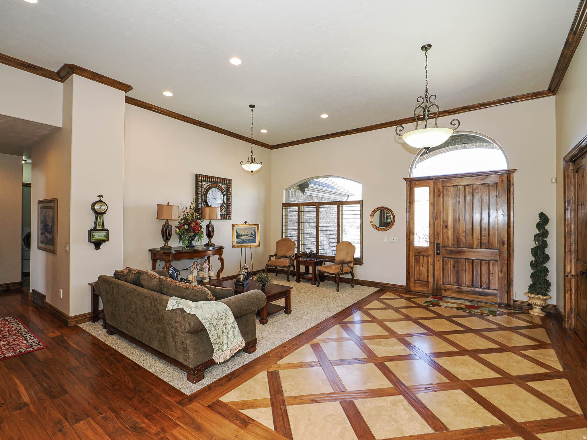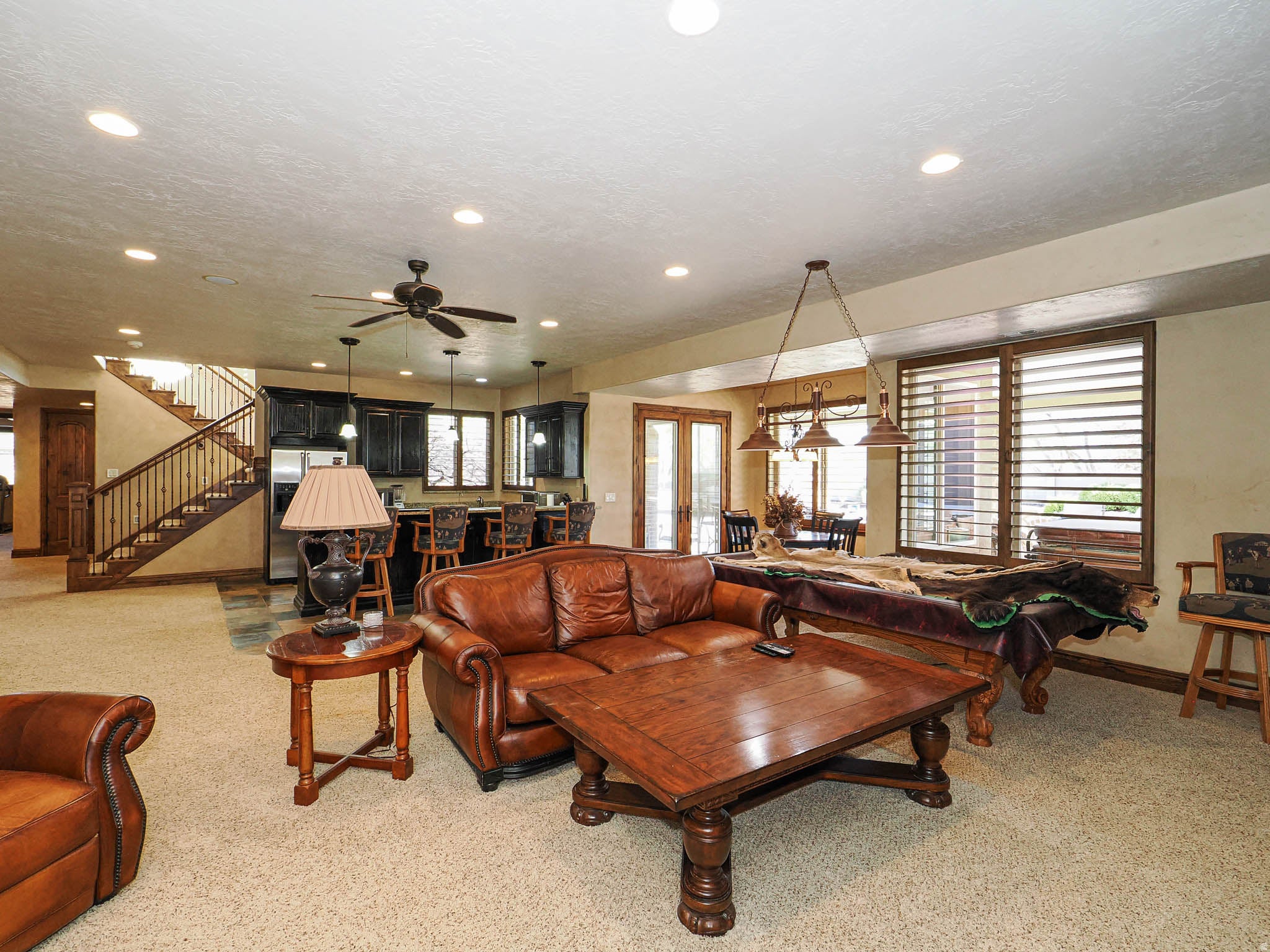 Exceptional Bluffdale luxury estate offering a rare combination of lifestyle and function. Situated with sweeping Wasatch Mountain views, this high-quality custom home features a swimming pool, horse-ready pasture, and an impressive 40 x 50 heated detached garage with oversized 14 doors, 16 ceilings, and a dedicated pool bath. Inside, enjoy a gourmet kitchen with premium appliances, a second full kitchen in the lower level for entertaining or extended living, and an open great room highlighted by vaulted ceilings and natural light. The home is complemented by a luxurious primary suite, formal living room, and executive office.