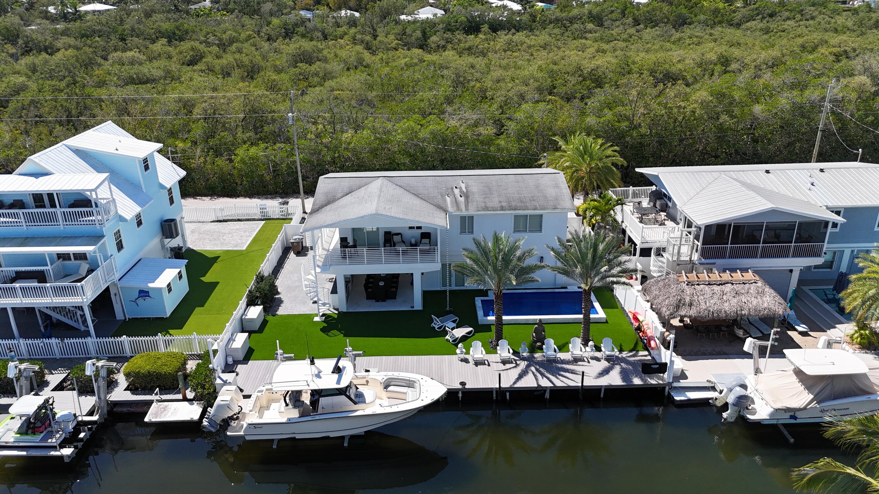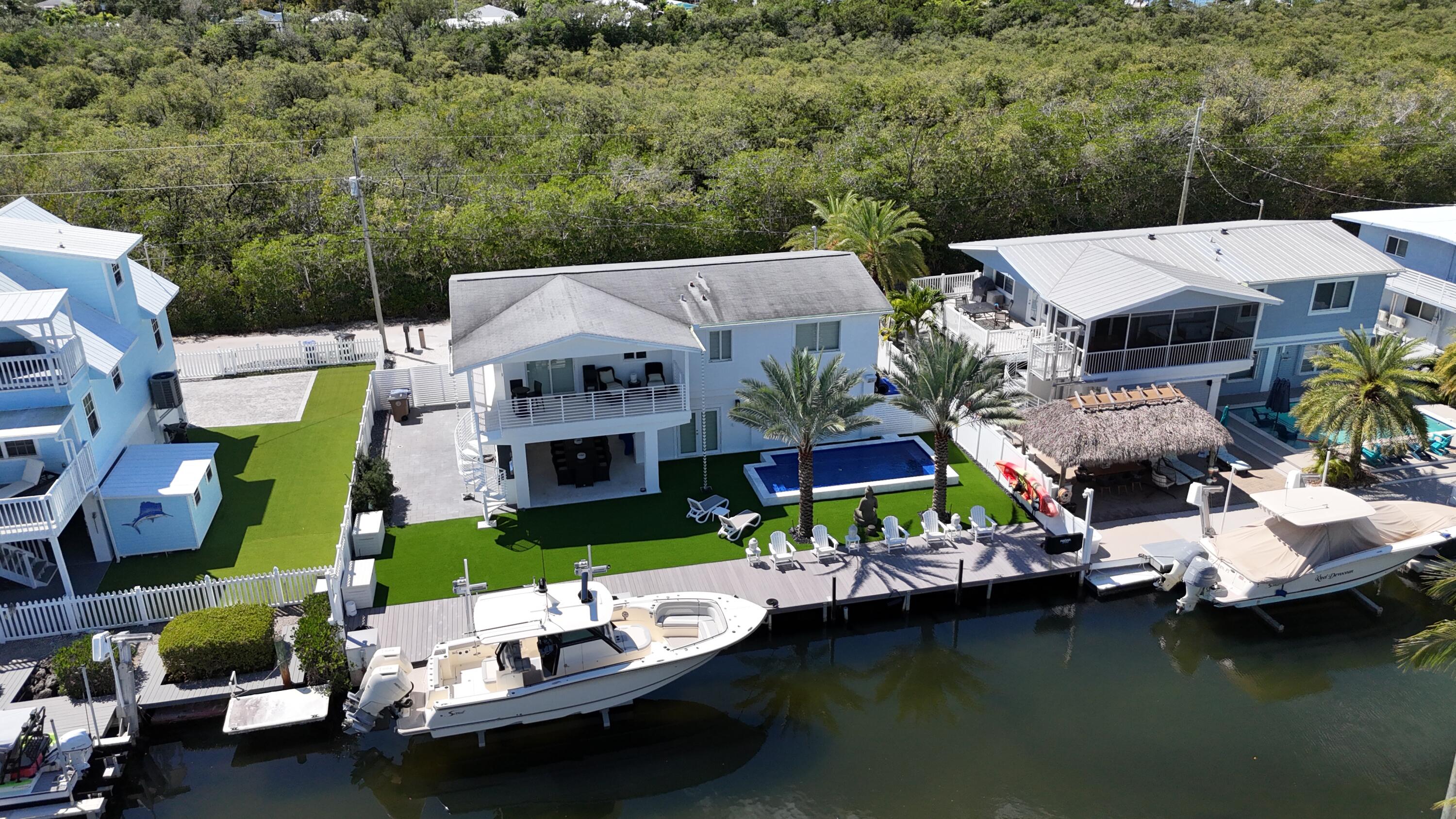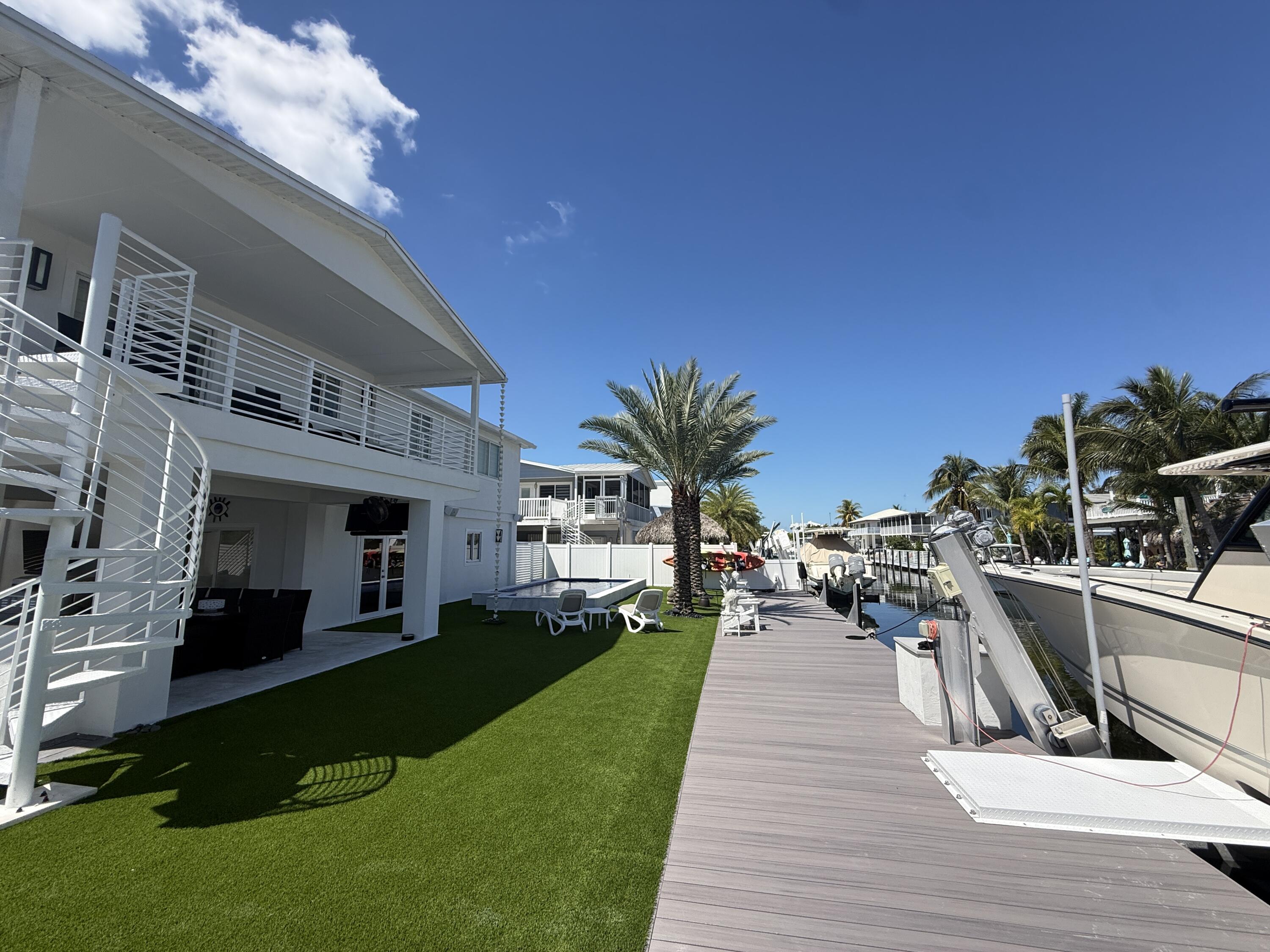 Discover your slice of paradise in Key Largo with this canalfront 3-bedroom, 2-bath home offering comfort, functionality, and the laid-back Florida Keys lifestyle. Ideally situated on a quiet deep-water canal with 75 feet of dockage and just minutes to Florida Bay, this property is perfect for boating enthusiasts seeking quick and easy access to open water. The elevated main living area features an open-concept layout with a spacious kitchen, dining, and living area that flows seamlessly to a private balcony, creating a bright and inviting space to relax or entertain. The home includes a primary suite along with two additional bedrooms and a full guest bathroom, all thoughtfully arranged for everyday living. Outside, enjoy a heated pool and a generously sized yard with low-maintenance landscaping, along with ample parking and a full-length dock. A 15,000 lb boat lift is also in place. Whether you're looking for a full-time residence, a weekend retreat, or an investment opportunity, this well-located waterfront property offers an exceptional opportunity to own in Key Largo. Minutes away from Adams cut, many restaurants and full docks. Call Today!