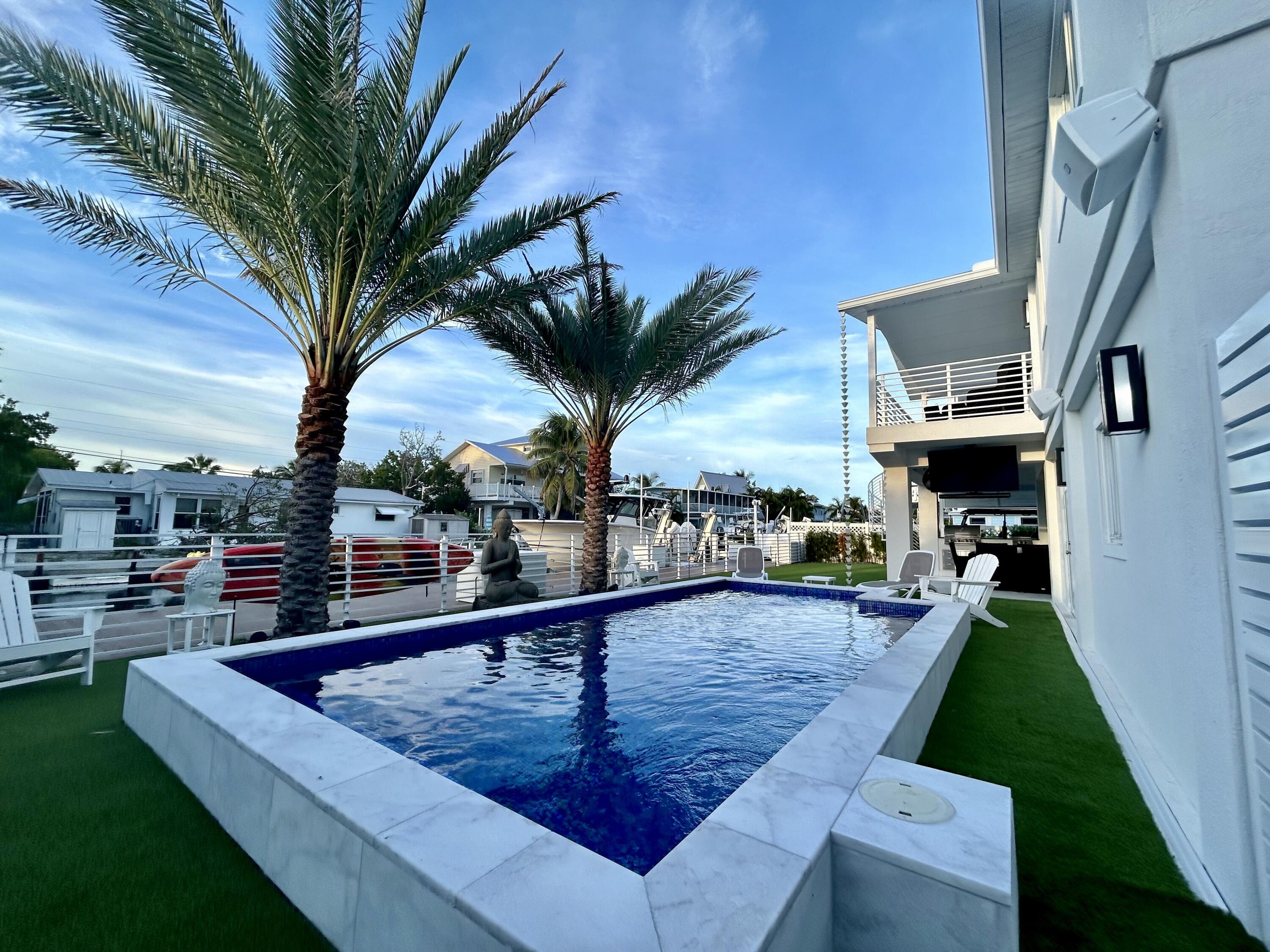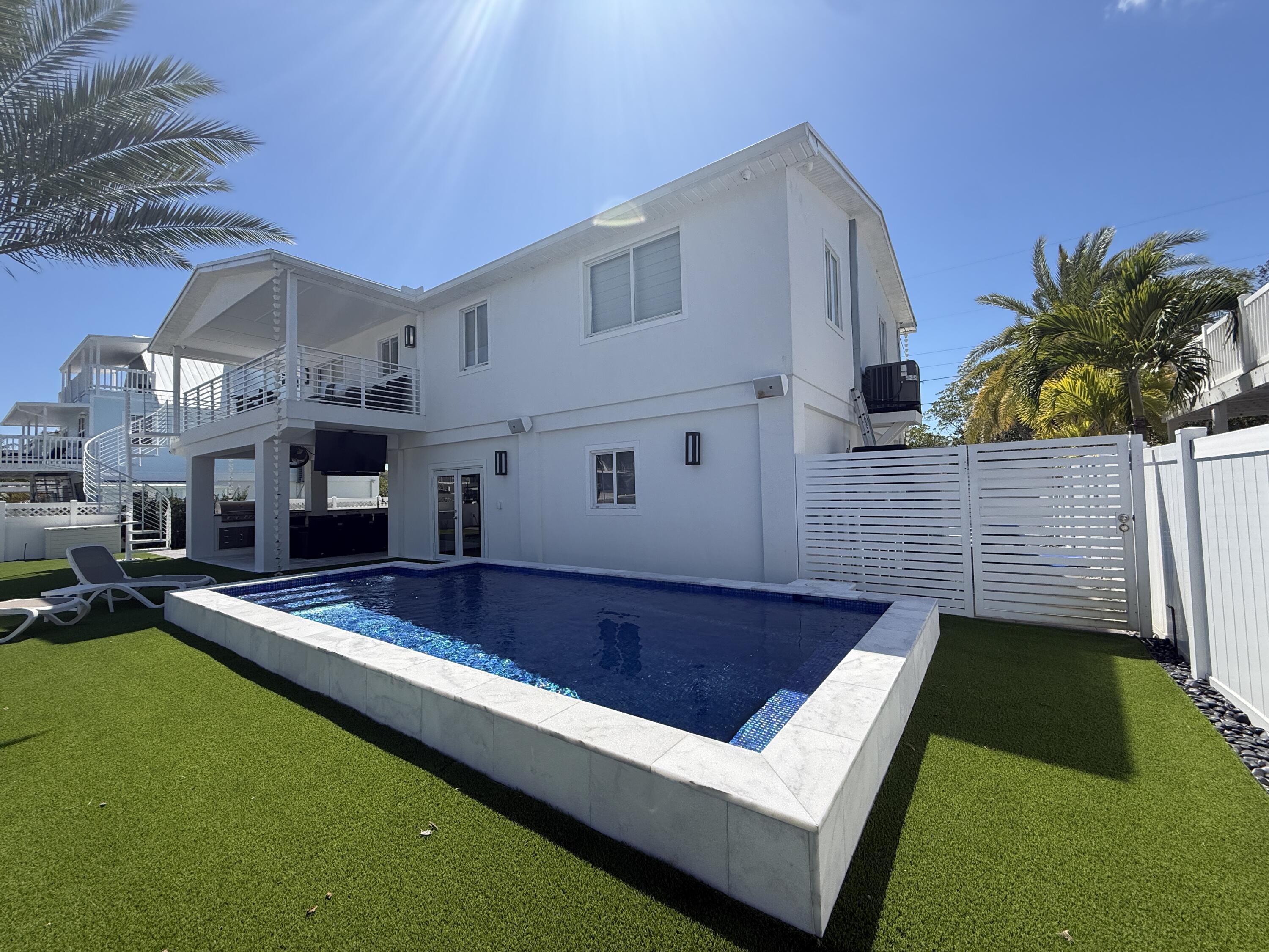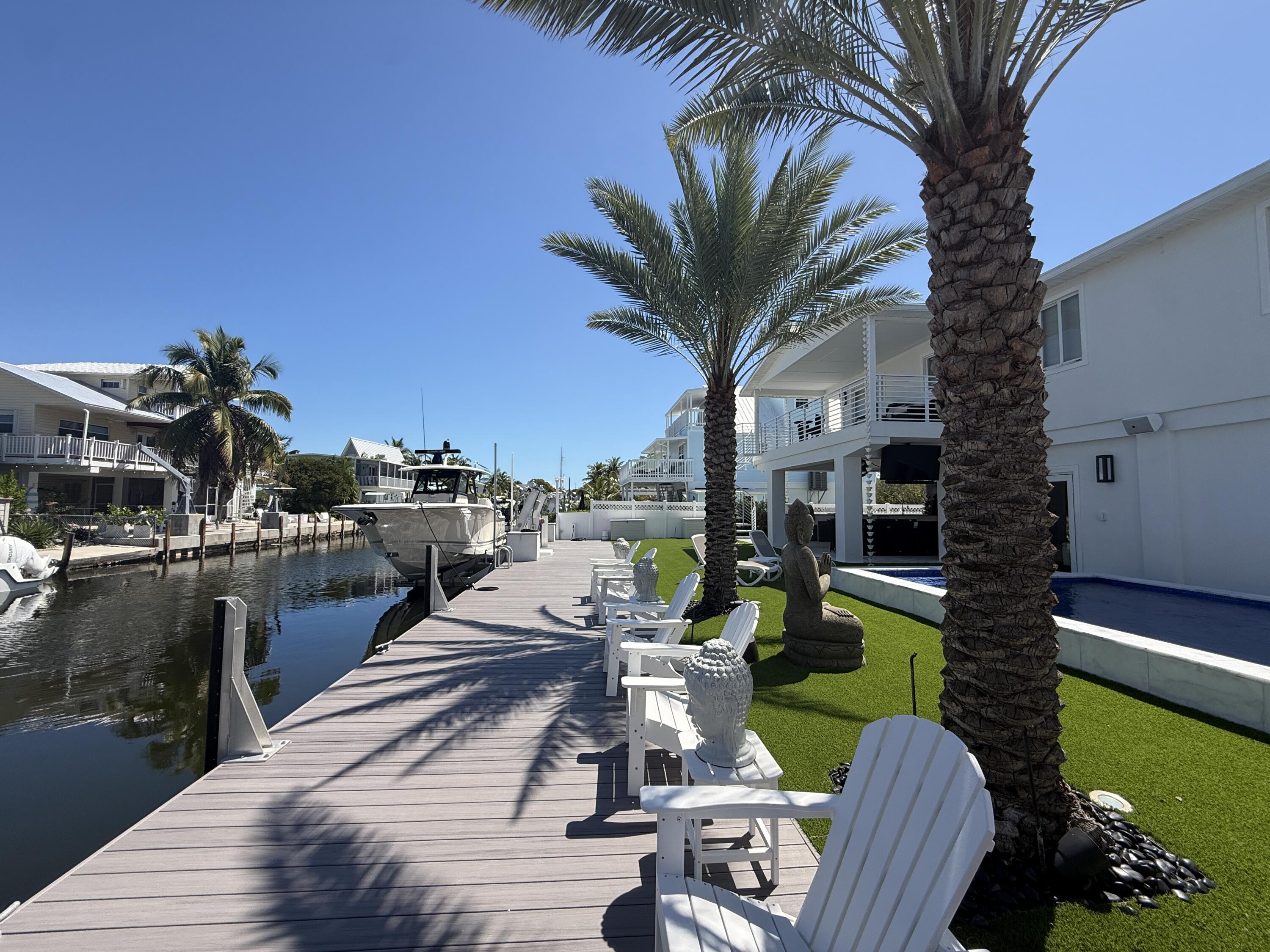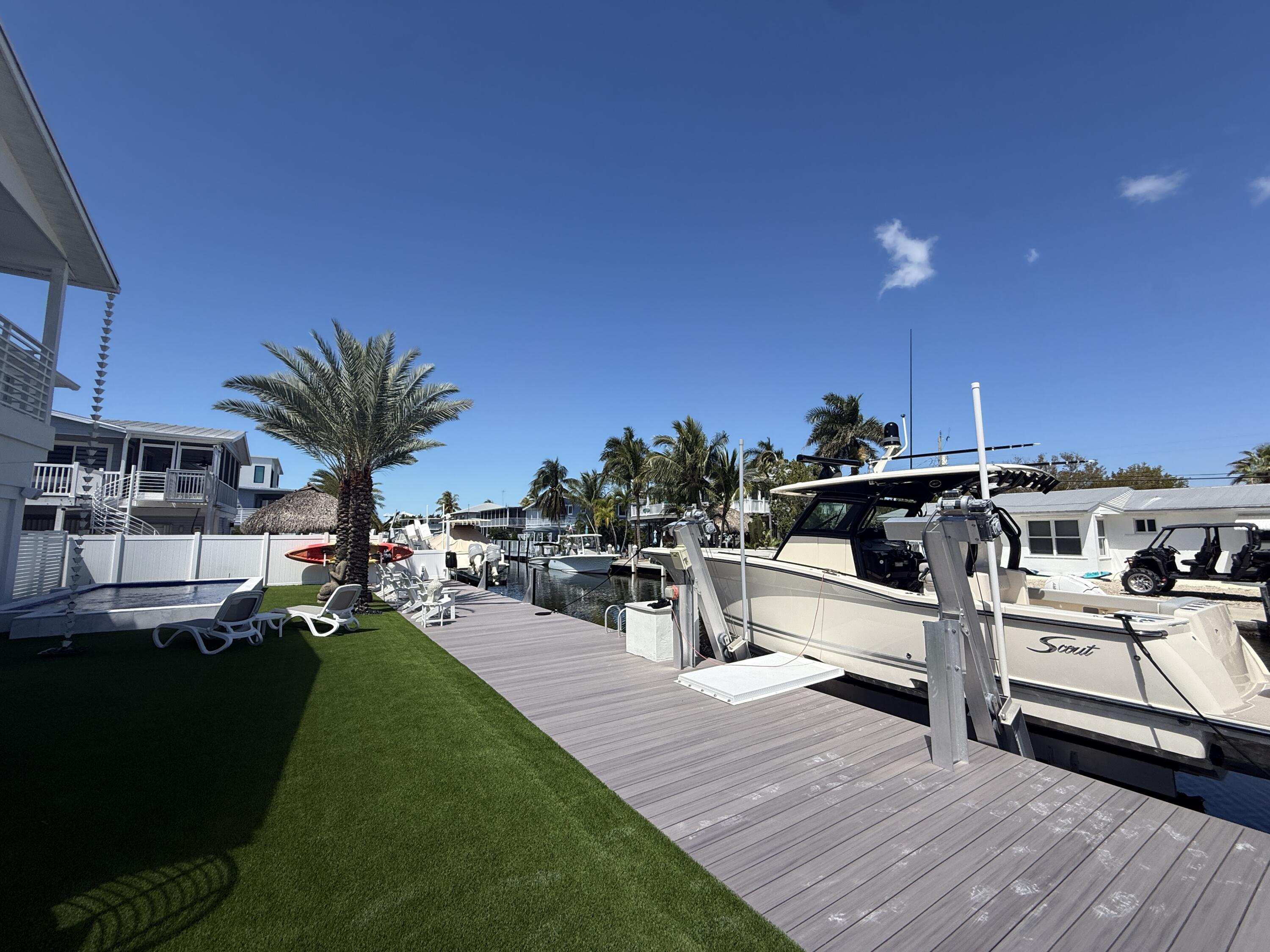 Discover your slice of paradise in Key Largo with this canalfront 3-bedroom, 2-bath home offering comfort, functionality, and the laid-back Florida Keys lifestyle. Ideally situated on a quiet deep-water canal with 75 feet of dockage and just minutes to Florida Bay, this property is perfect for boating enthusiasts seeking quick and easy access to open water. The elevated main living area features an open-concept layout with a spacious kitchen, dining, and living area that flows seamlessly to a private balcony, creating a bright and inviting space to relax or entertain. The home includes a primary suite along with two additional bedrooms and a full guest bathroom, all thoughtfully arranged for everyday living. Outside, enjoy a heated pool and a generously sized yard with low-maintenance landscaping, along with ample parking and a full-length dock. A 15,000 lb boat lift is also in place. Whether you're looking for a full-time residence, a weekend retreat, or an investment opportunity, this well-located waterfront property offers an exceptional opportunity to own in Key Largo. Minutes away from Adams cut, many restaurants and full docks. Call Today!