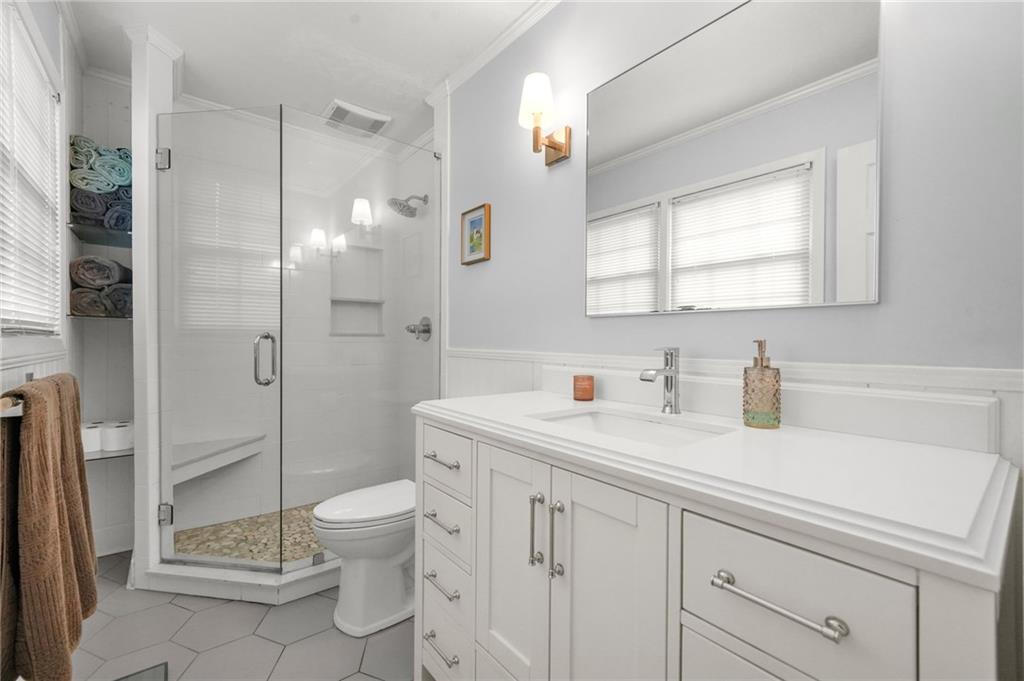 Charming Ranch with Modern Updates in a prime Dunwoody location, nestled on a quiet street within a sought-after community. Experience the perfect blend of suburban comfort and urban accessibility in this meticulously maintained one-story ranch. Situated on a large, functional 0.45-acre level lot, this home offers a sprawling fenced-in backyard designed for privacy and effortless outdoor entertaining. Modernized Living Spaces include a gourmet kitchen updated with sleek stainless steel appliances and a contemporary tile backsplash. Remodeled Main Bath that features a new vanity with a quartz countertop, upgraded fixtures, and a spacious corner shower. Flexible Layout with a separate Den/Family Room for cozy evenings and a dedicated Living Room/Dining Room combination for formal gatherings. Upgraded HVAC system provides year-round efficiency. 2-car attached garage supplemented by an additional parking pad, perfect for guests or extra vehicles. Leave the car behind and avoid mall traffic! This home is located directly across from a pedestrian walkway that connects you straight to the premier shopping and diverse eateries of Perimeter Mall and the surrounding Georgetown area. Ultra-convenient proximity to I-285 ensures you can get anywhere in the metro area ASAP.