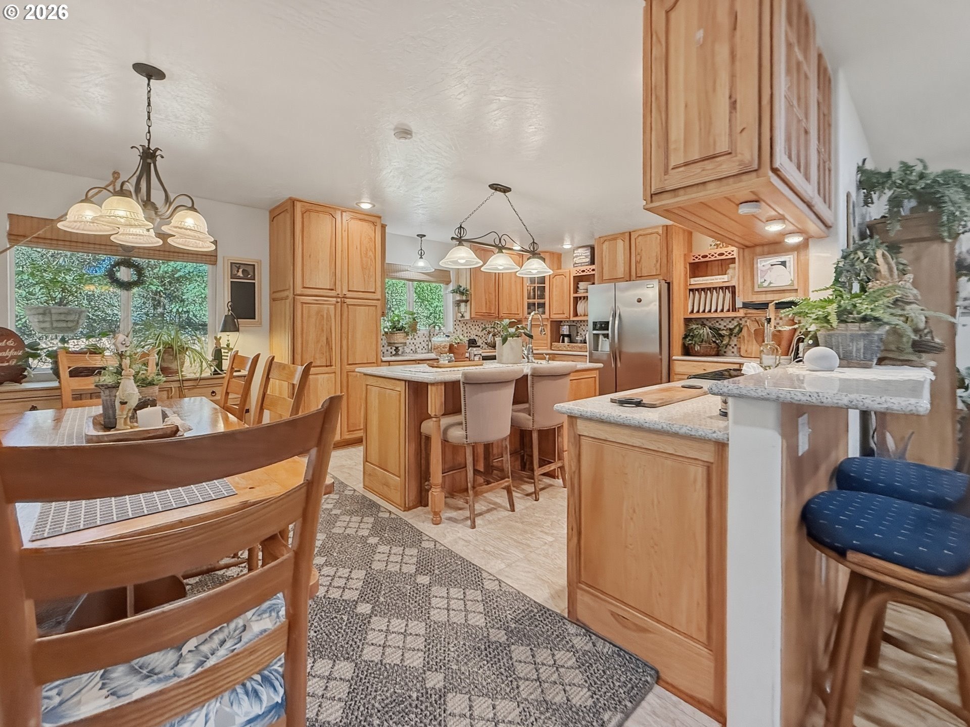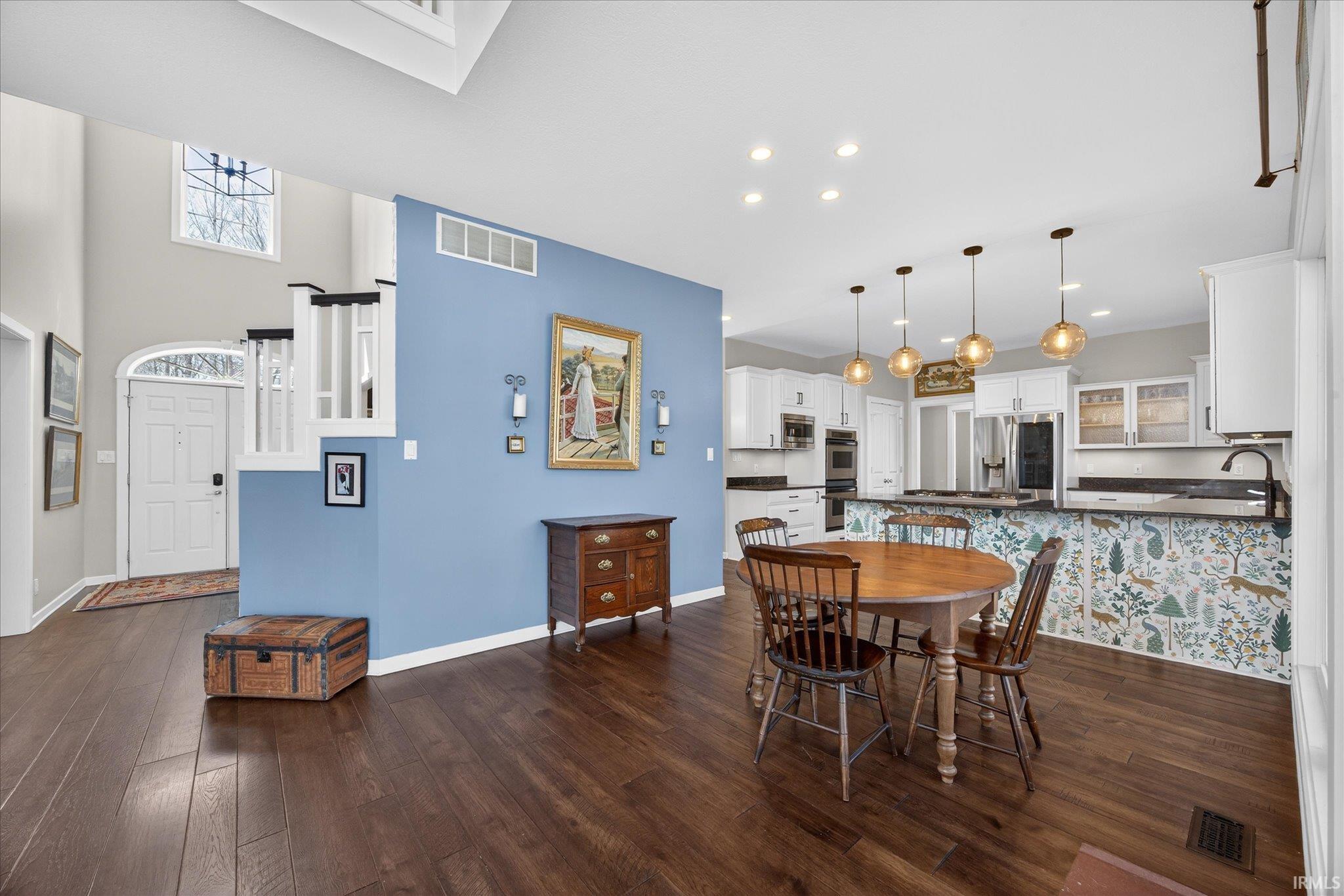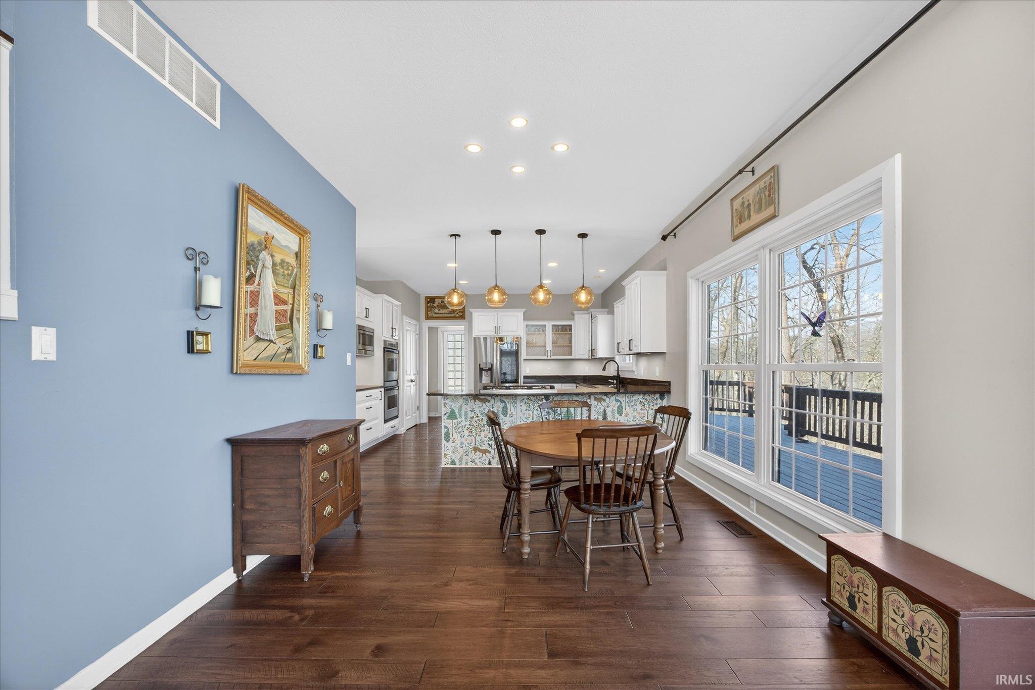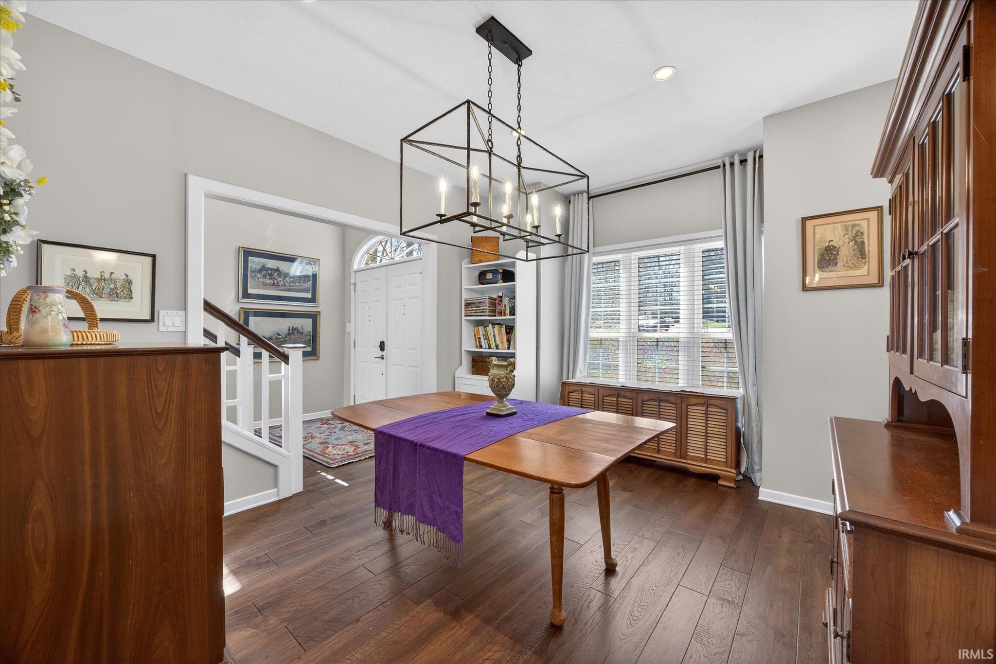 This well-maintained brick two-story home sits on 2.77 acres at the end of a cul-de-sac with scenic views and a functional layout. Enjoy the two covered front porches that overlooks the custom, native landscaping and a fenced in back yard. Inside, a two-story foyer opens to a bright two-story living room with a large bank of windows. The main level offers a comfortable circular flow with an open floorplan. A formal dining room connects to the kitchen, while a cozy sitting room/office is located by the front door. The kitchen features granite countertops, double ovens, new gas cooktop, new dishwasher and new refrigerator, a pantry, and a breakfast bar, with convenient access to the garage, laundry room, and half bath. Hardwood flooring runs throughout the main level. Upstairs are three bedrooms, including a spacious primary suite with a walk-in closet and en suite bath featuring radiant heated floors, a garden tub, and a custom shower. The walk-out basement offers additional living space with updated flooring, a theatre room that can be converted back, and a wet bar‹”perfect for entertaining or flexible use.