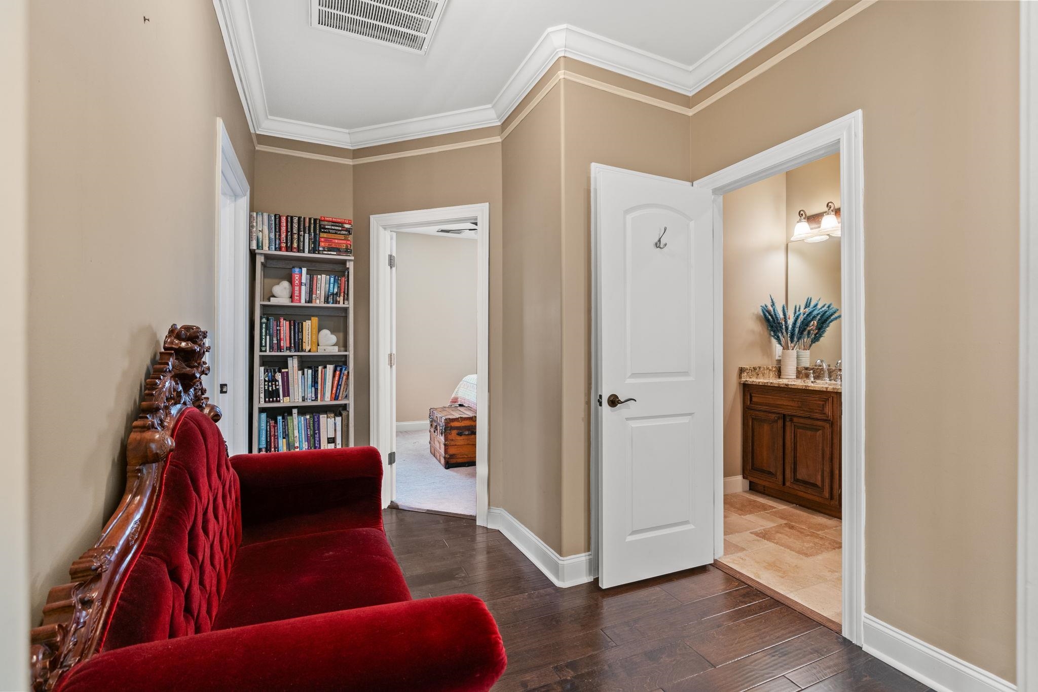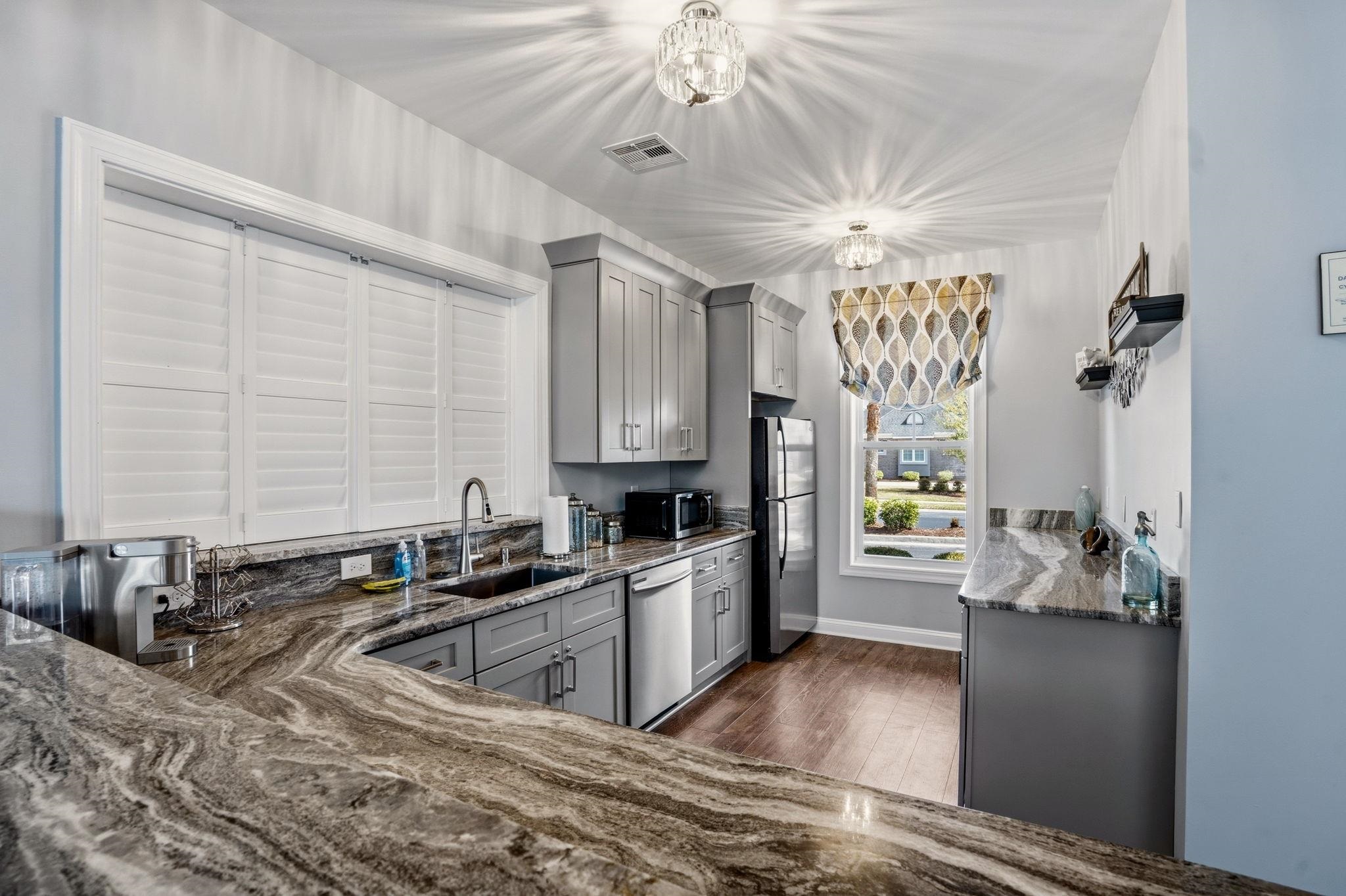 Shhh! This stunning 2-story makes a striking first impression with its brick front, high roofline filled with peaks, and beautifully manicured landscaping. But wait, she's got a secret.