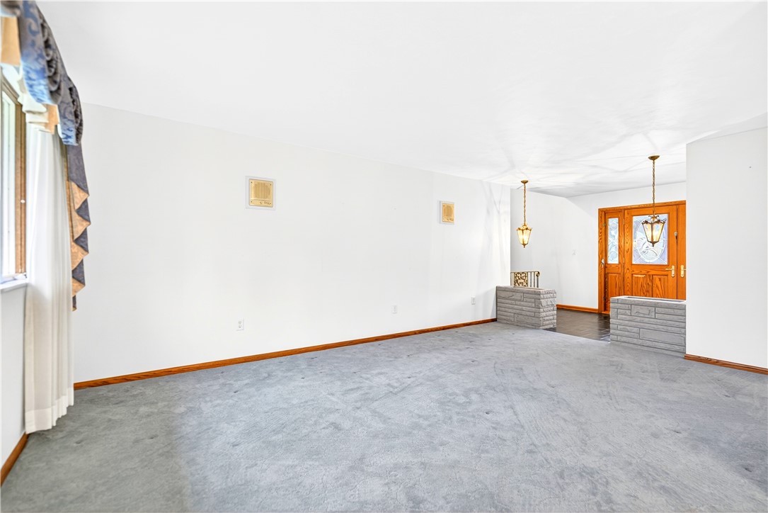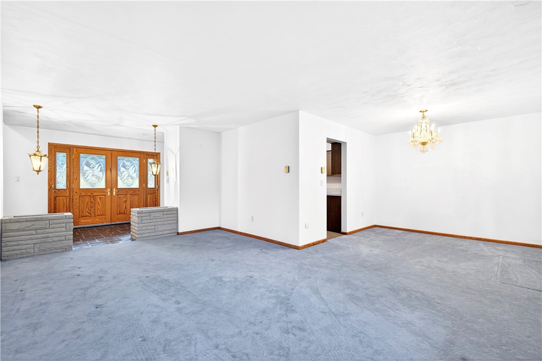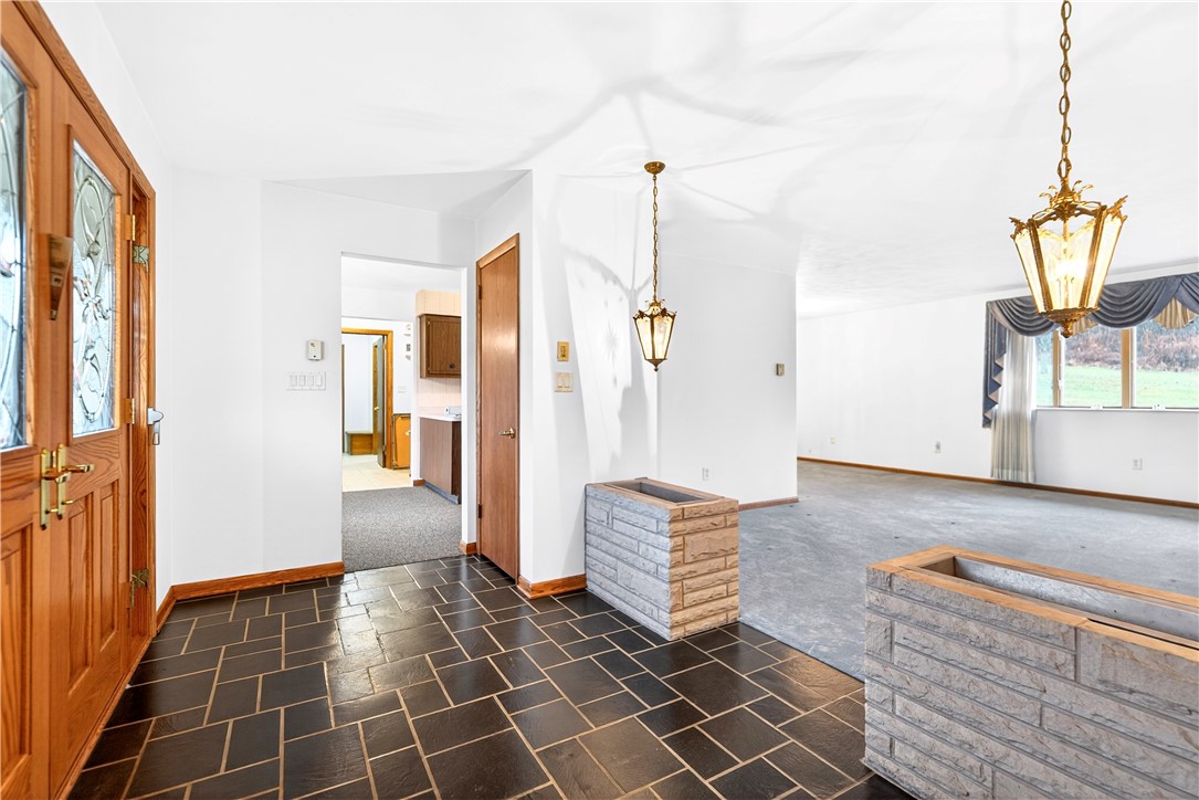 Tucked away on 3.7 picturesque acres in Hobart, this stunning custom-built brick ranch (2008) offers the perfect blend of space and versatility--ideal for entertaining or related living. The main level features an open-concept design with beautiful hardwood floors throughout, seamlessly connecting the living, dining, and kitchen areas.