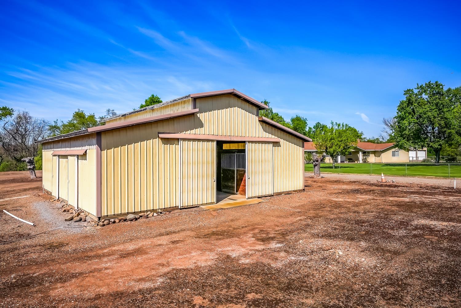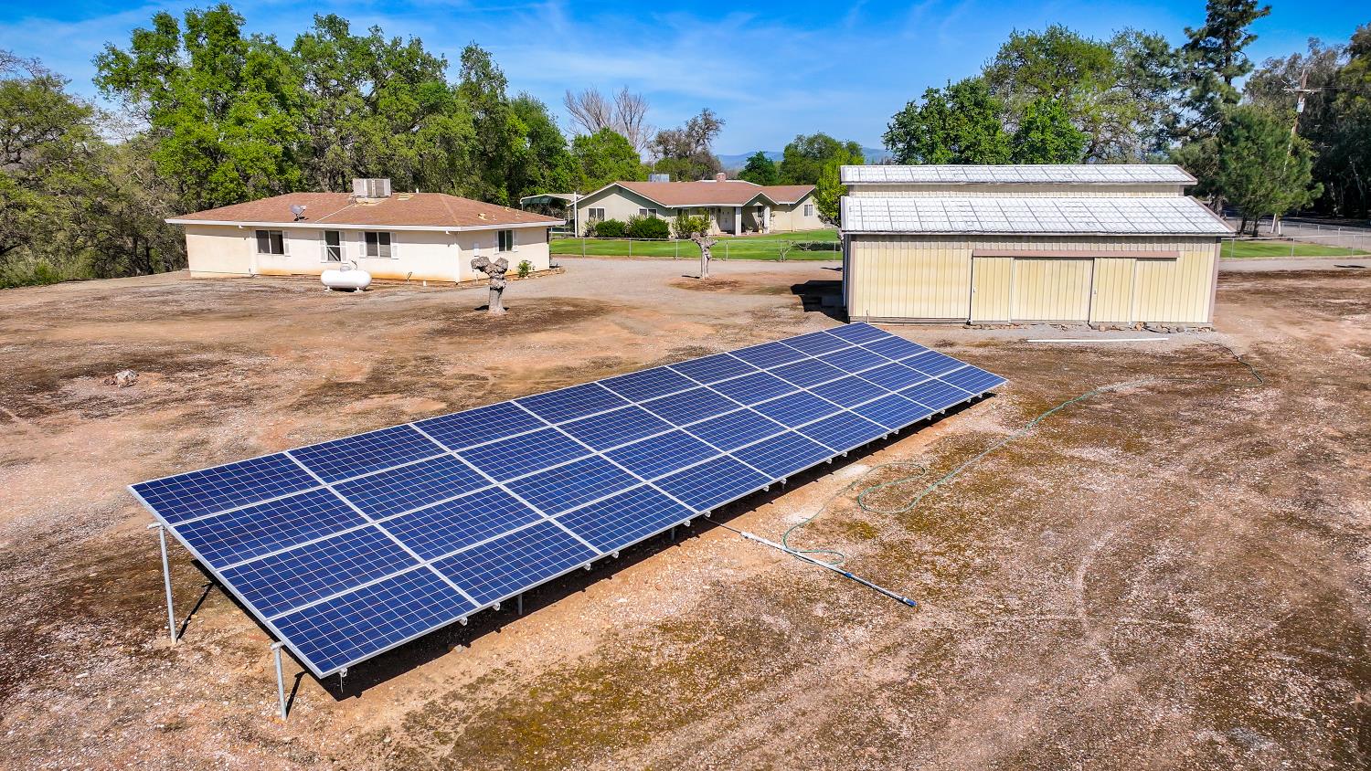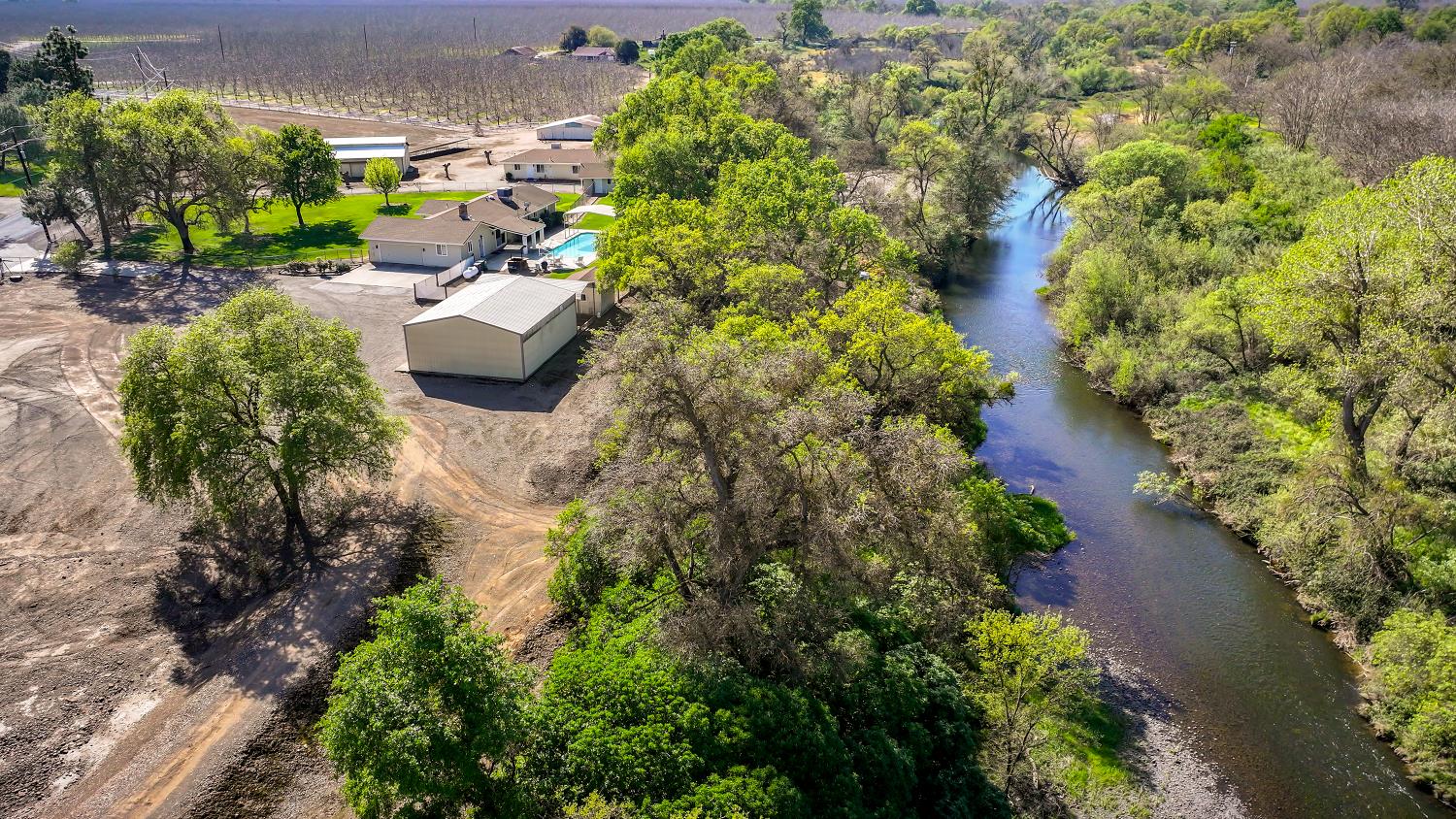 RIVER PROPERTY, 2 Homes, a rare find!!! Exceptional opportunity to own a private multi-residence ranch in the highly desirable Linden area. Set on 4.99 acres, this unique property features two single-story homes, a 3-bed, 2-bath main residence and a 2-bed, 1-bath secondary home, ideal for multi-generational living, rental income, or guests. Nestled among beautiful trees & surrounded by mature orchards and vineyards, the property offers an impressive 1,144 feet of treed waterfront with a private beach inside the electric-gated entry, providing a rare combination of privacy, natural beauty, and recreation. Equestrian-ready with a four-stall horse barn & tack room, cross-fencing, and plenty of space for horses, livestock, RVs, and toys. Additional improvements include a large shop with three 10-foot roll-up doors, a charming vintage barn, and a detached game room for flexible use. The main home features a spacious family room overlooking the pool and scenic grounds, gas fireplace, automatic sprinklers, and a two-car garage with a third bay converted to a private office. Owned solar adds efficiency and value. If you prefer horseback riding, ATV adventures, fishing, swimming or hiking on this scenic property, youll find it all within the ranchs fenced boundaries. Set in the heart of the highly desirable Linden area, there is plenty to explore on and off the Ranch. This property offers the perfect blend of comfort, convenience & outstanding amenities. With its versatile layout and stunning setting, this property also offers excellent potential as an event venue, wedding destination, or private retreat. Conveniently located just minutes from Lodi, Stockton, and Modesto, with easy access to the San Francisco Bay Area, this one-of-a-kind ranch blends privacy, functionality, and accessibility.