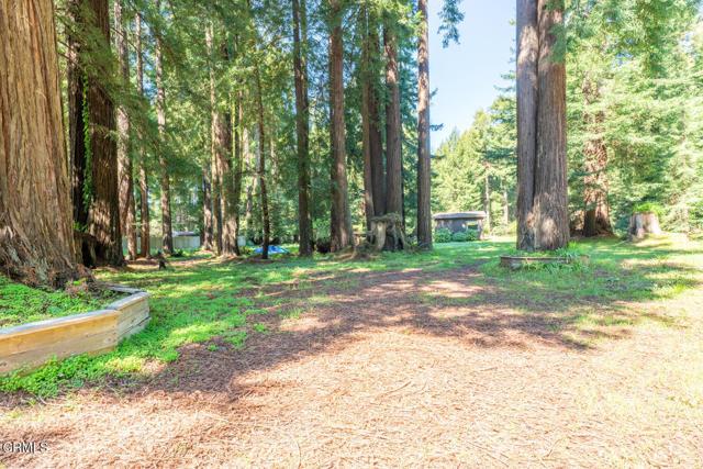 Redwood hideaway near town.. Parklike setting. 1947 classic home with upgrades and a guest unit. Huge green house, basketball court or patio, outbuildings. Same owner for years first time on the market. Main home is two bedroom one bath.