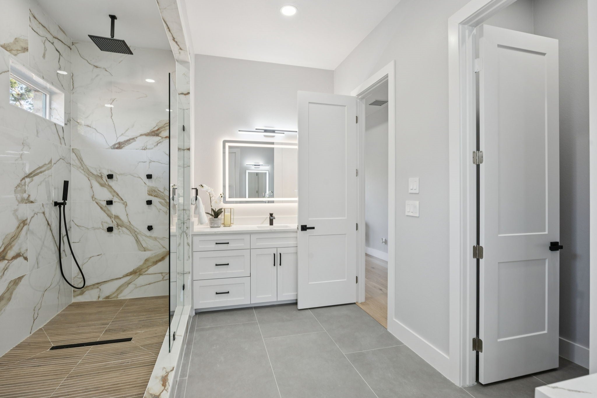 Gracefully set amidst serene, picturesque surroundings, this remarkable custom residence offers over 3,700 square feet of exquisitely designed living space within the prestigious Stevenson High School district. A home where sophistication meets comfort, every detail has been thoughtfully curated to deliver an elevated living experience. From the moment you enter, you are welcomed by a light-filled, open-concept design defined by refined finishes, soaring ceilings, and a seamless sense of flow. At the heart of the home, the family room captivates with its dramatic ceiling height and striking fireplace, creating a stunning focal point that is both grand and inviting-perfect for intimate evenings or elegant entertaining. The main level presents a beautifully appointed private suite or executive office, complete with a full bath-ideal for guests, extended family, or a refined work-from-home retreat. The luxurious primary suite serves as a true sanctuary, featuring private access to its own patio-a perfect escape for quiet mornings or evening relaxation. The spa-inspired en-suite bath is thoughtfully designed with a dual vanity, whirlpool jetted tub, and a separate standing shower, offering both comfort and indulgence. The fully finished English basement provides a private living experience of its own, complete with an additional bedroom, a full bath, and an expansive recreation area featuring a wet bar-ideal for entertaining, hosting extended stays, or multi-generational living with ease. Outdoors, tranquility takes center stage. Step onto your private deck and enjoy peaceful mornings with coffee in hand, surrounded by mature trees and the soothing presence of a gently flowing creek just beyond-creating a rare and calming natural backdrop. With its generous proportions, architectural elegance, and serene setting, this residence offers a truly elevated lifestyle-where luxury, comfort, and nature exist in perfect harmony.